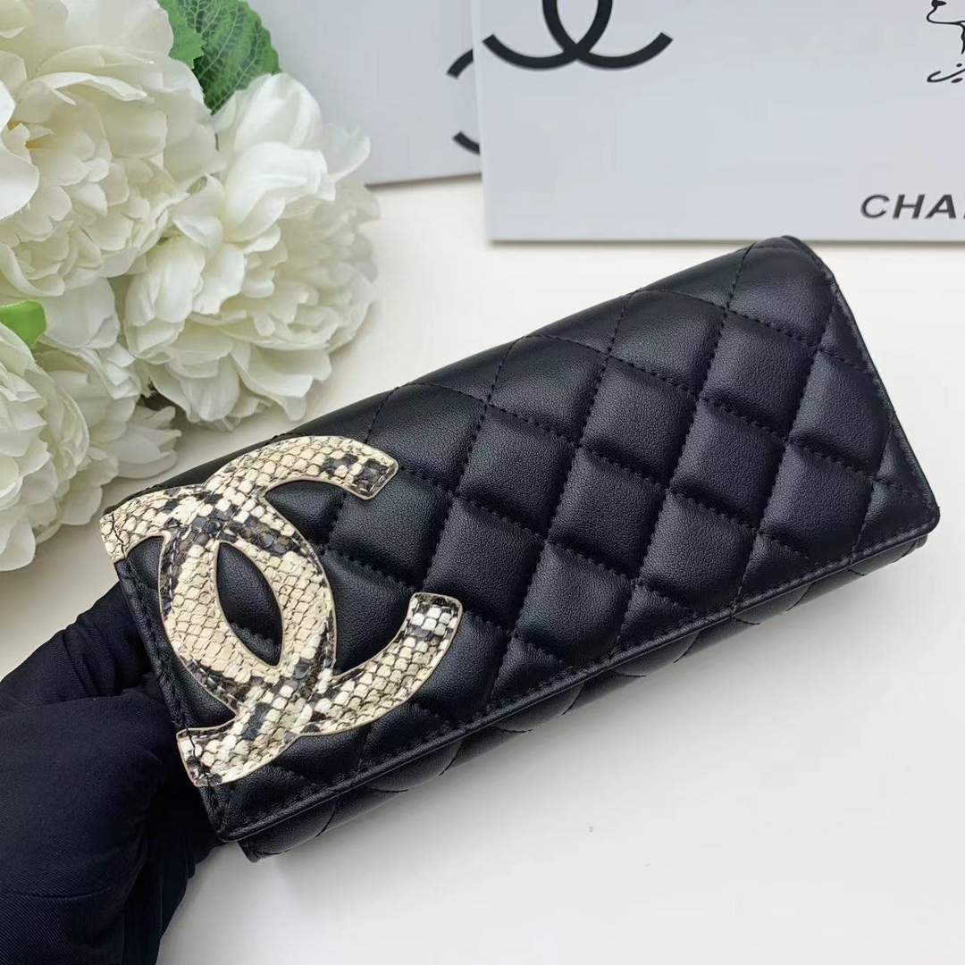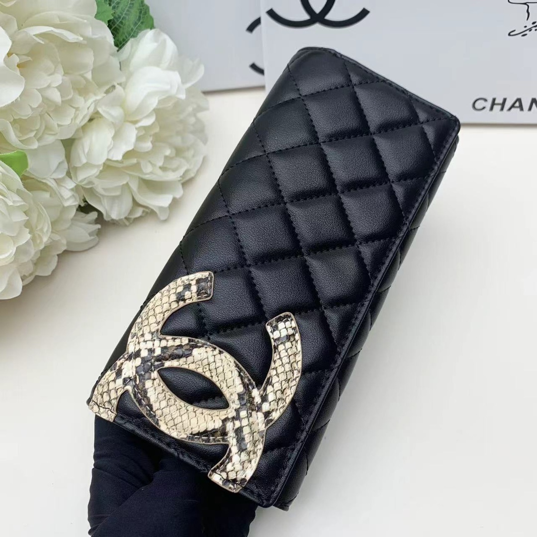 上質なキャビアスキンに、輝くココマーク金具が美しいシャネルの長財布です