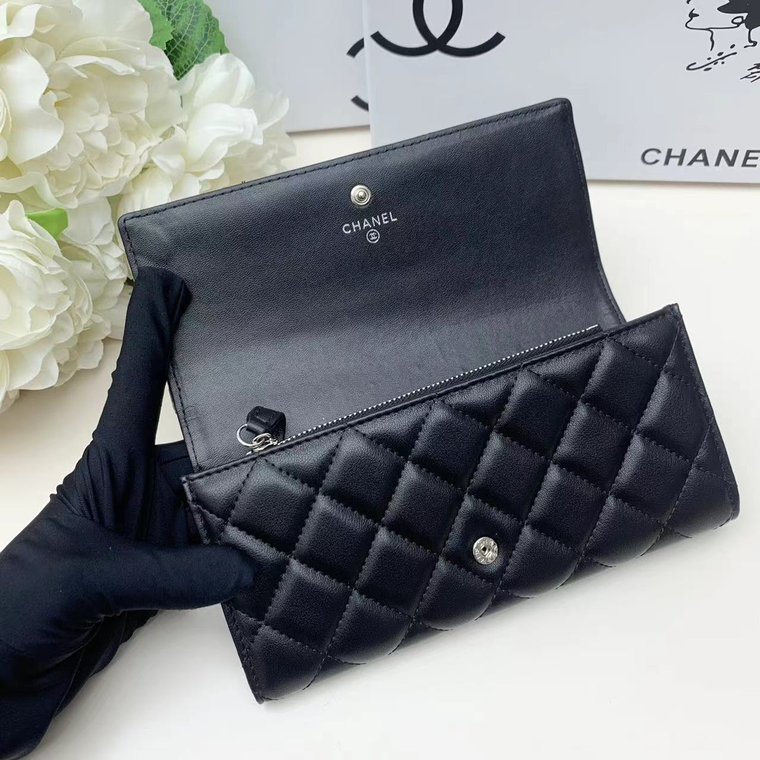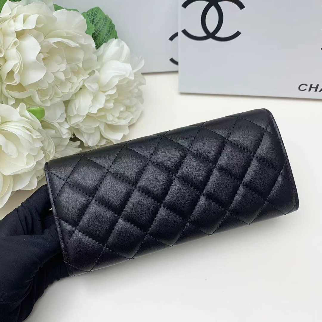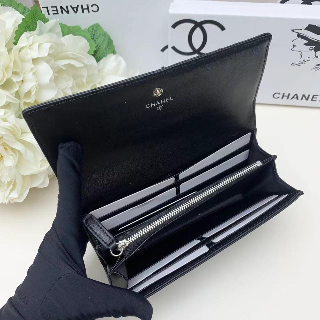 【シャネル】キャビアスキン 長財布 ココマーク金具 上品なブラック レディースウォレット