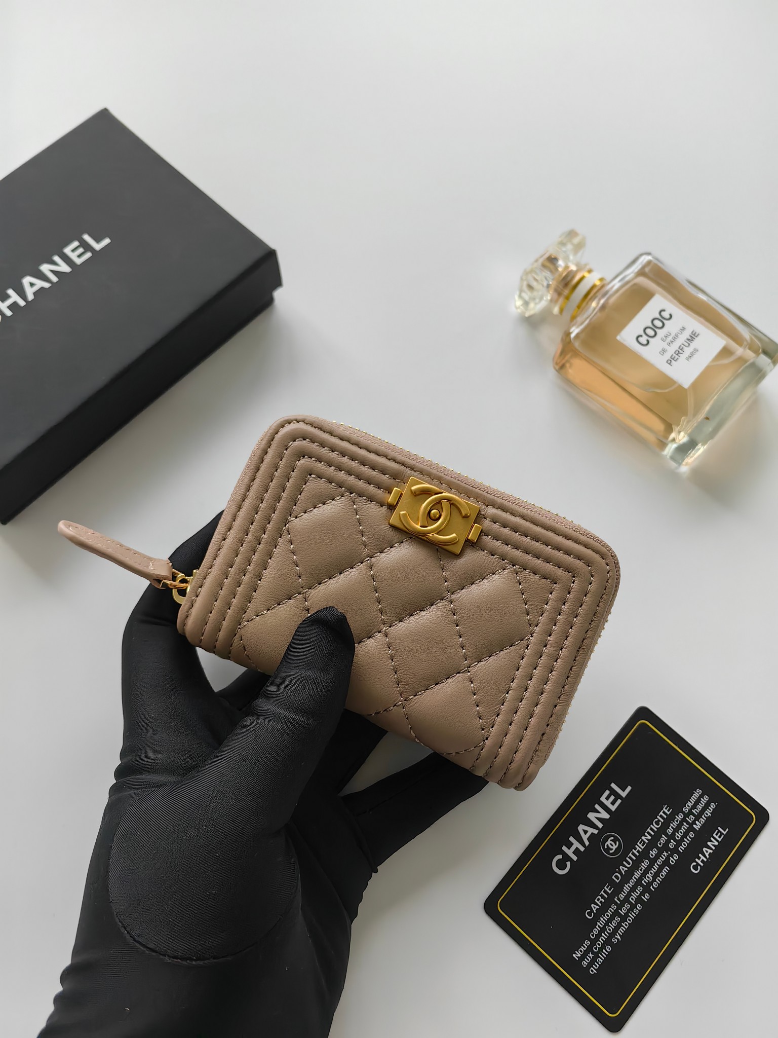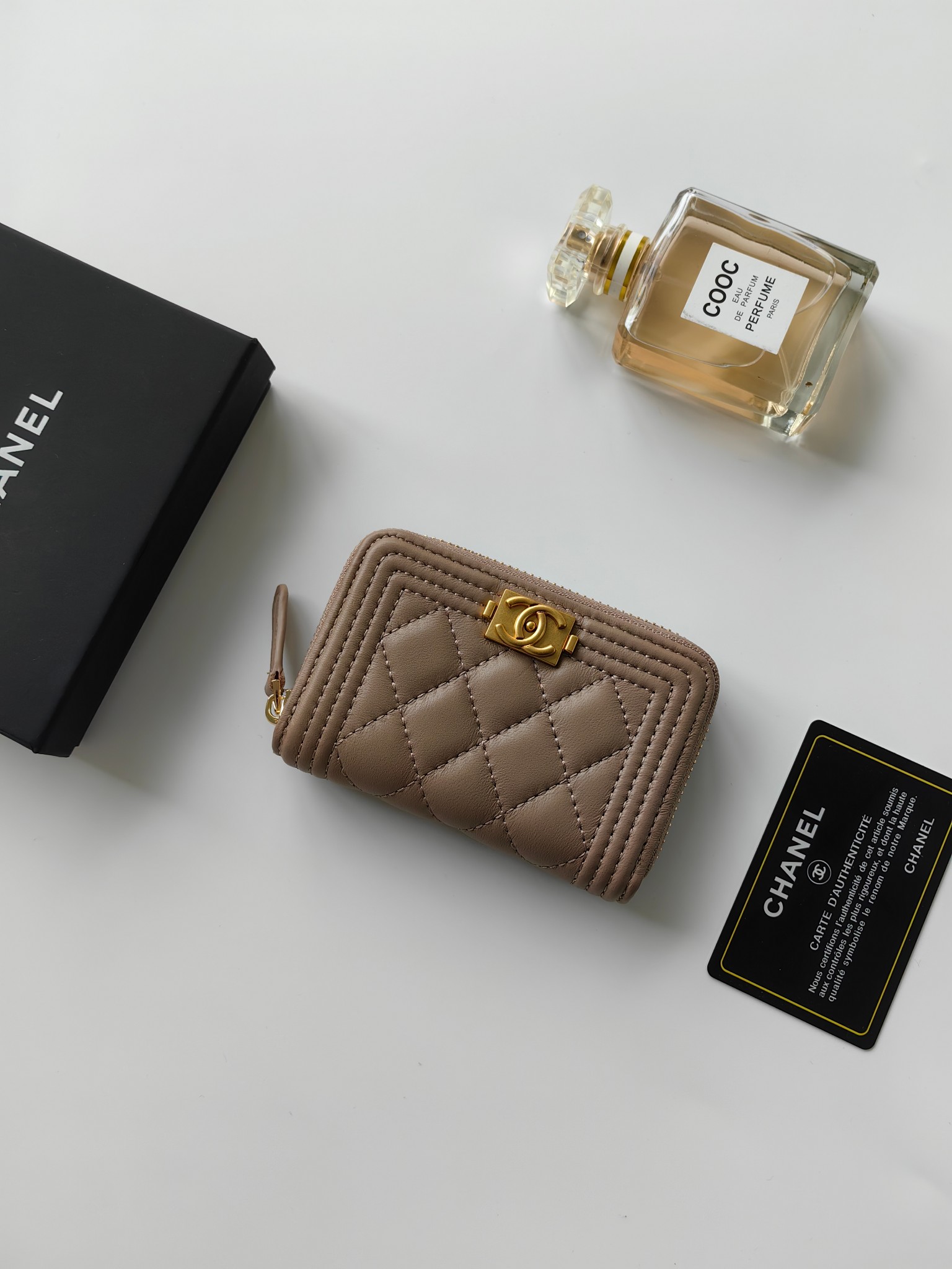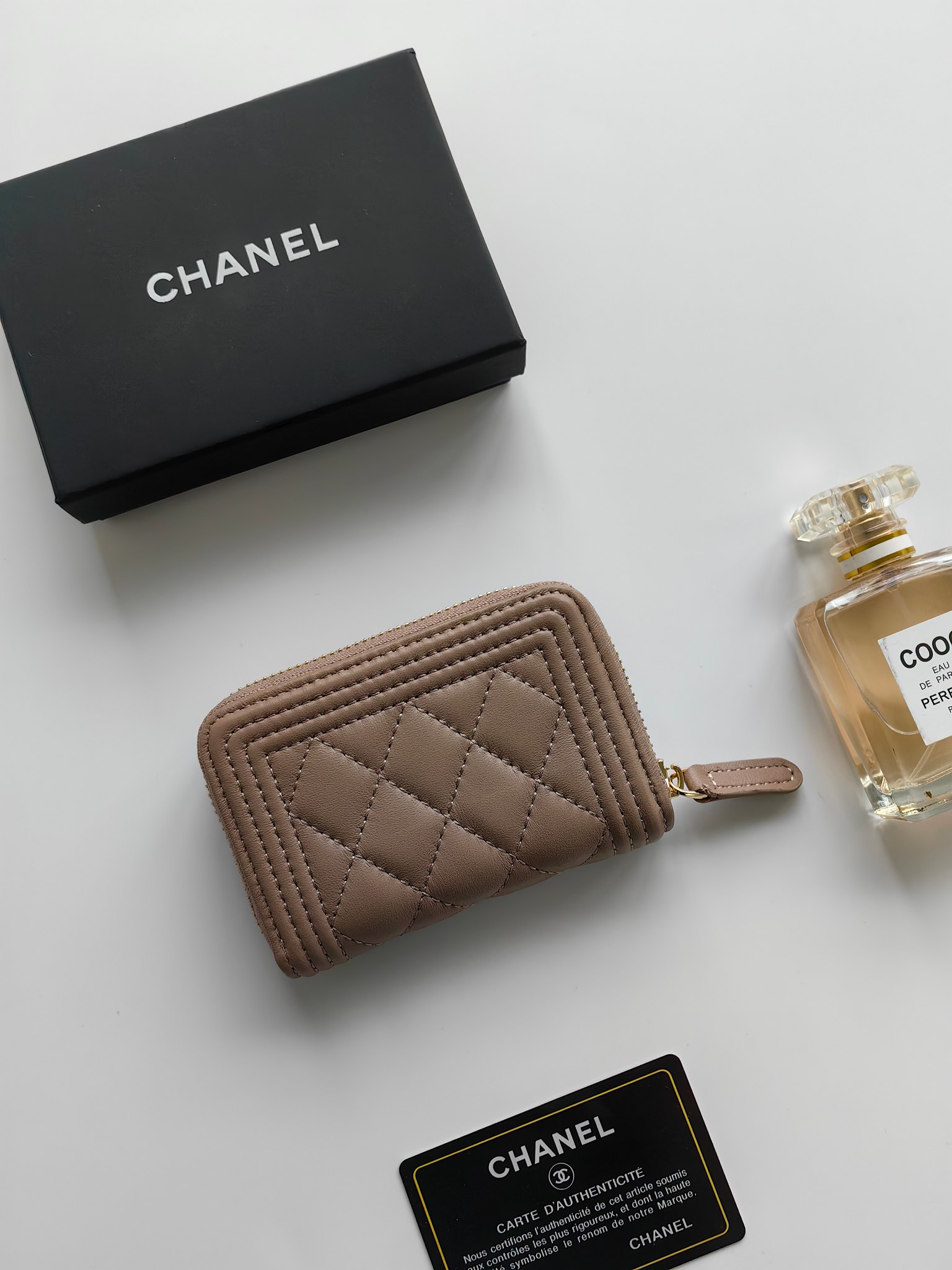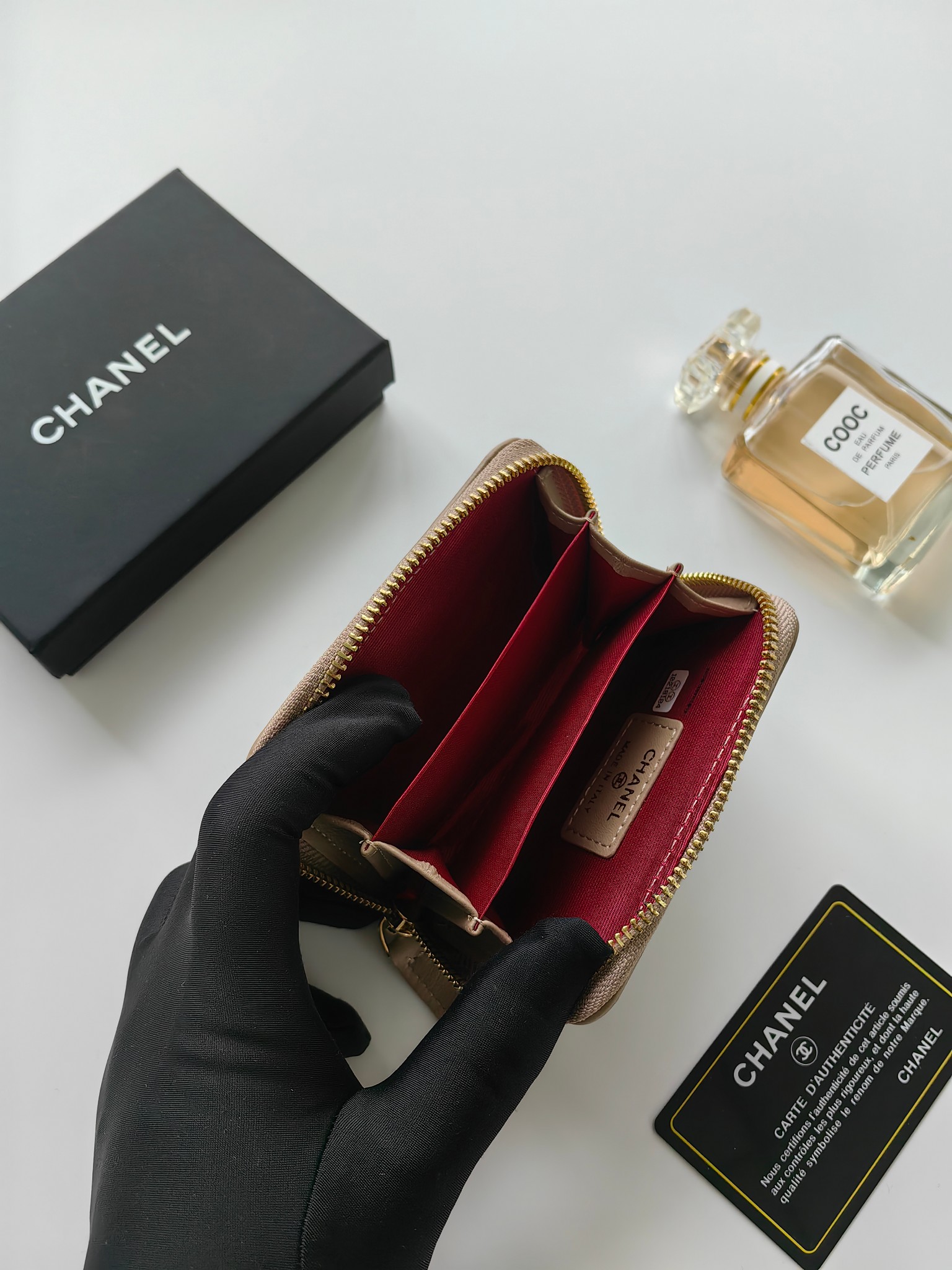 上質なキャビアスキンに輝くココマーク金具が美しい、シャネルのロングウォレットです