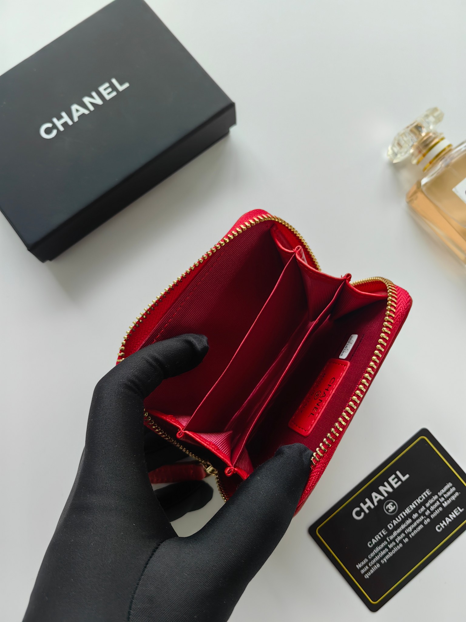 シャネルを象徴するココマーク金具が上品に輝く、キャビアスキンの長財布です