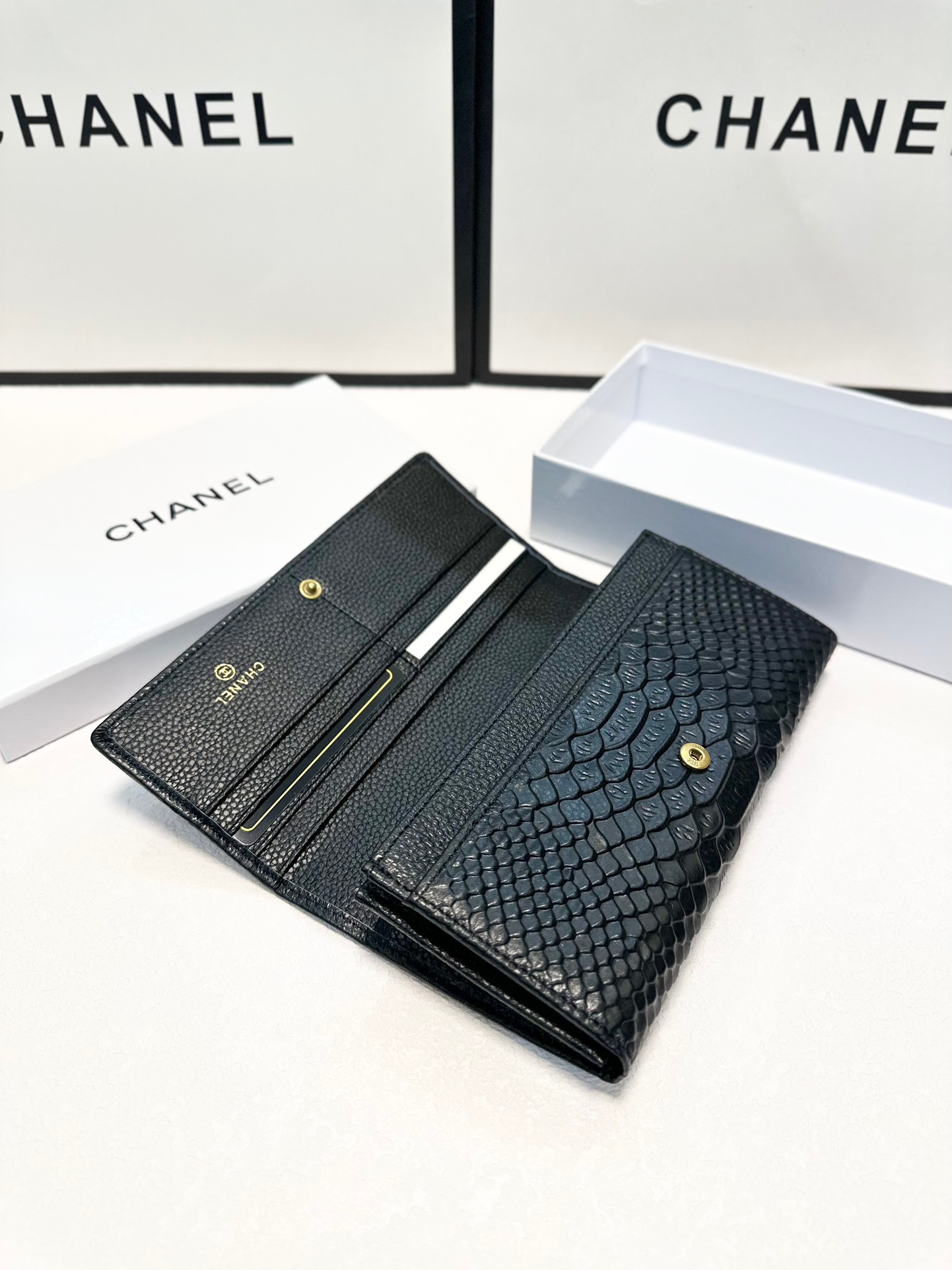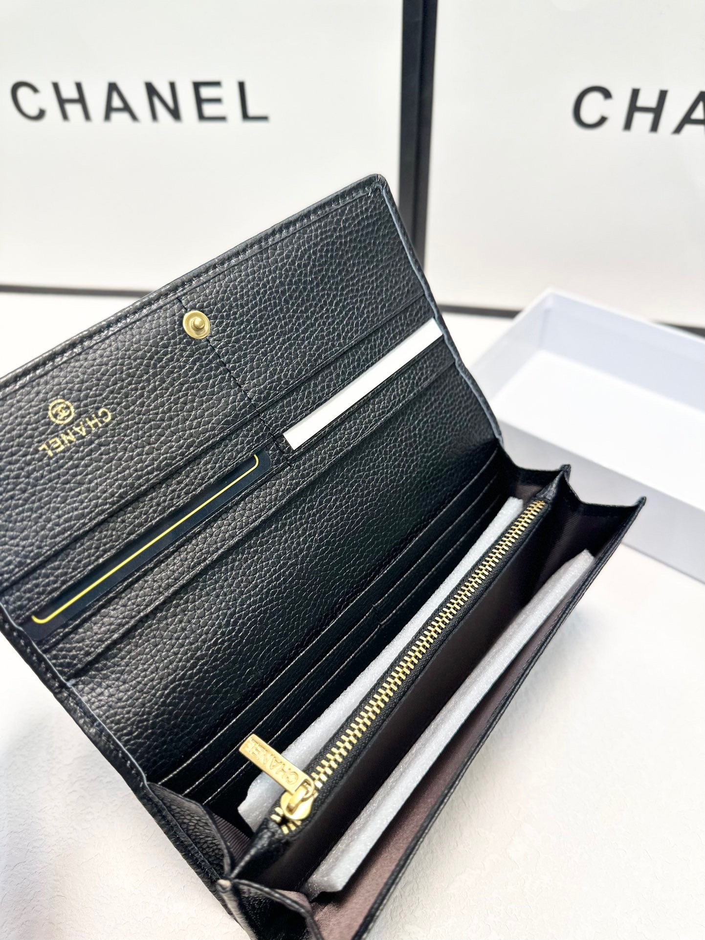 上質なキャビアスキンに、輝くココマーク金具が印象的なシャネルの長財布です
