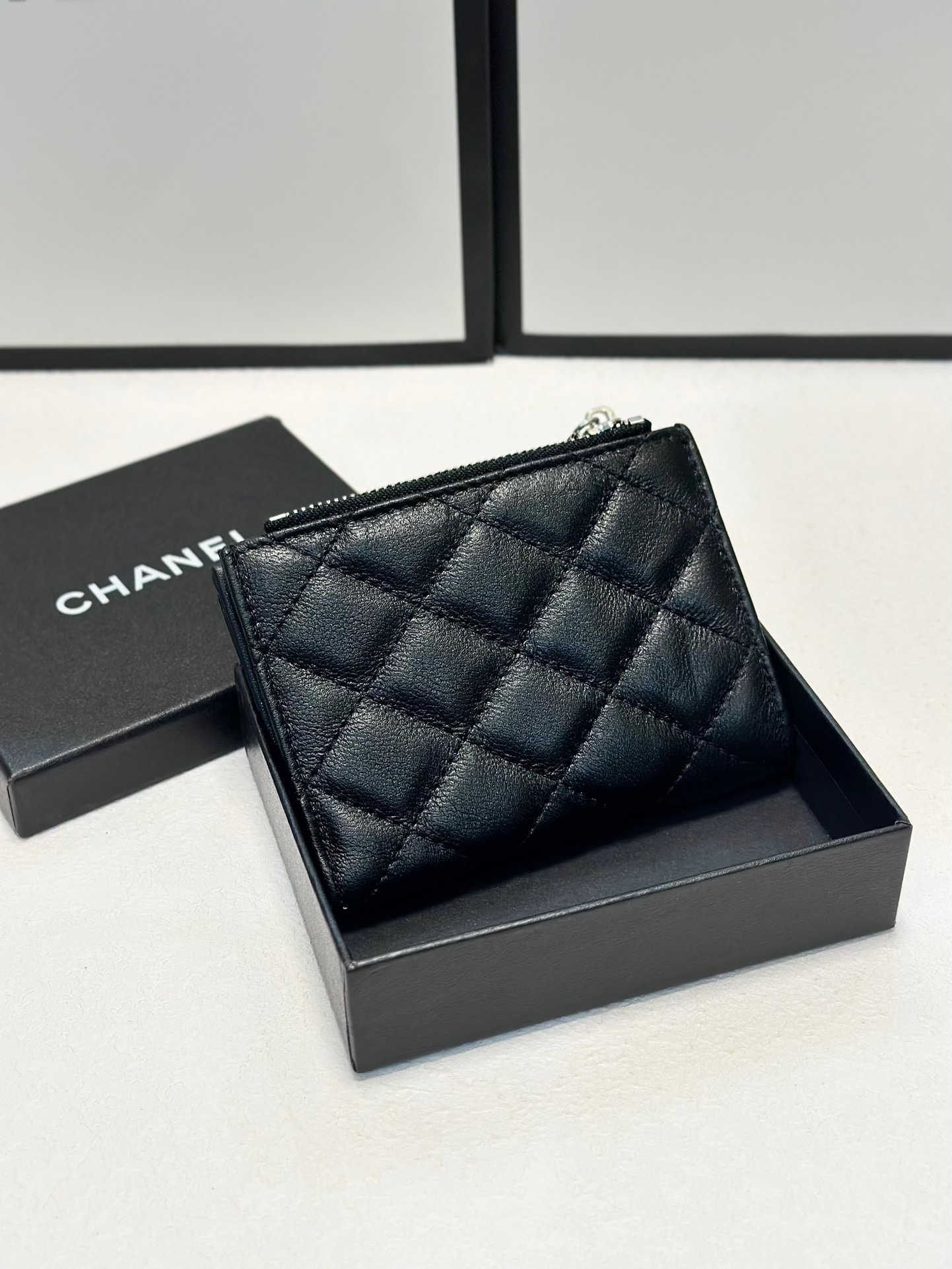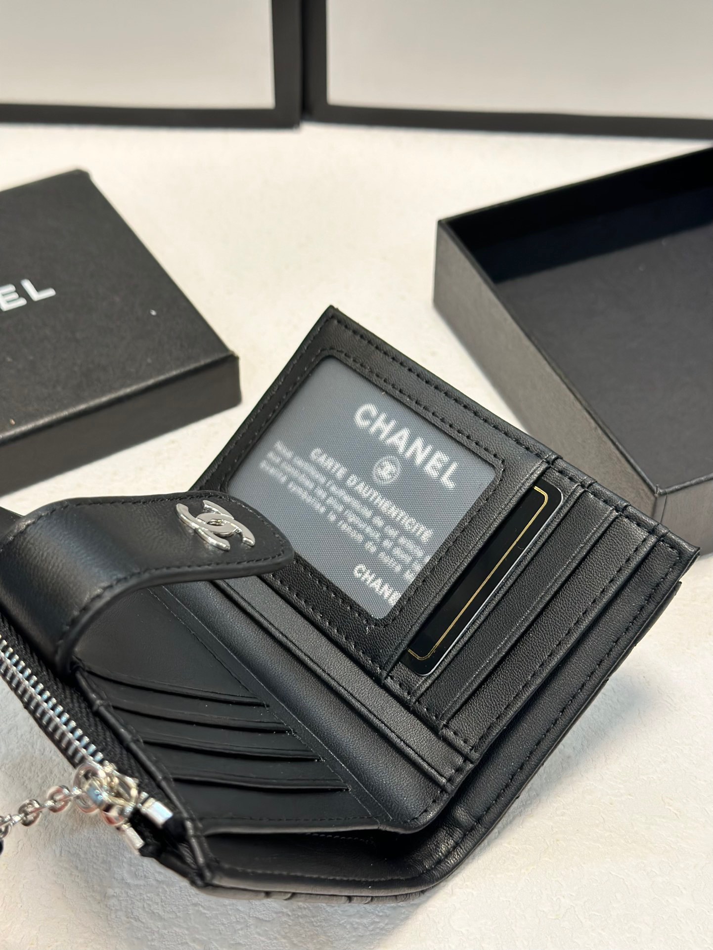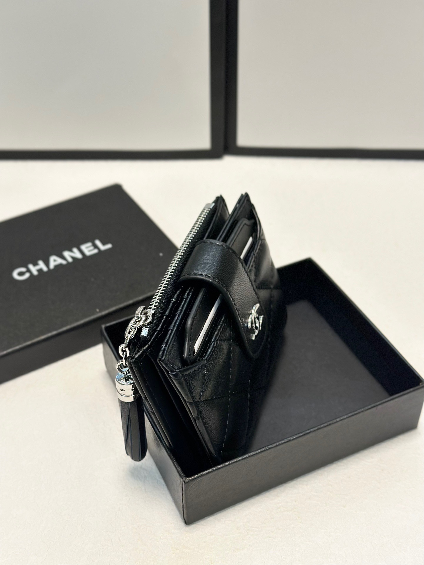 上質なキャビアスキンに輝くココマーク金具が美しい、シャネルのロングウォレットです