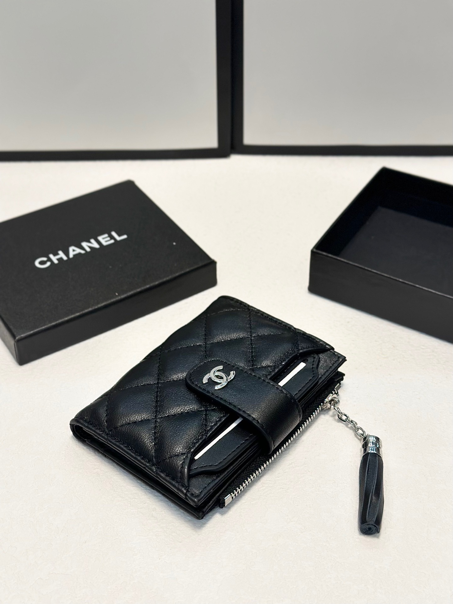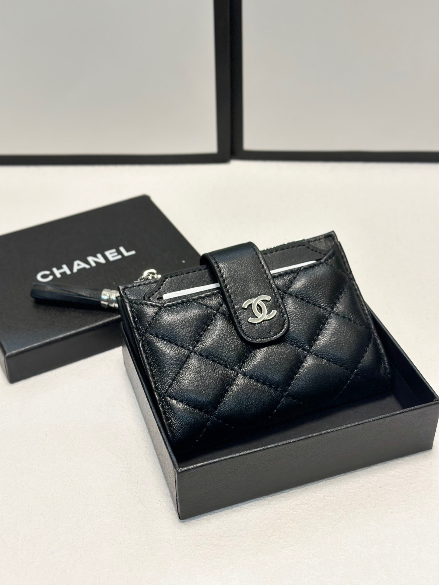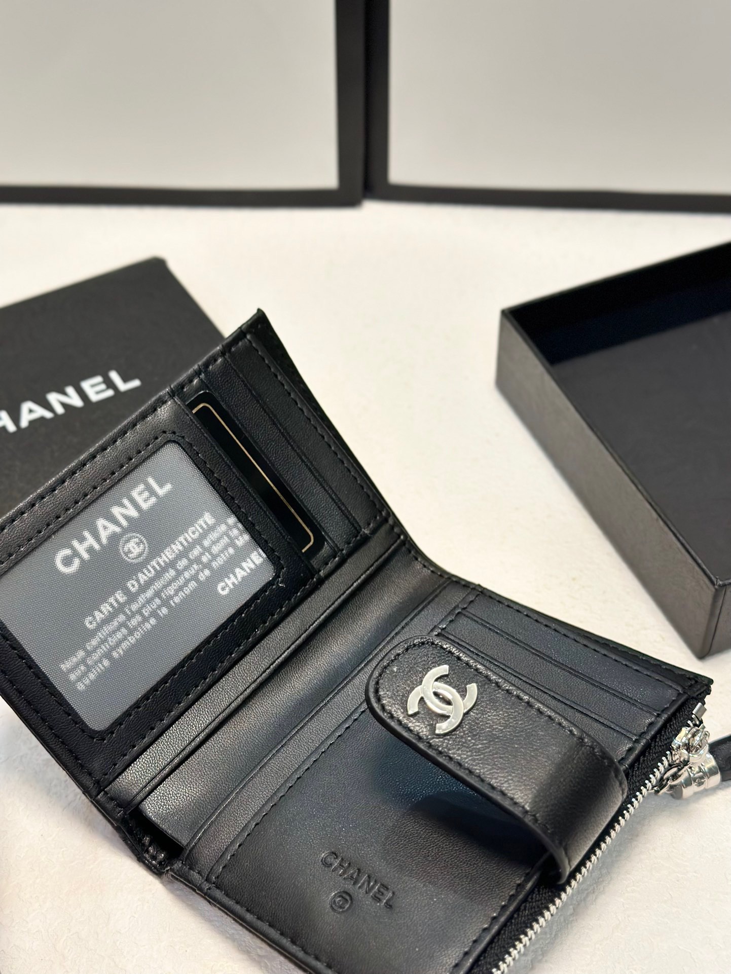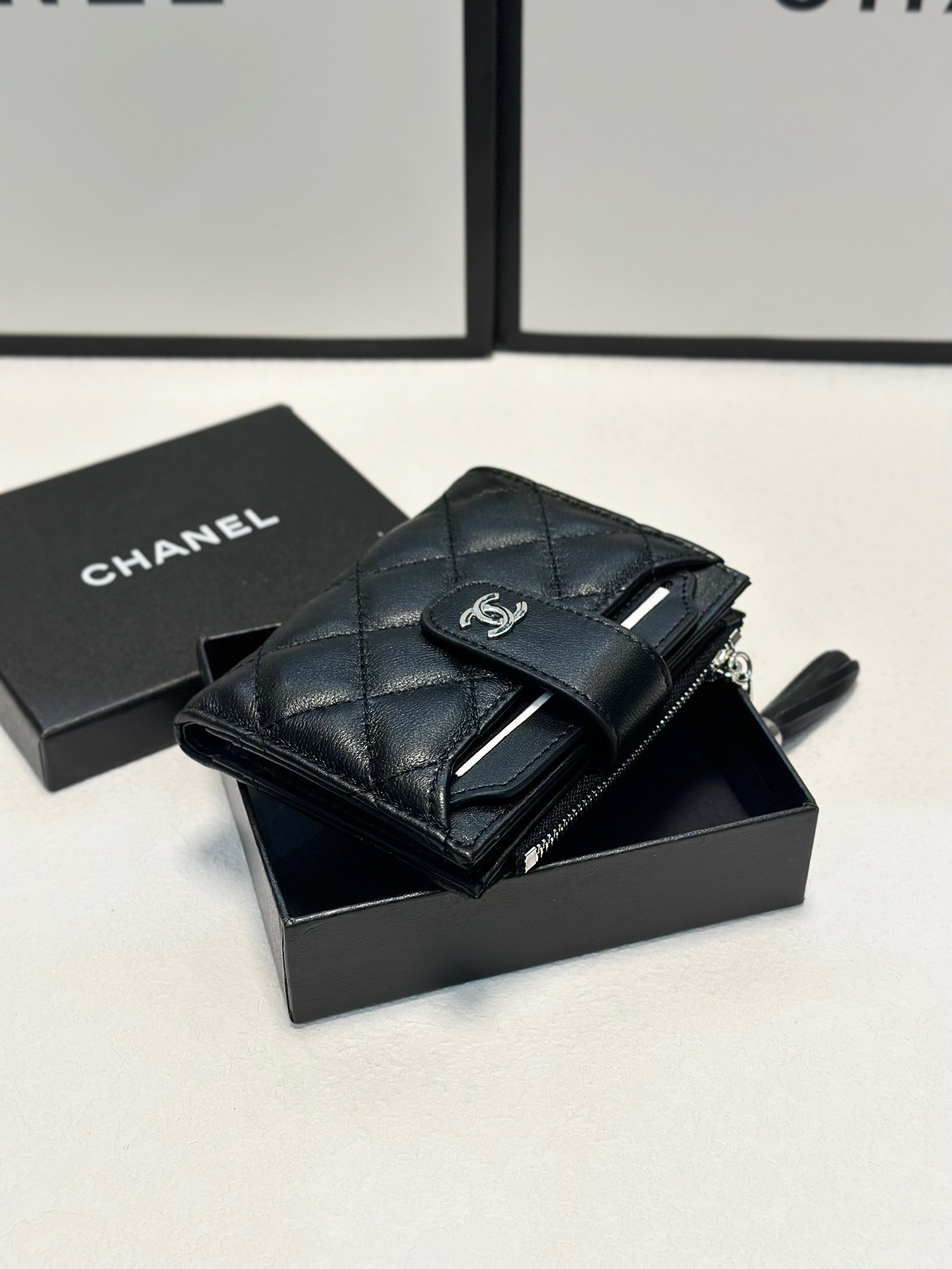 上質なキャビアスキンに輝くココマーク金具が美しい、シャネルのロングウォレットです