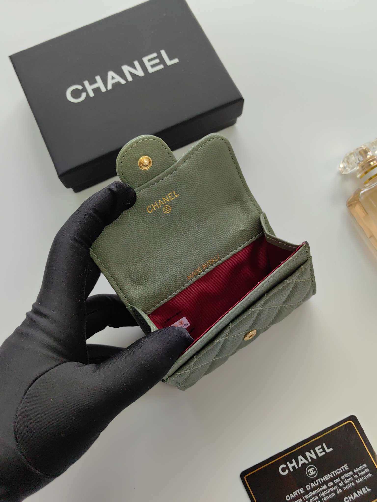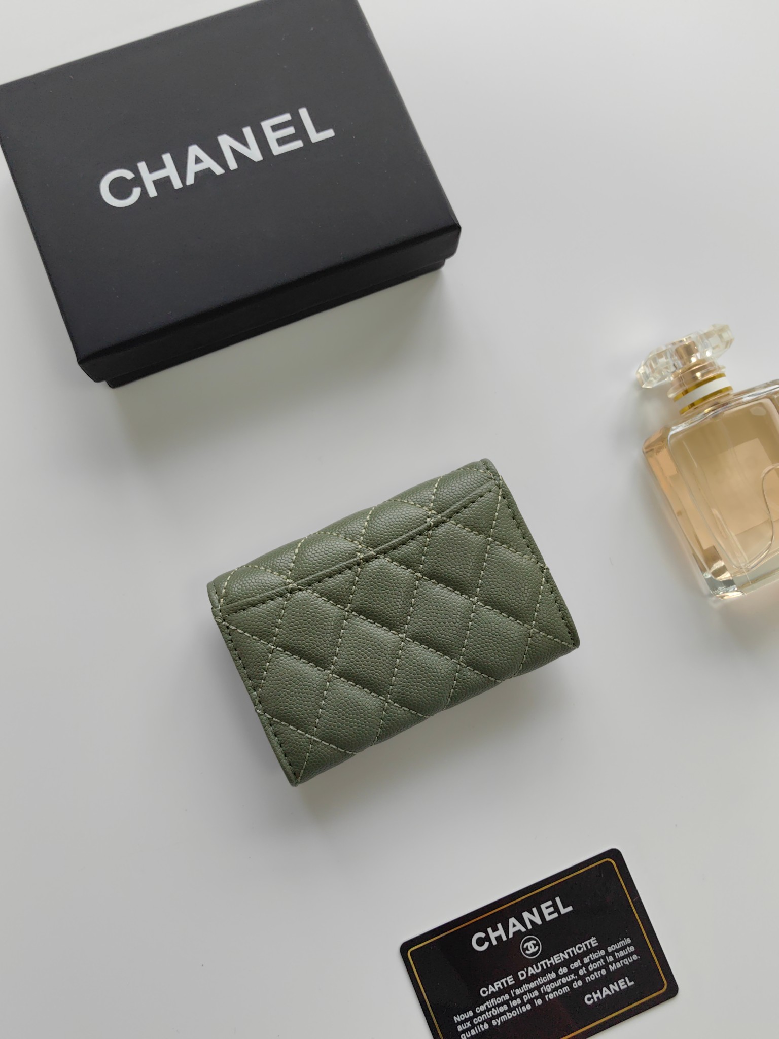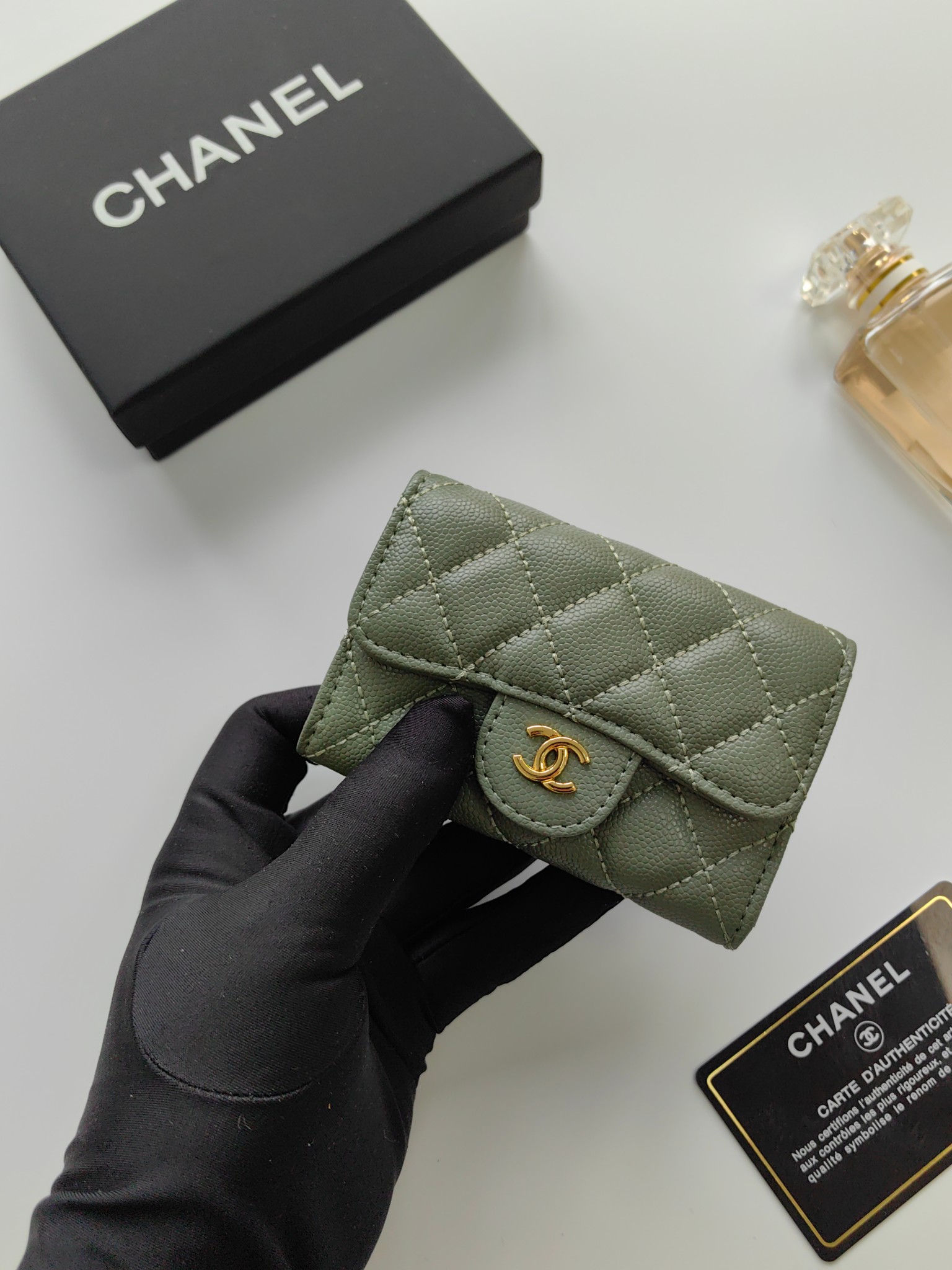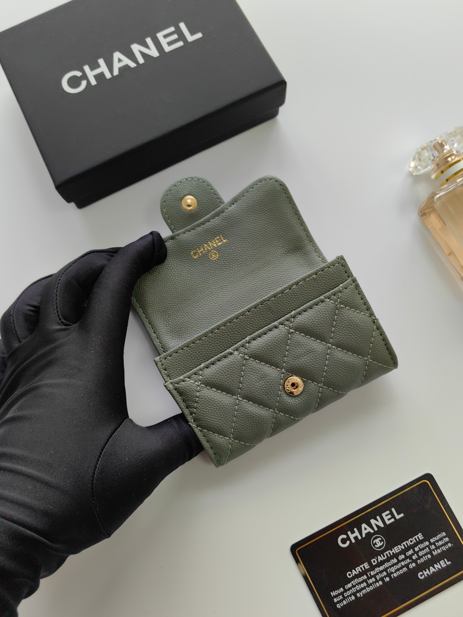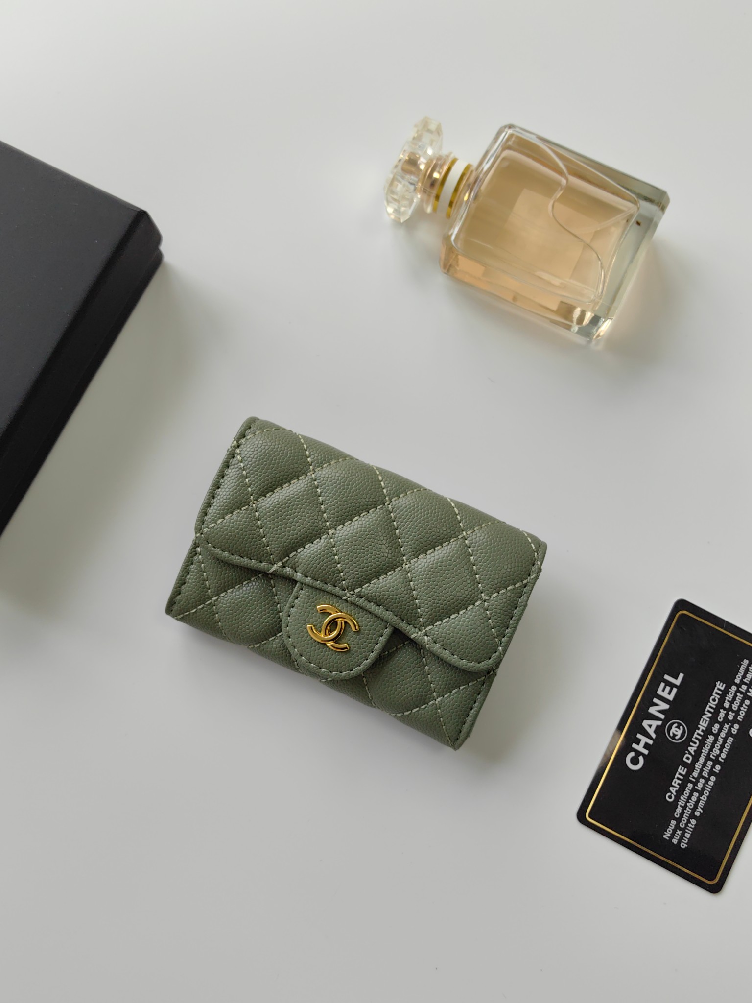 上質なキャビアスキンに輝くココマーク金具が印象的な、シャネルのロングウォレットです