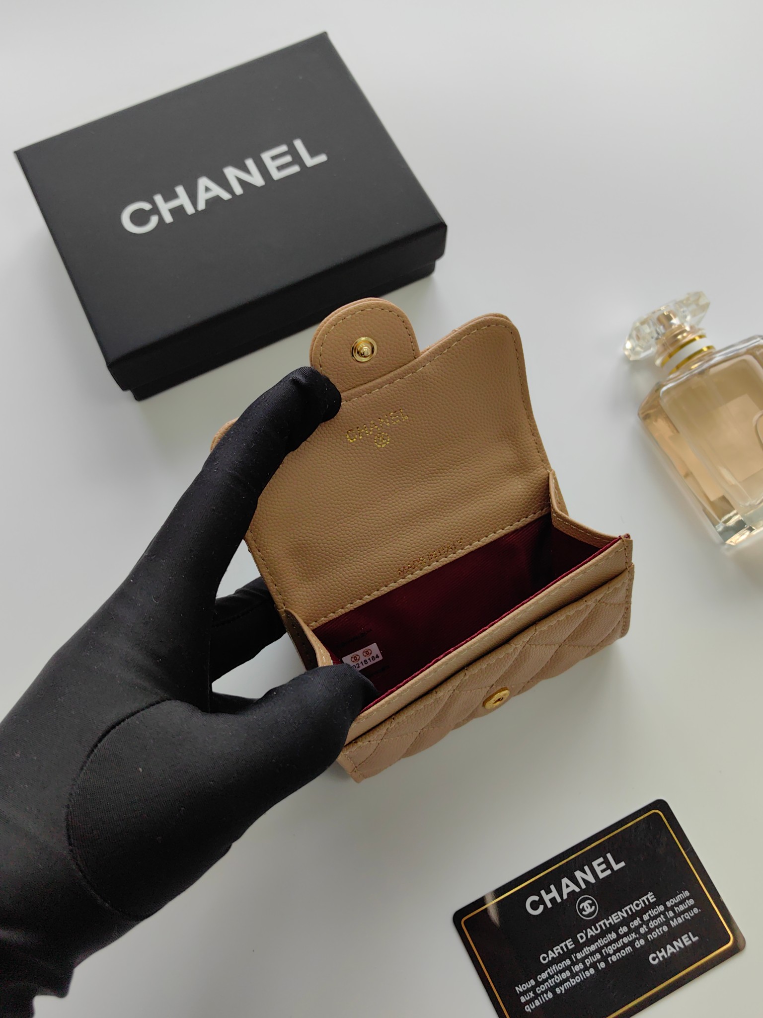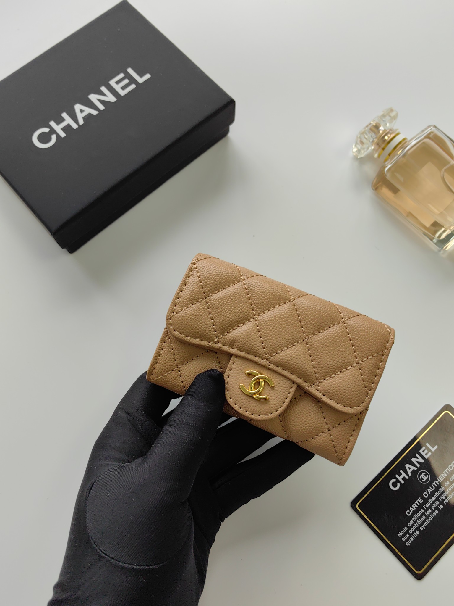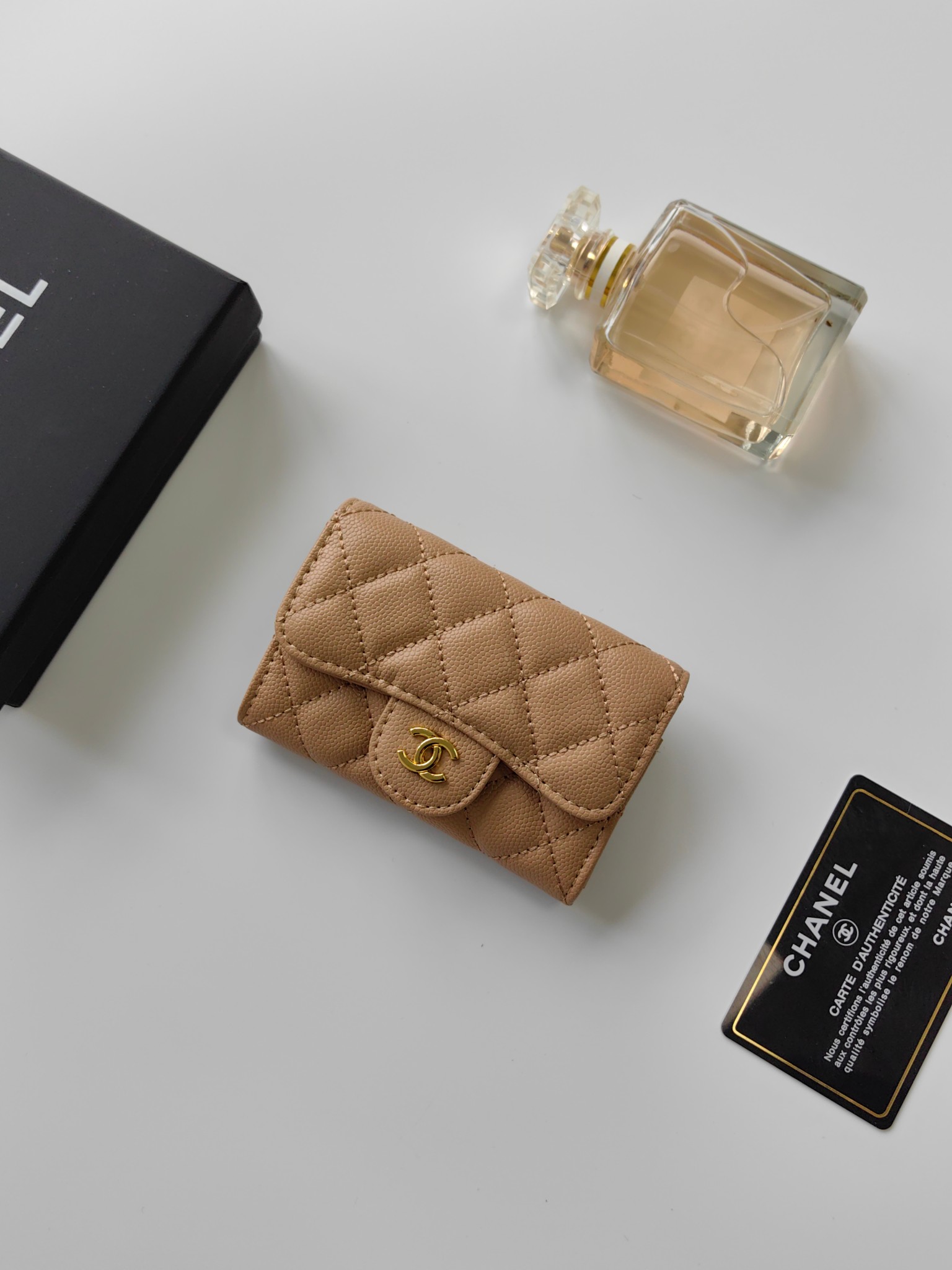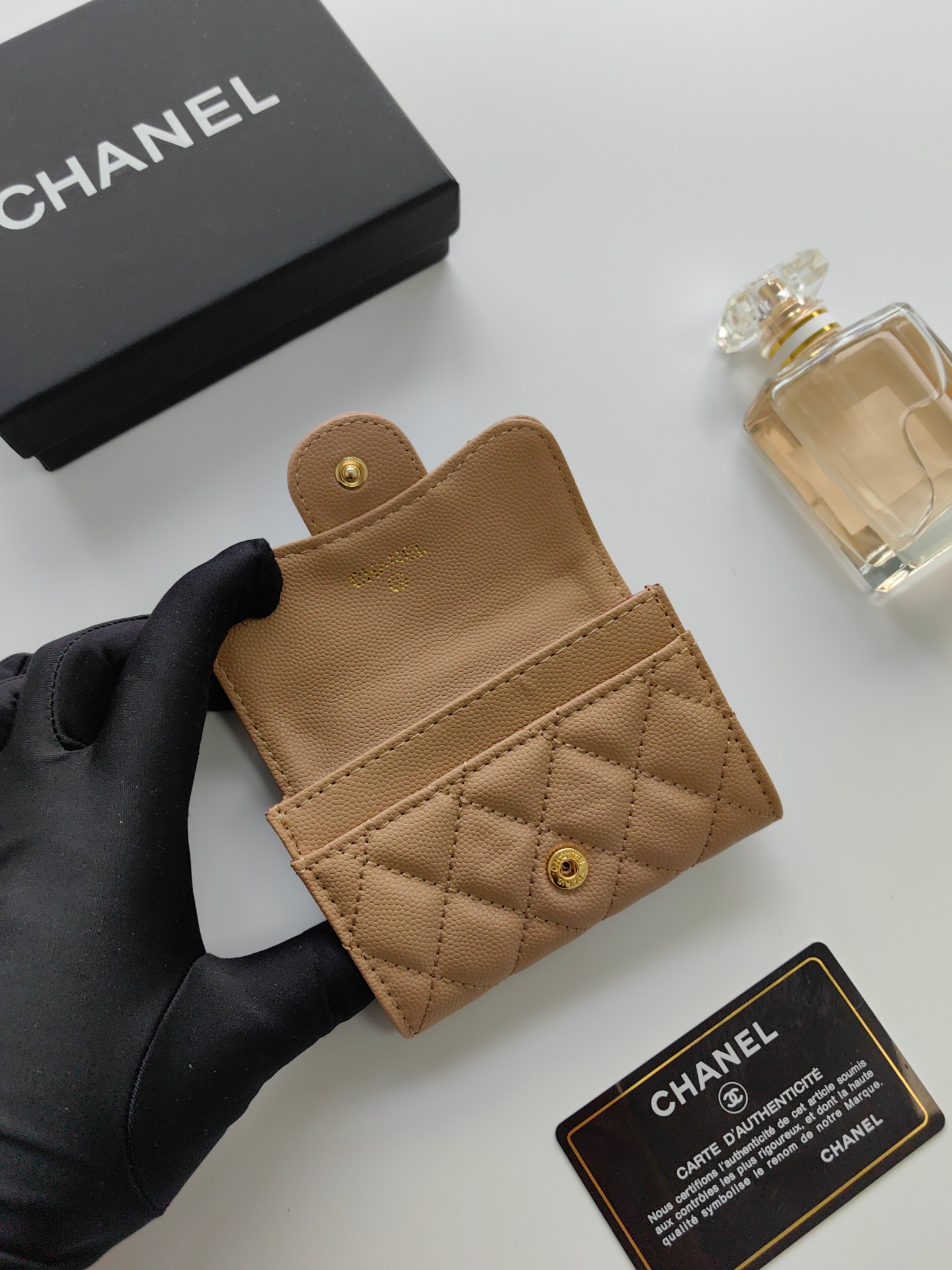 上質なキャビアスキンに、輝くココマーク金具が美しいシャネルの長財布です