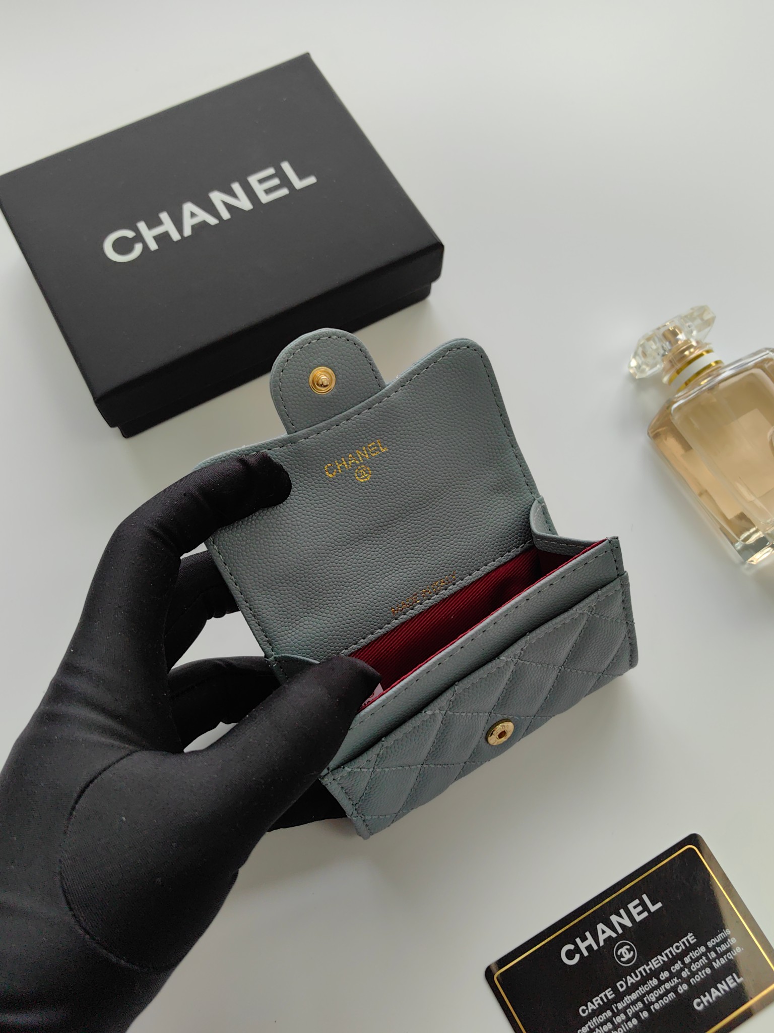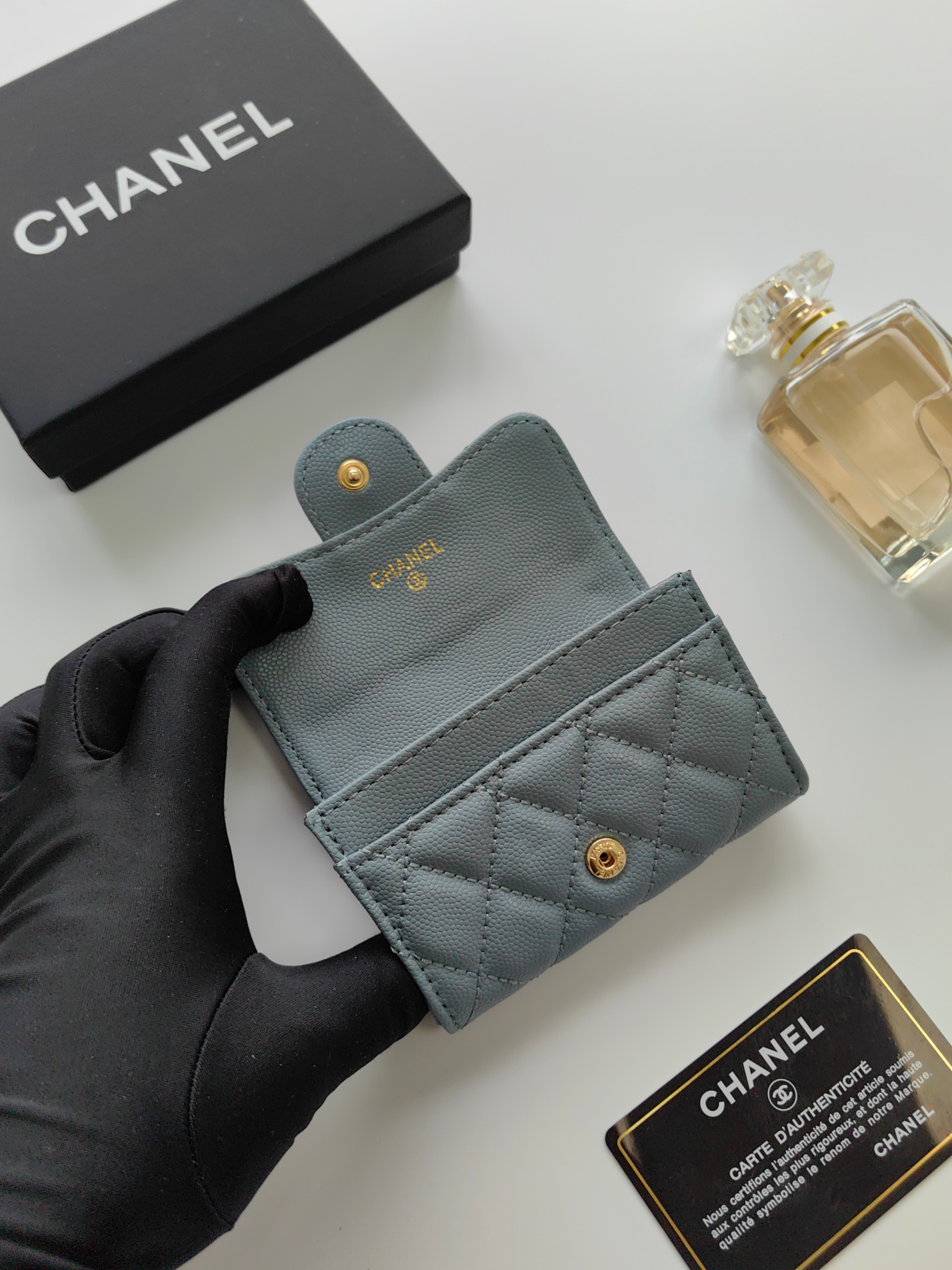 上質なキャビアスキンに、輝くココマーク金具が印象的なシャネルの長財布です