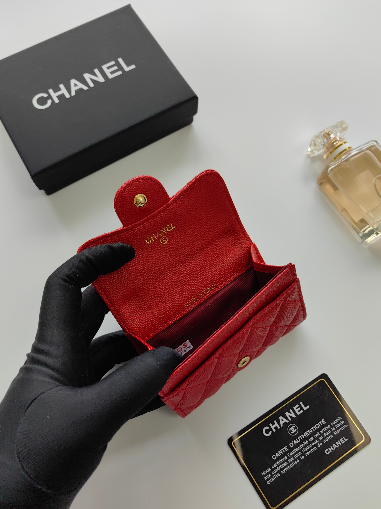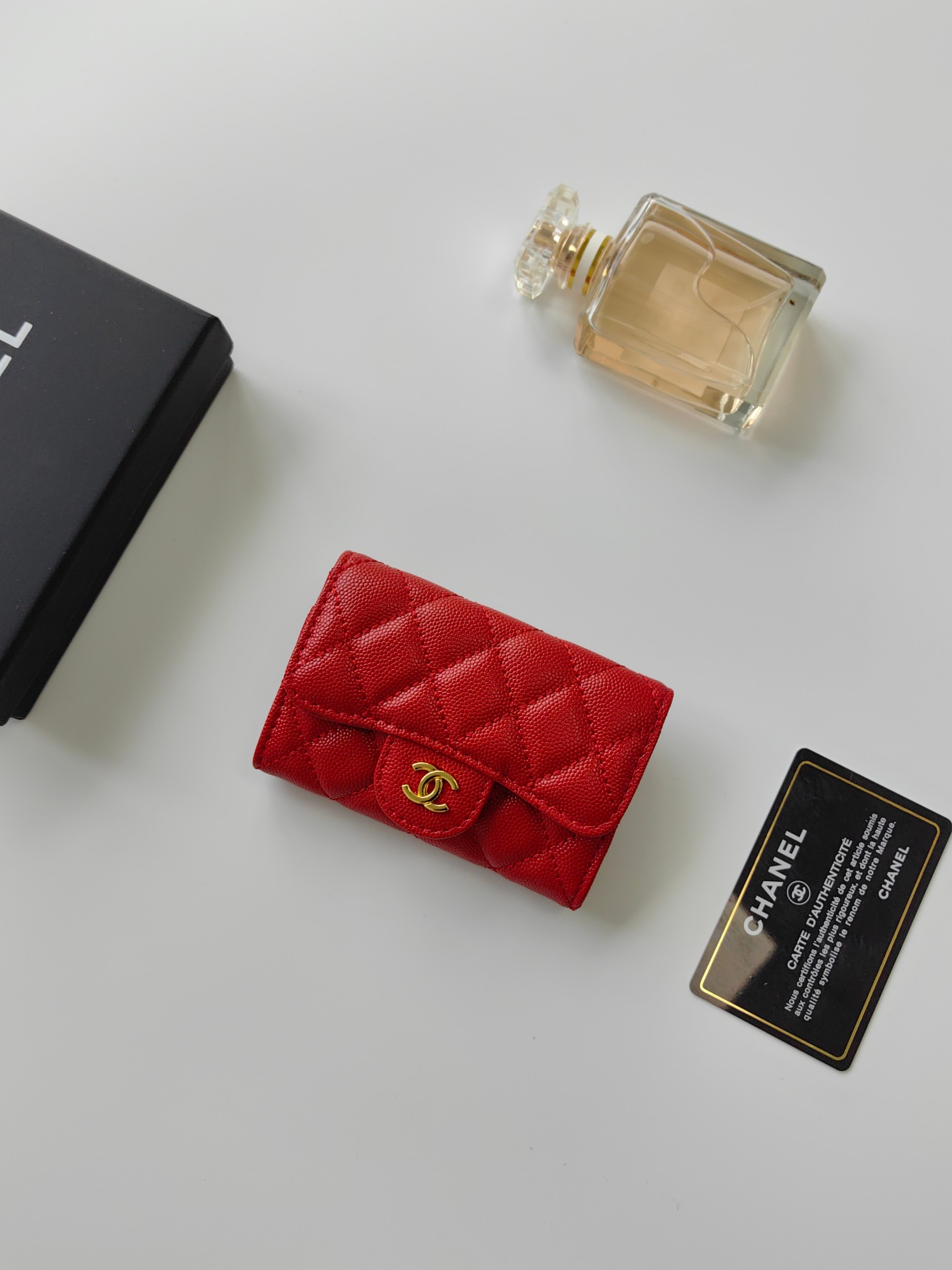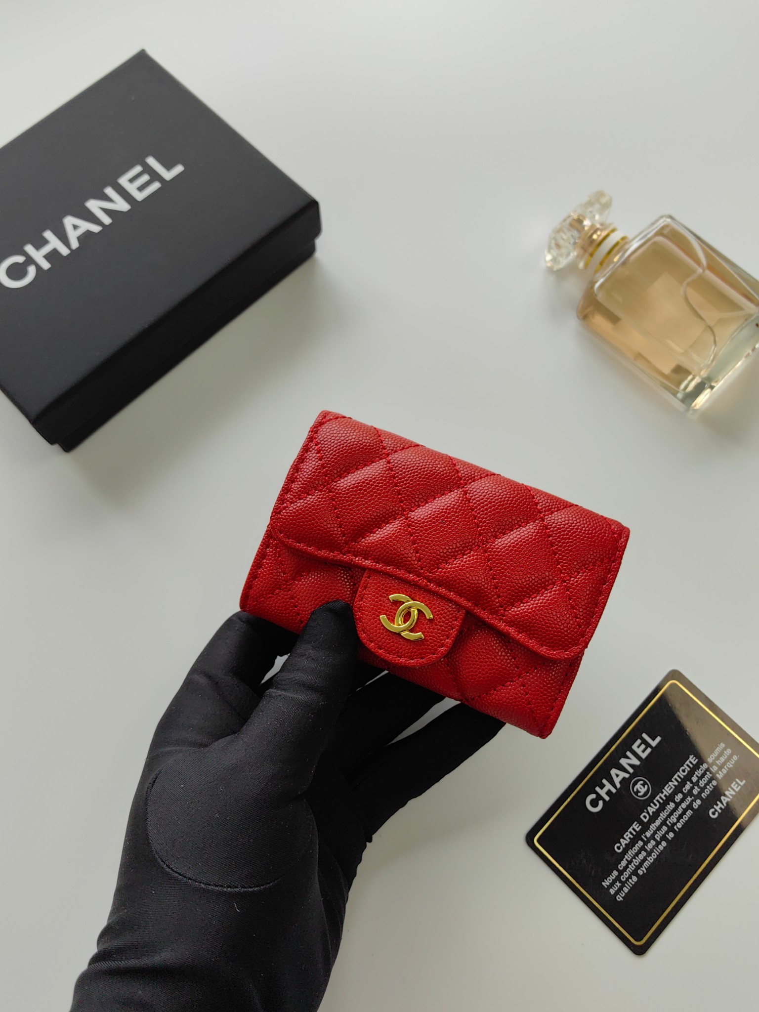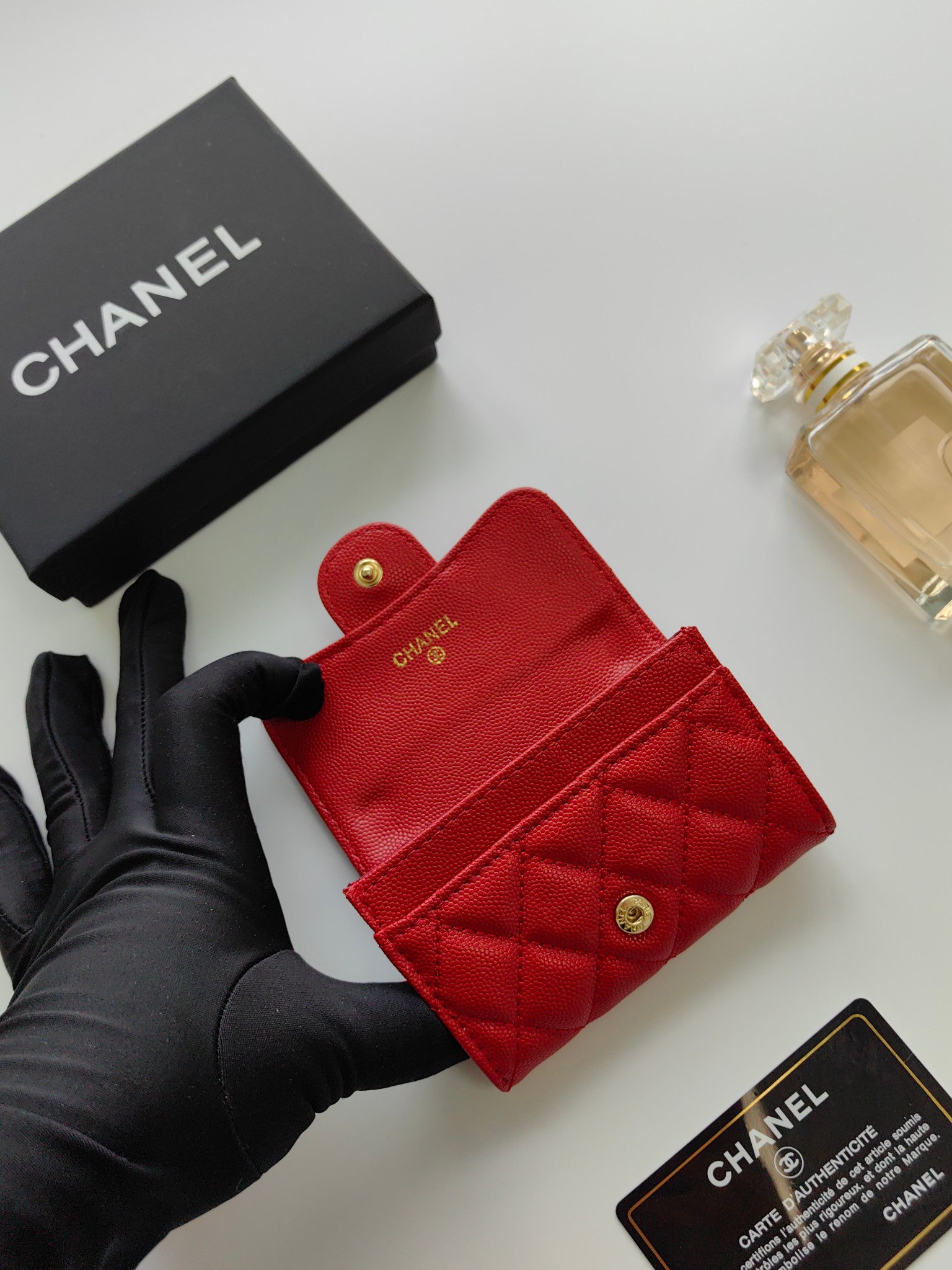 上質なキャビアスキンに輝くココマーク金具が印象的な、シャネルのエレガントな長財布です