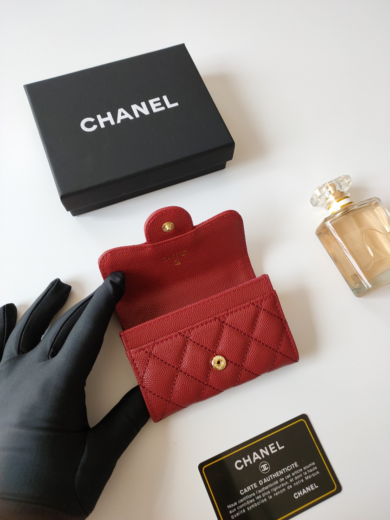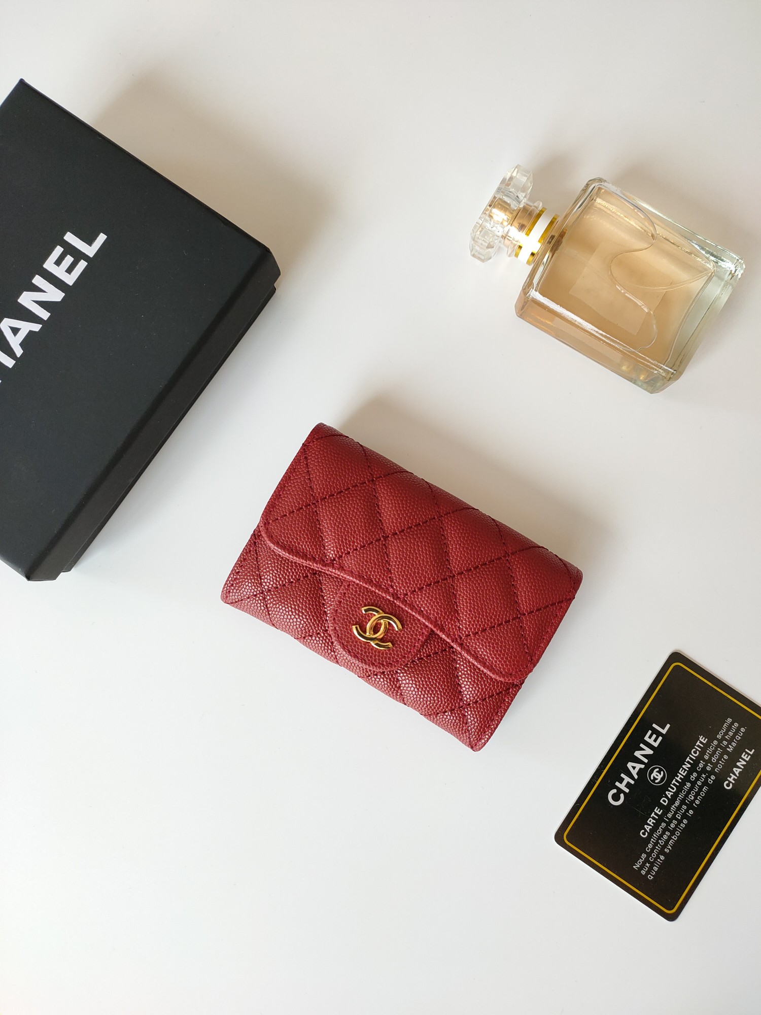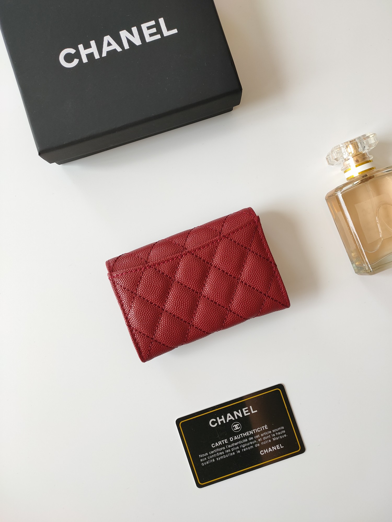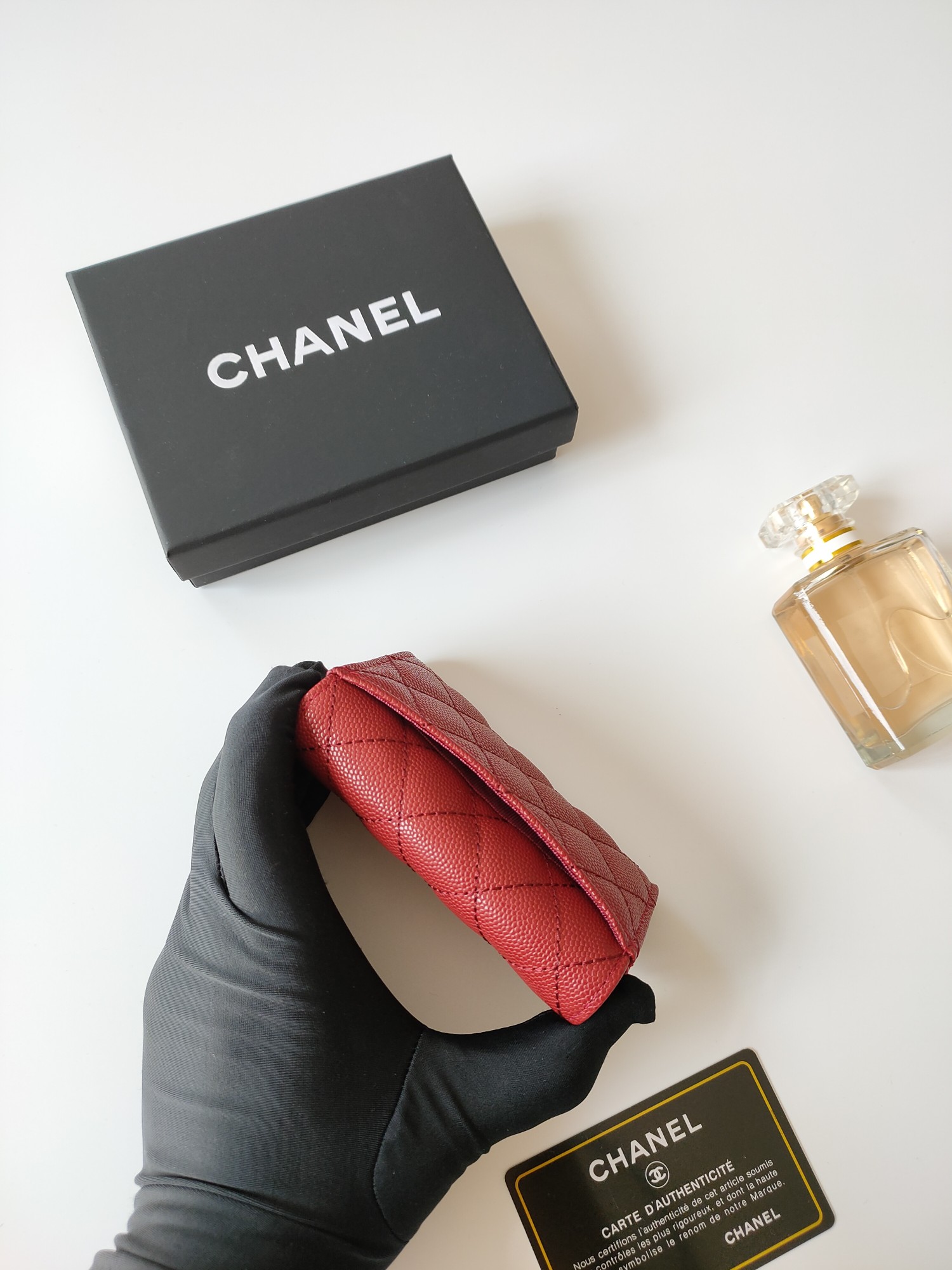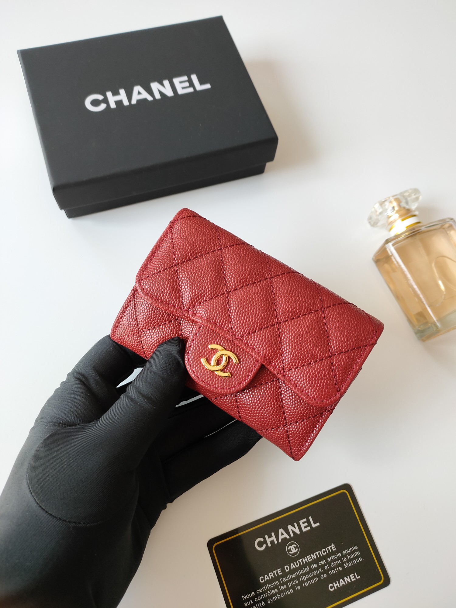 上質なキャビアスキンに輝くココマーク金具が印象的な、シャネルのロングウォレットです