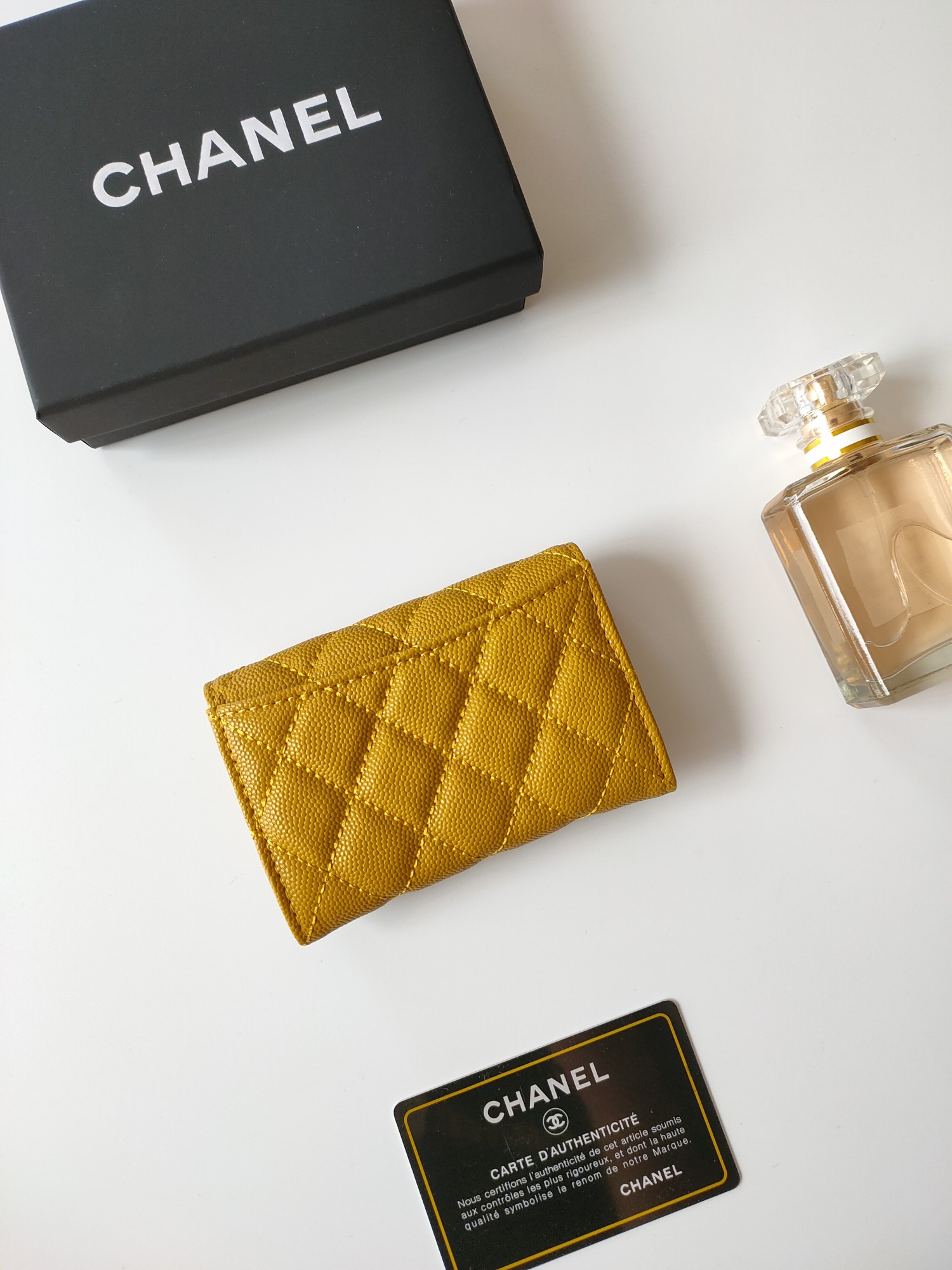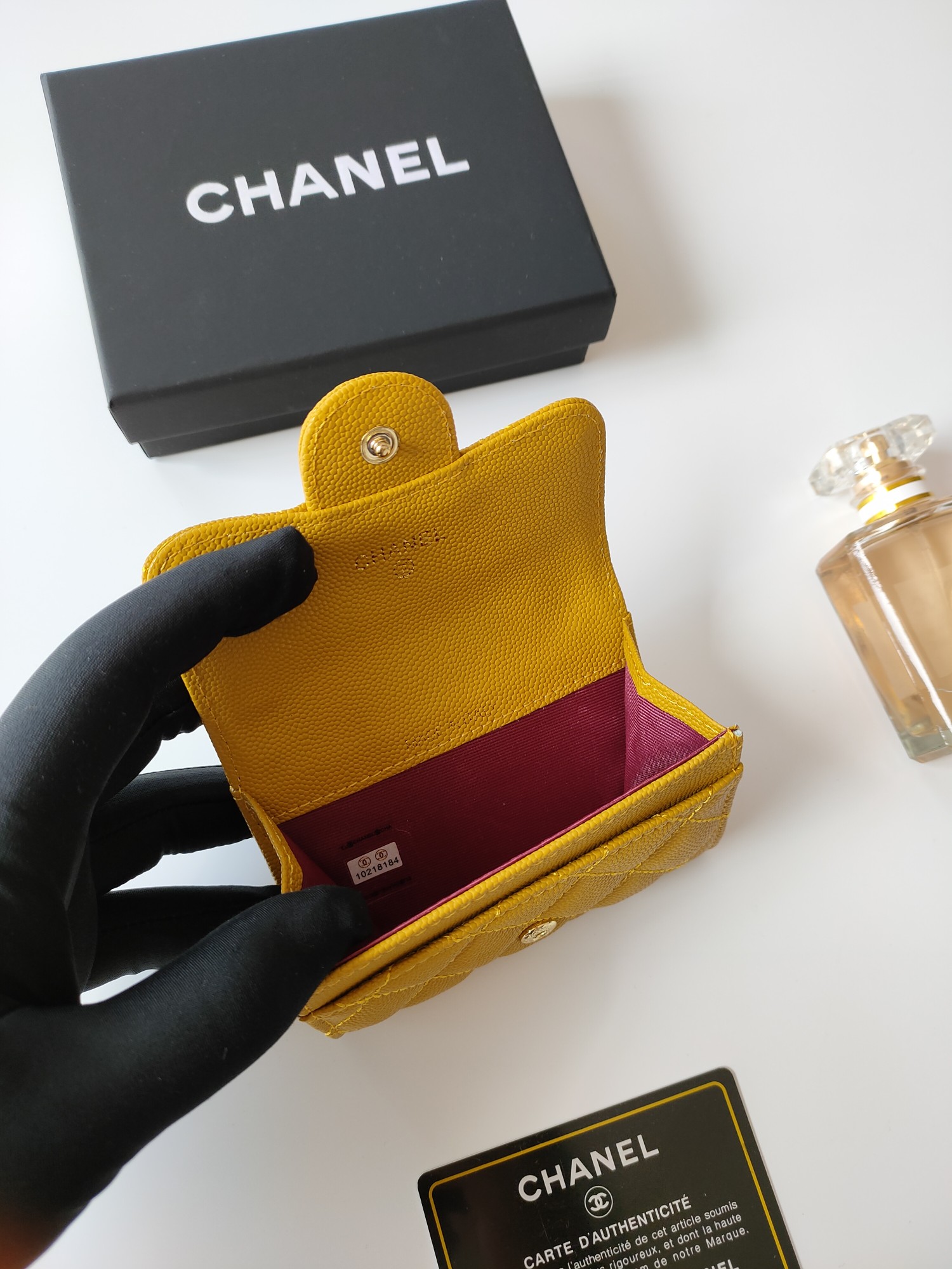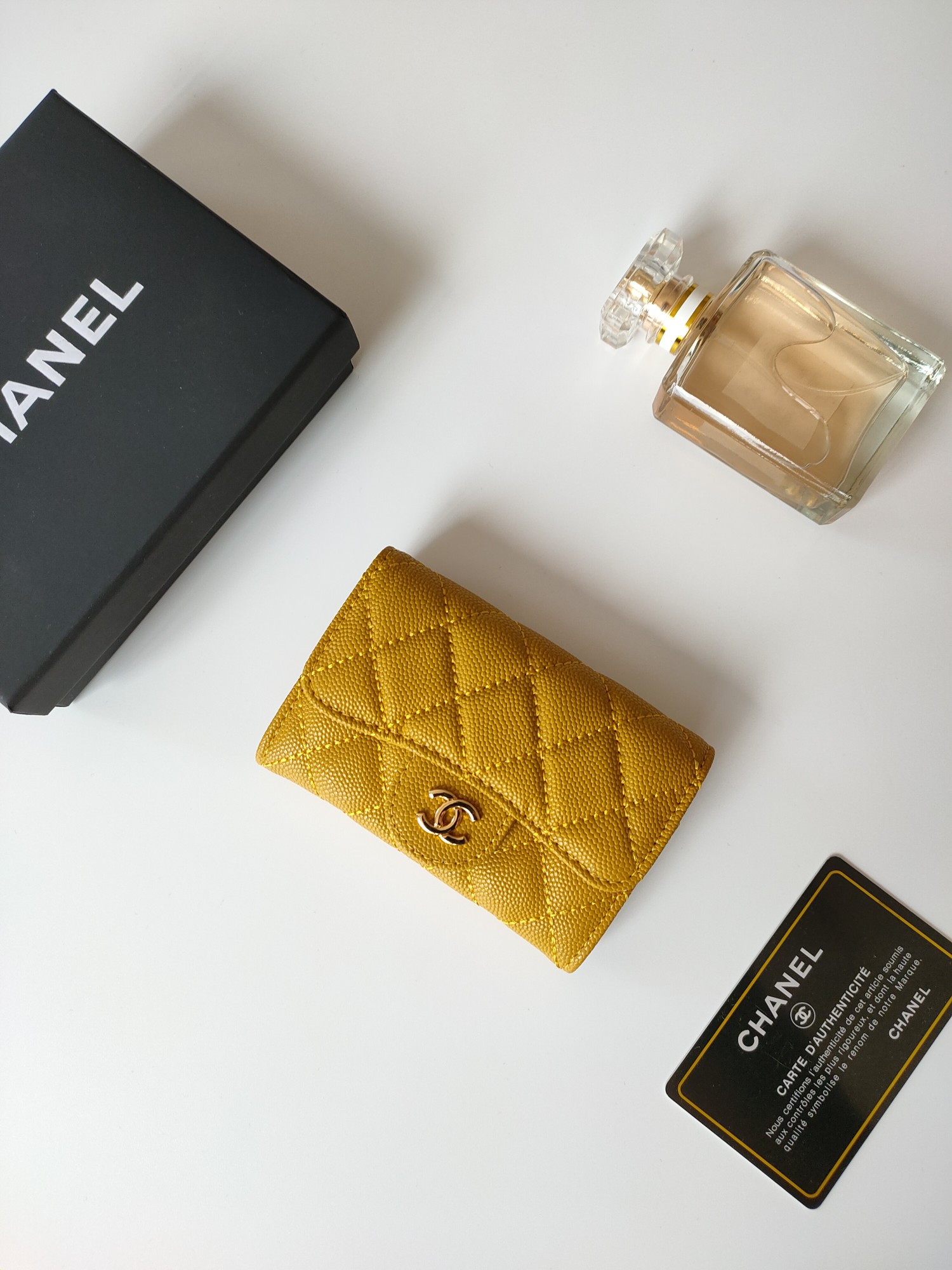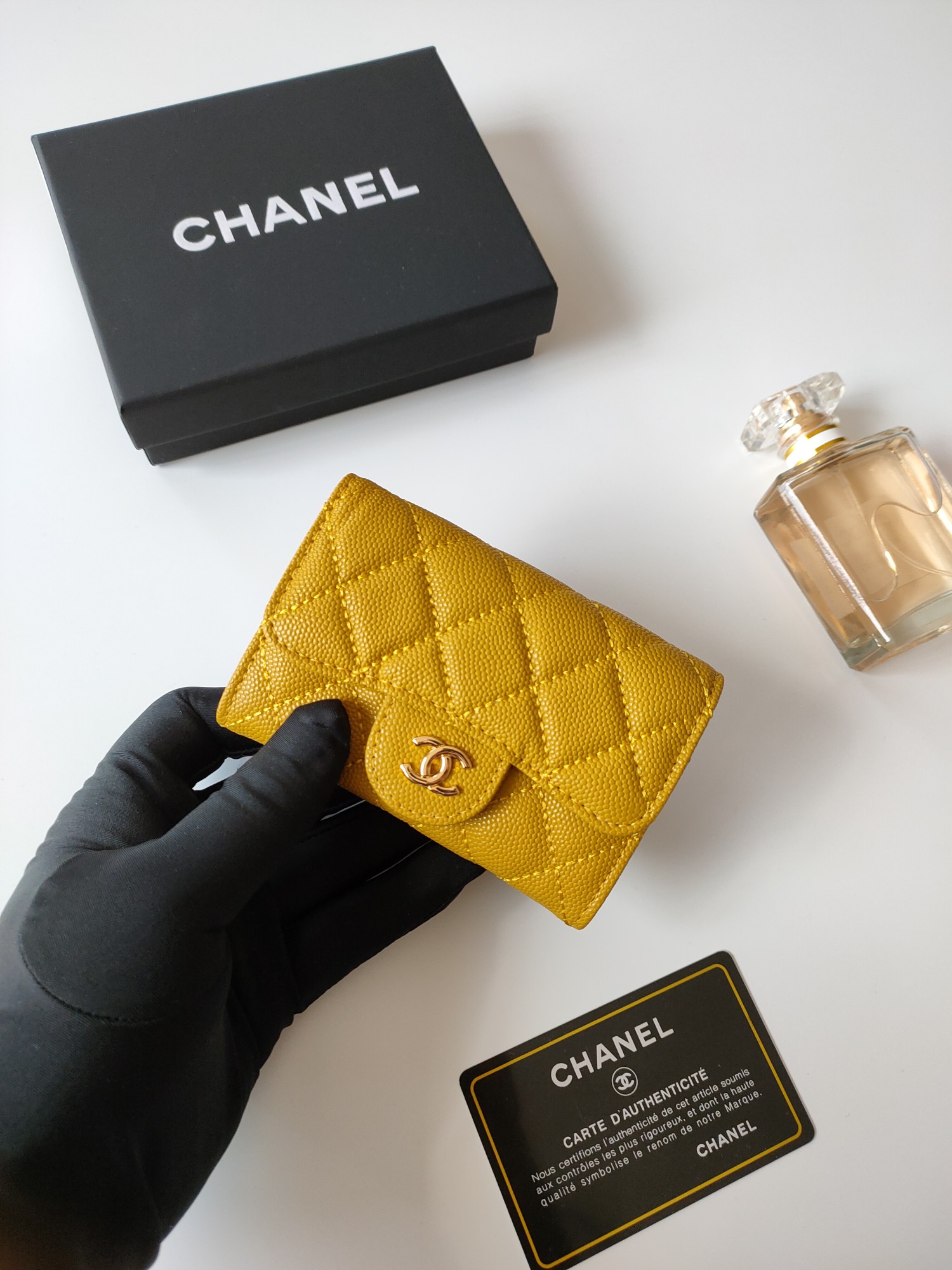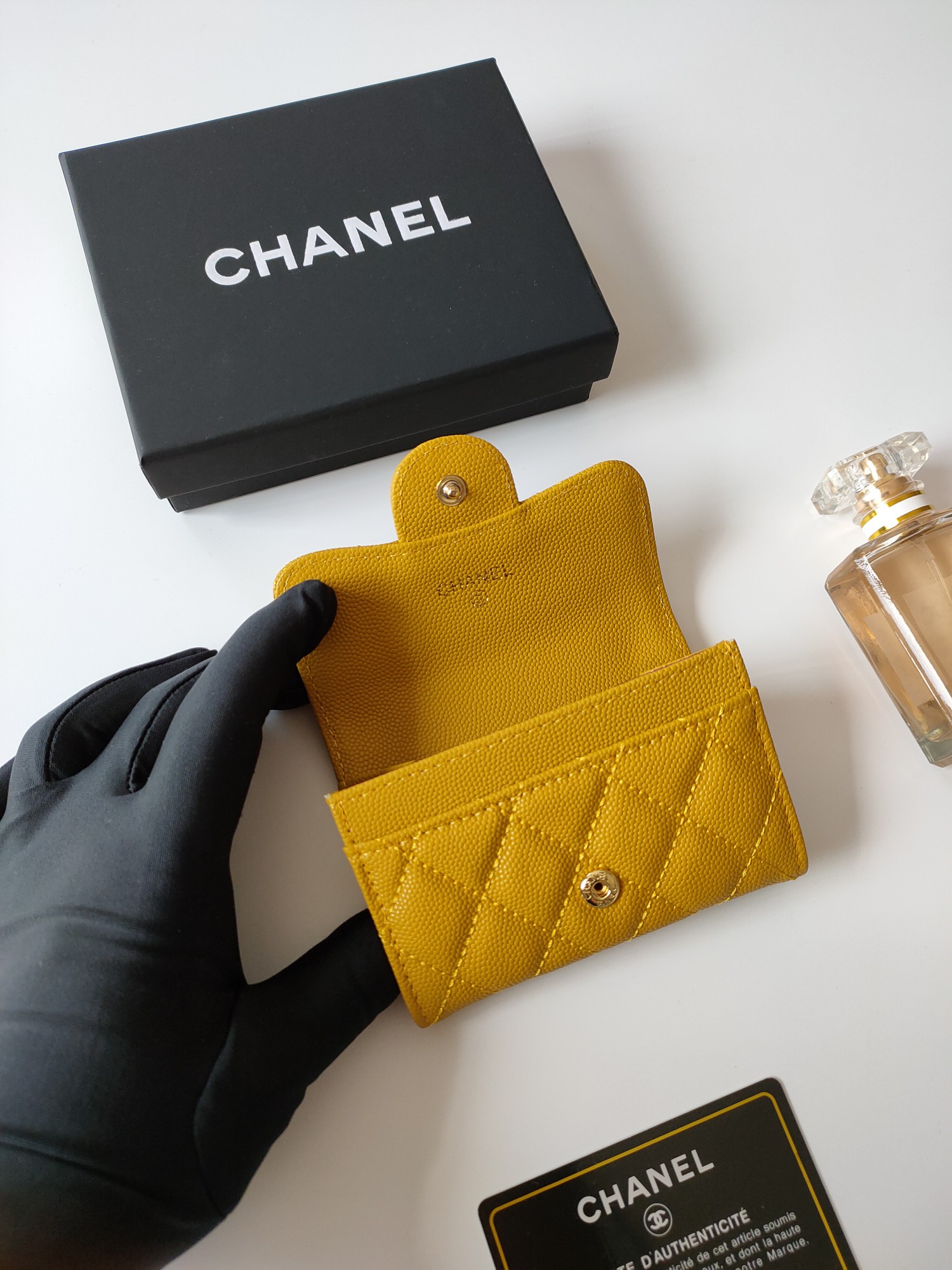 上質なキャビアスキンに輝くココマーク金具が印象的な、シャネルのエレガントな長財布です