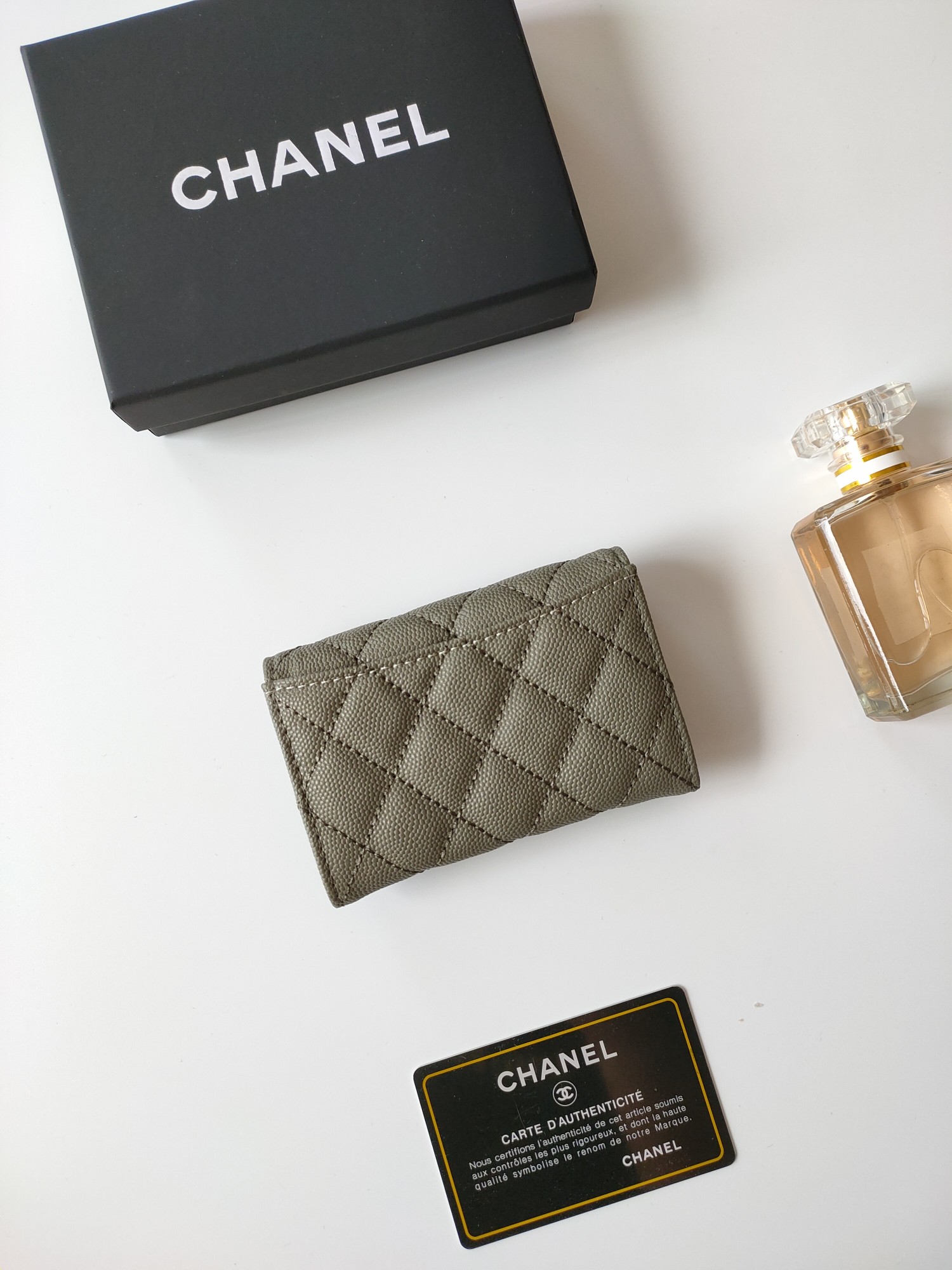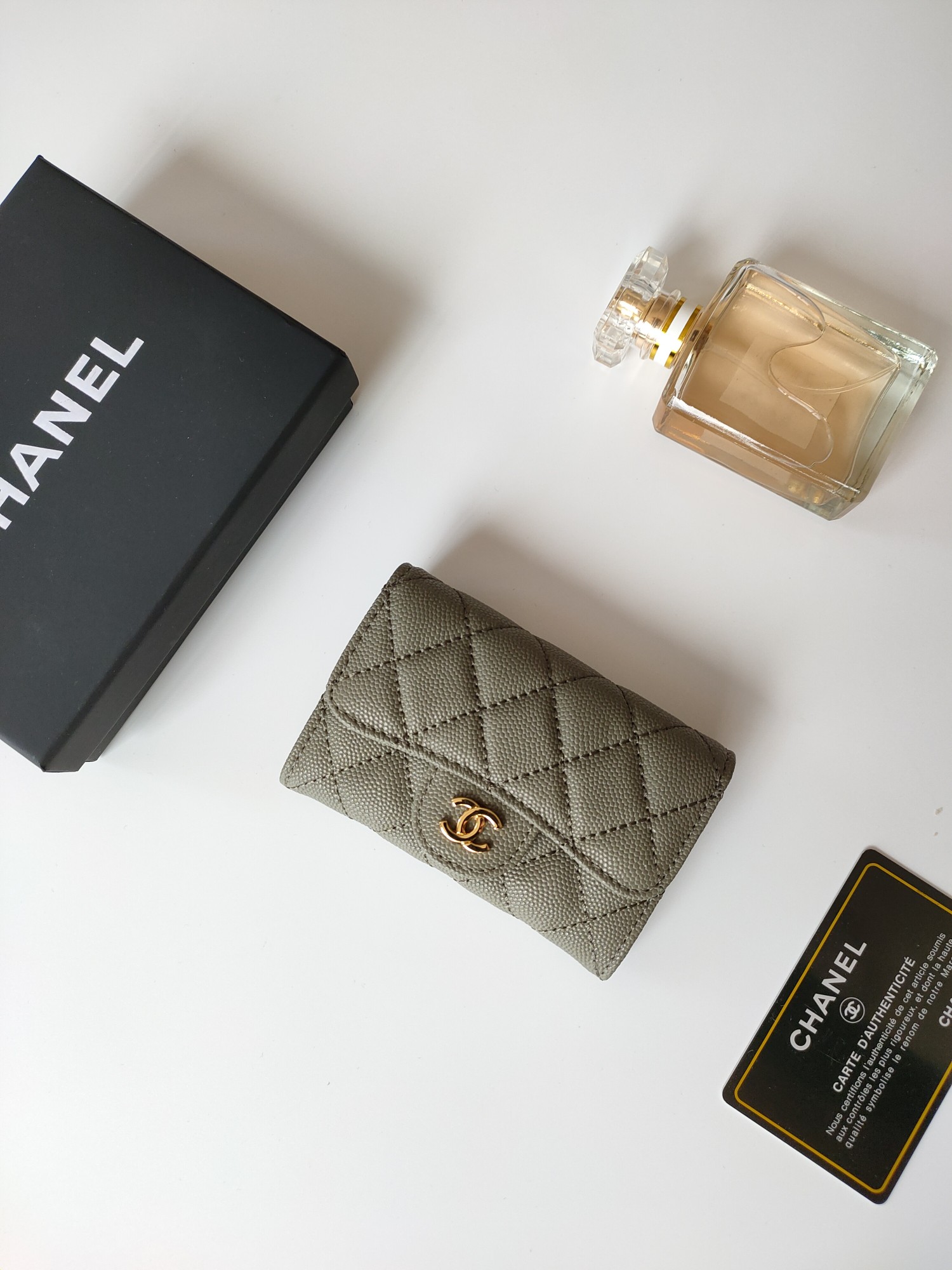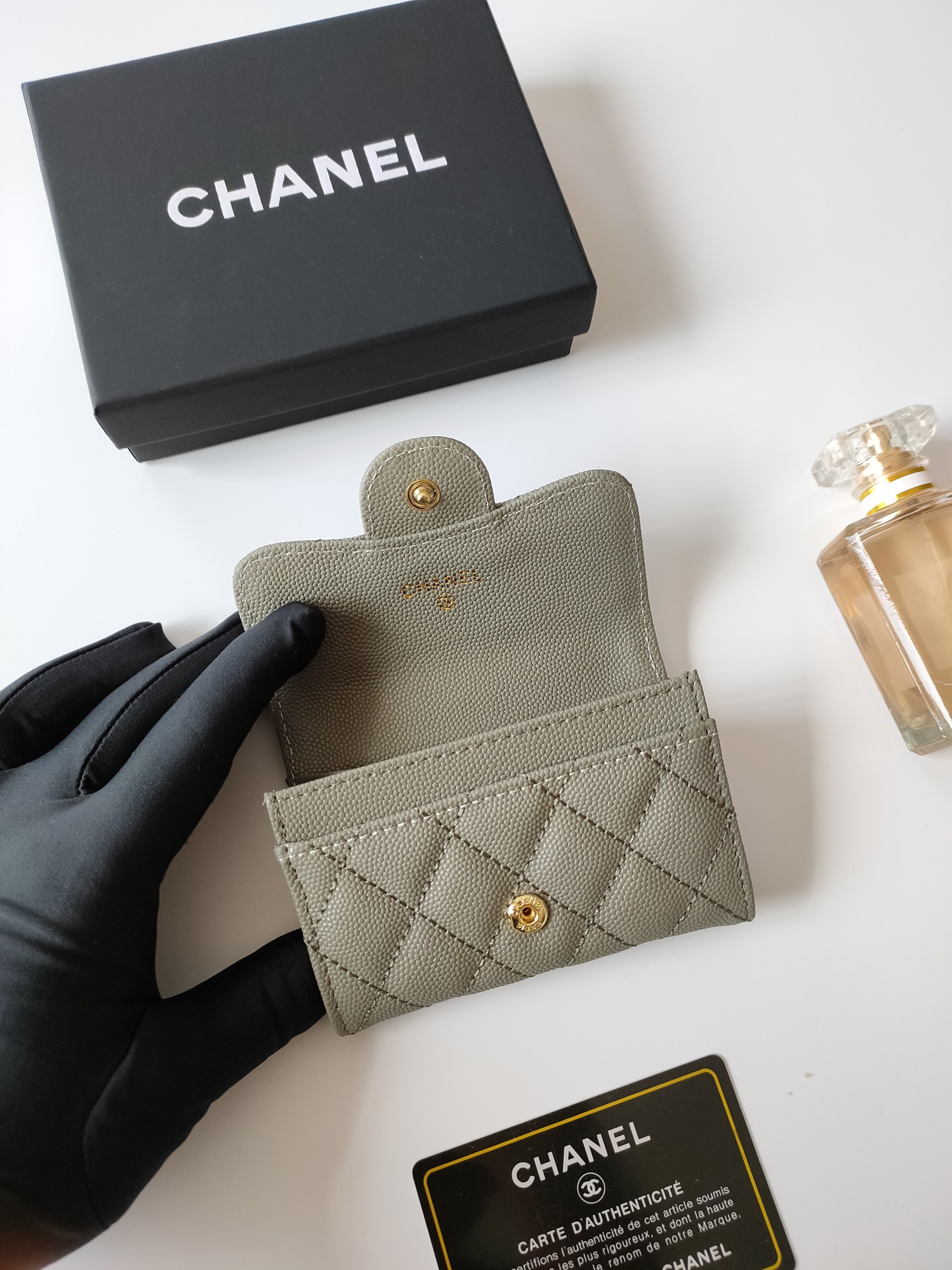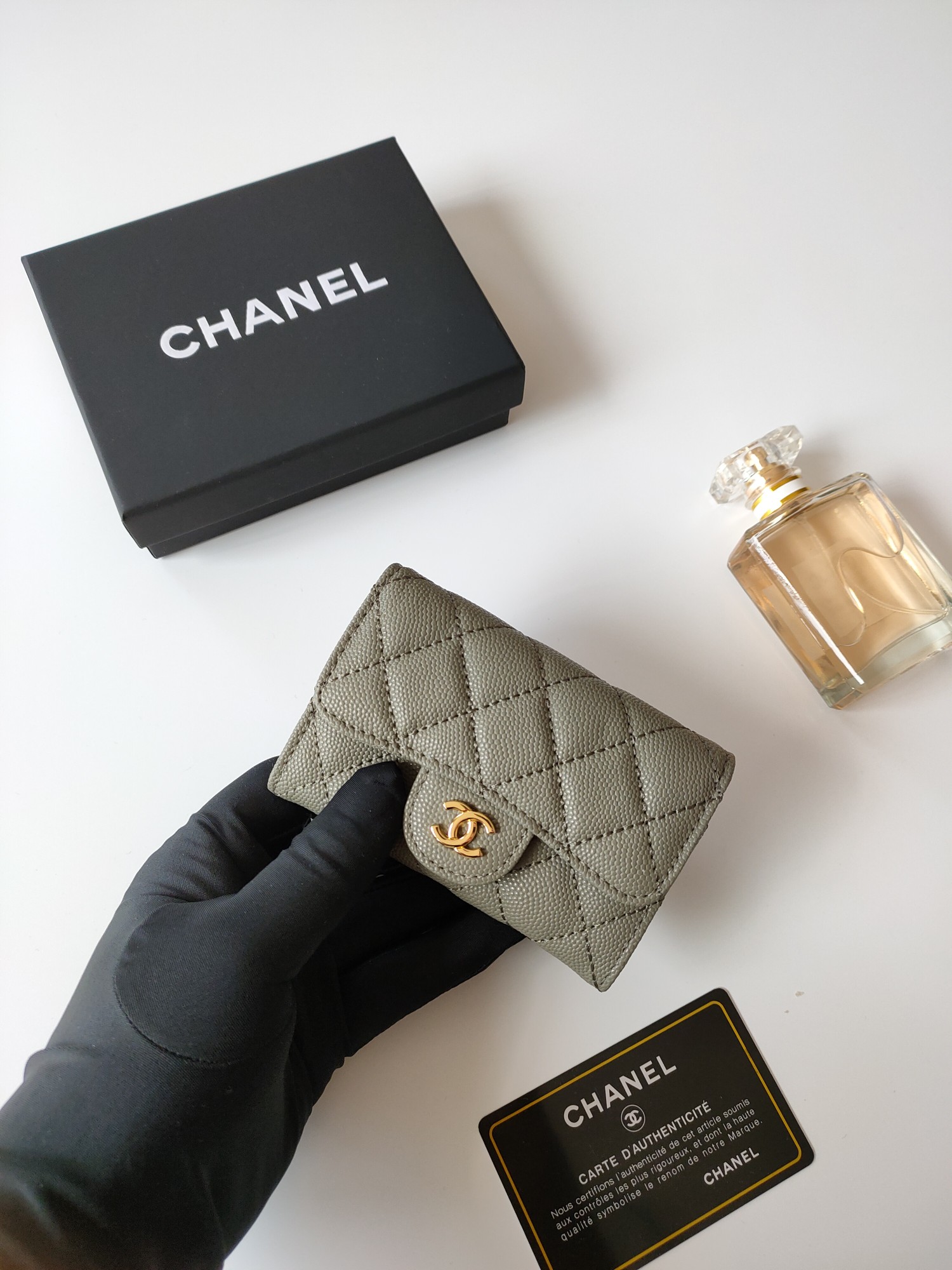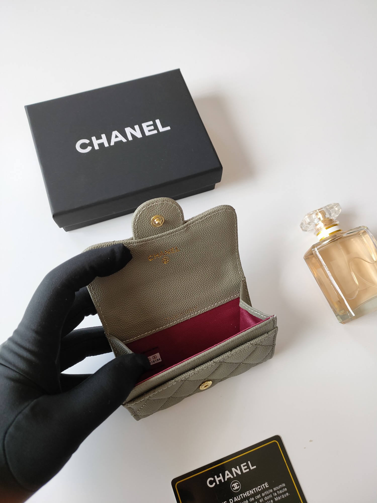 シャネルを象徴するキャビアスキンとココマーク金具が美しい、ブラックの長財布です