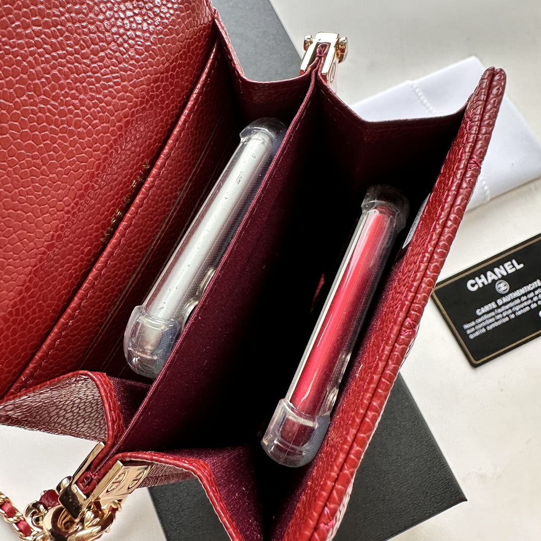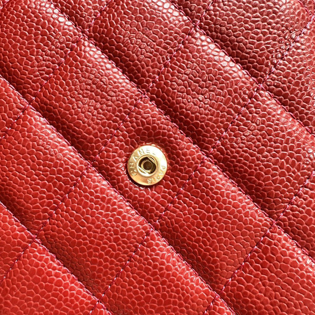 上質なキャビアスキンに、輝くココマーク金具が印象的なシャネルのトリプリーツウォレットです