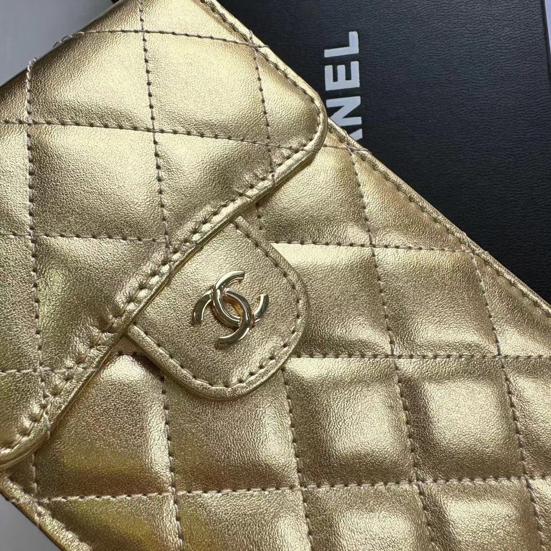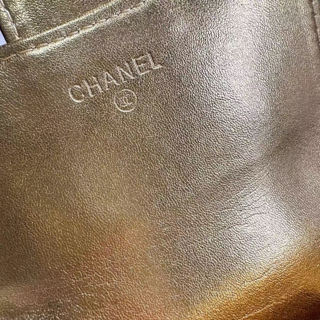 上質なキャビアスキンに輝くココマーク金具が美しい、シャネルのロングウォレットです