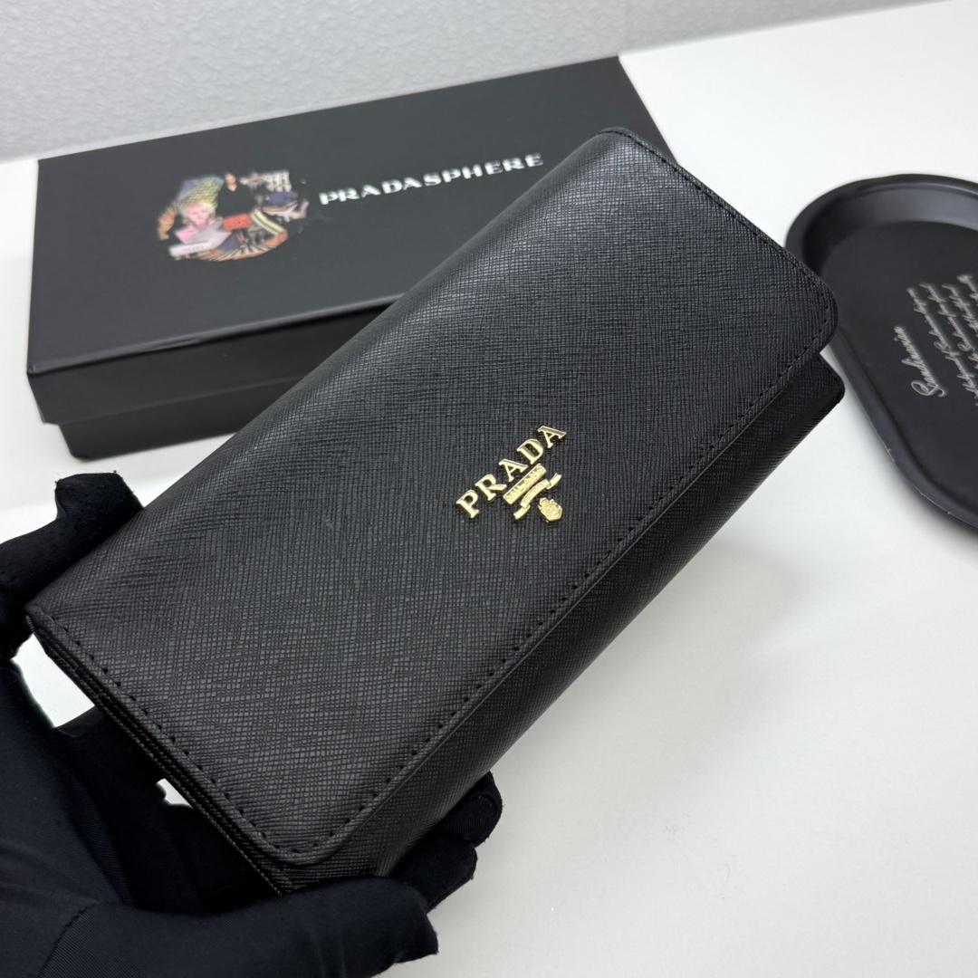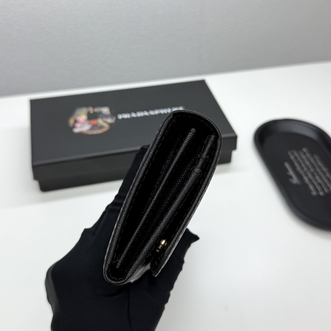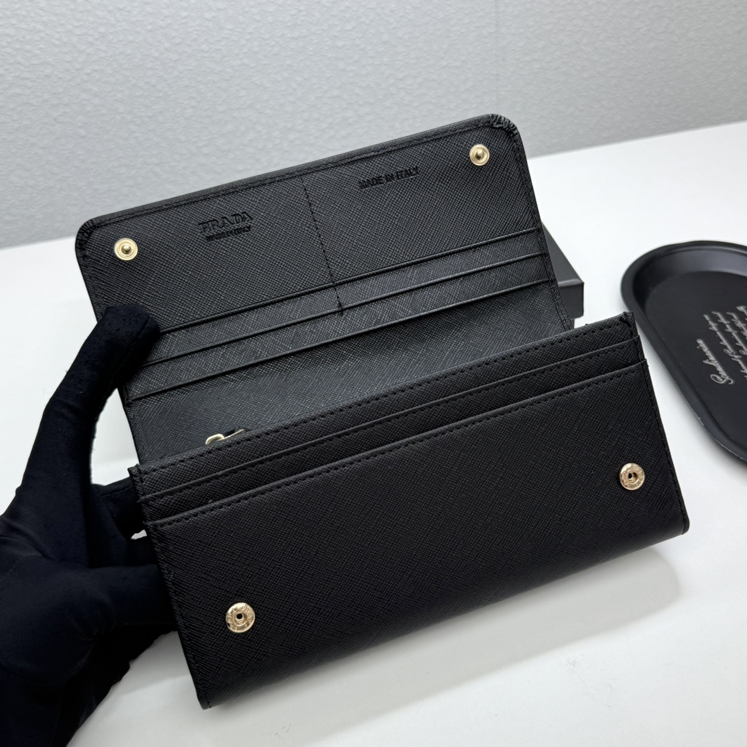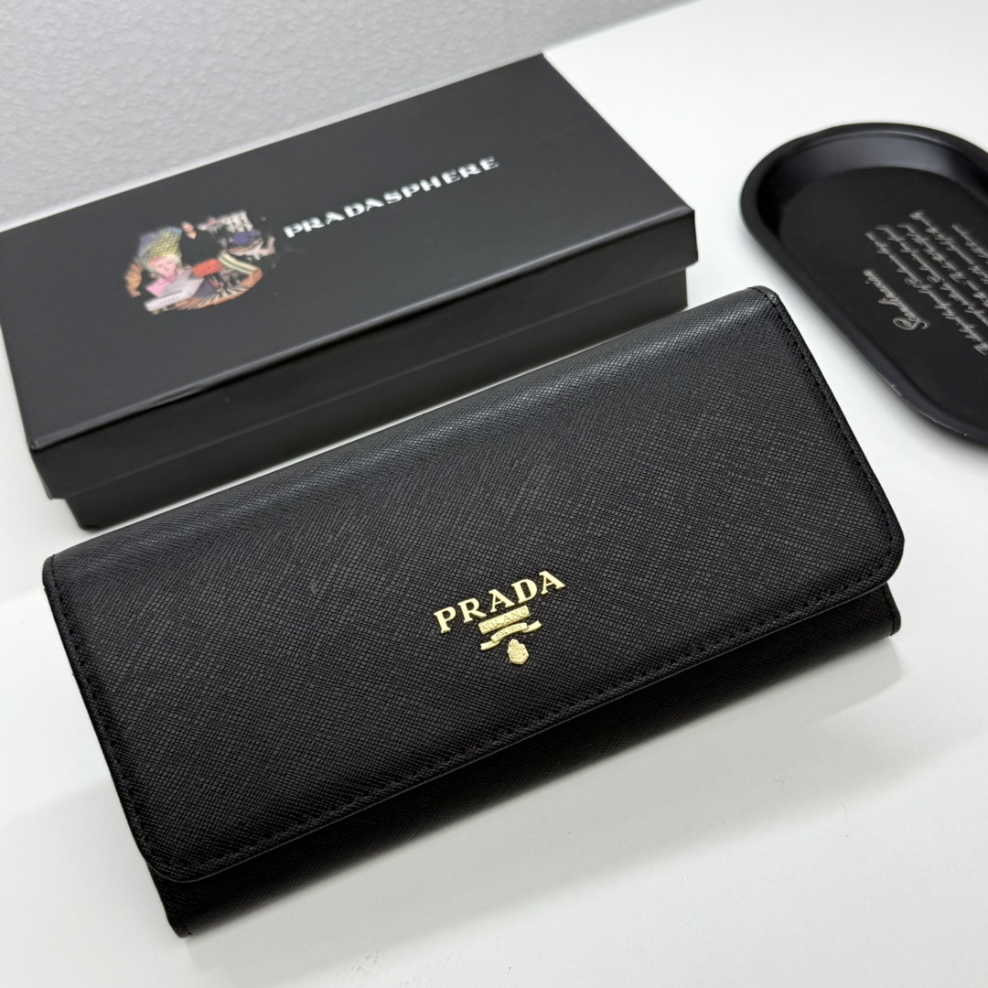 ファスナー開閉式で、紙幣やカード、小銭まで整理しやすく、実用的な収納力を備えています。世界中で愛され続けるプラダのクラフツマンシップが感じられる、耐久性にも優れた一品です。