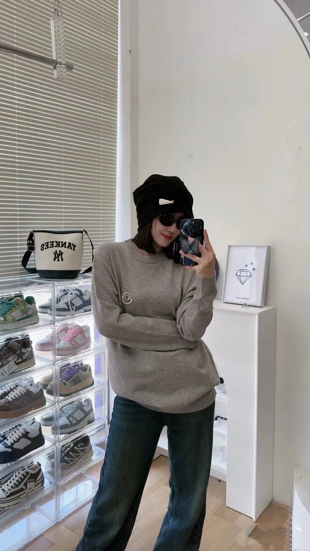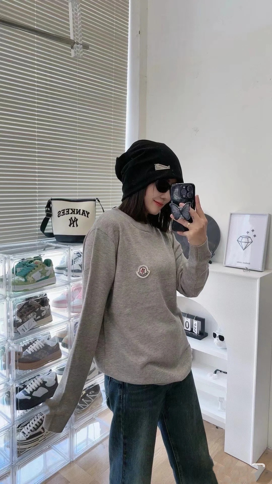 Monclerモンクレール ニットセーター 2色展開 ミニロゴ ロンT風 オーバーサイズ 無地 男性用 女性用 男女兼用