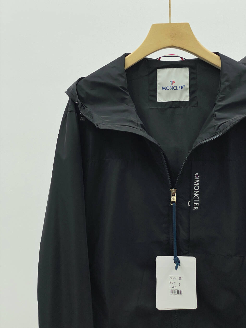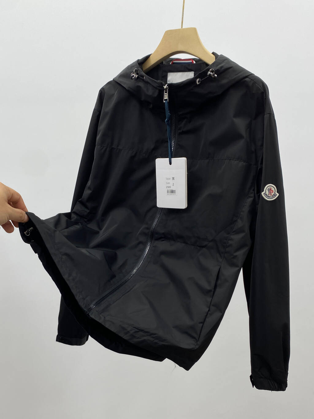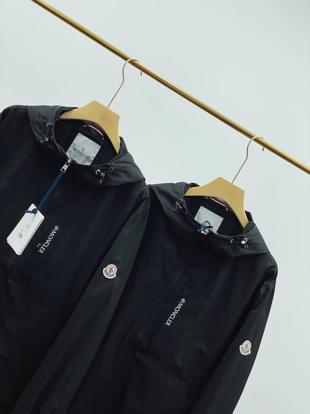 Monclerモンクレール 黒 リブ袖 フード付き軽量防風ジャケット 2色入