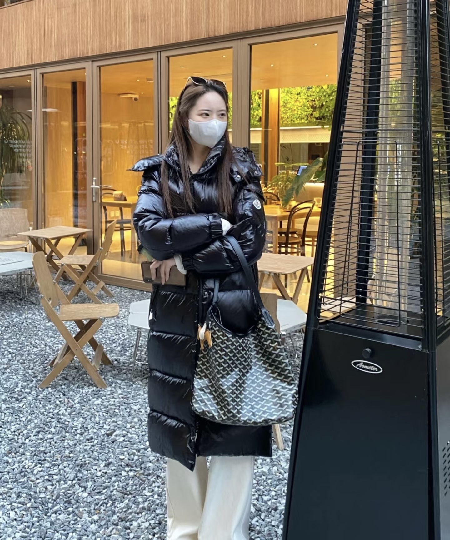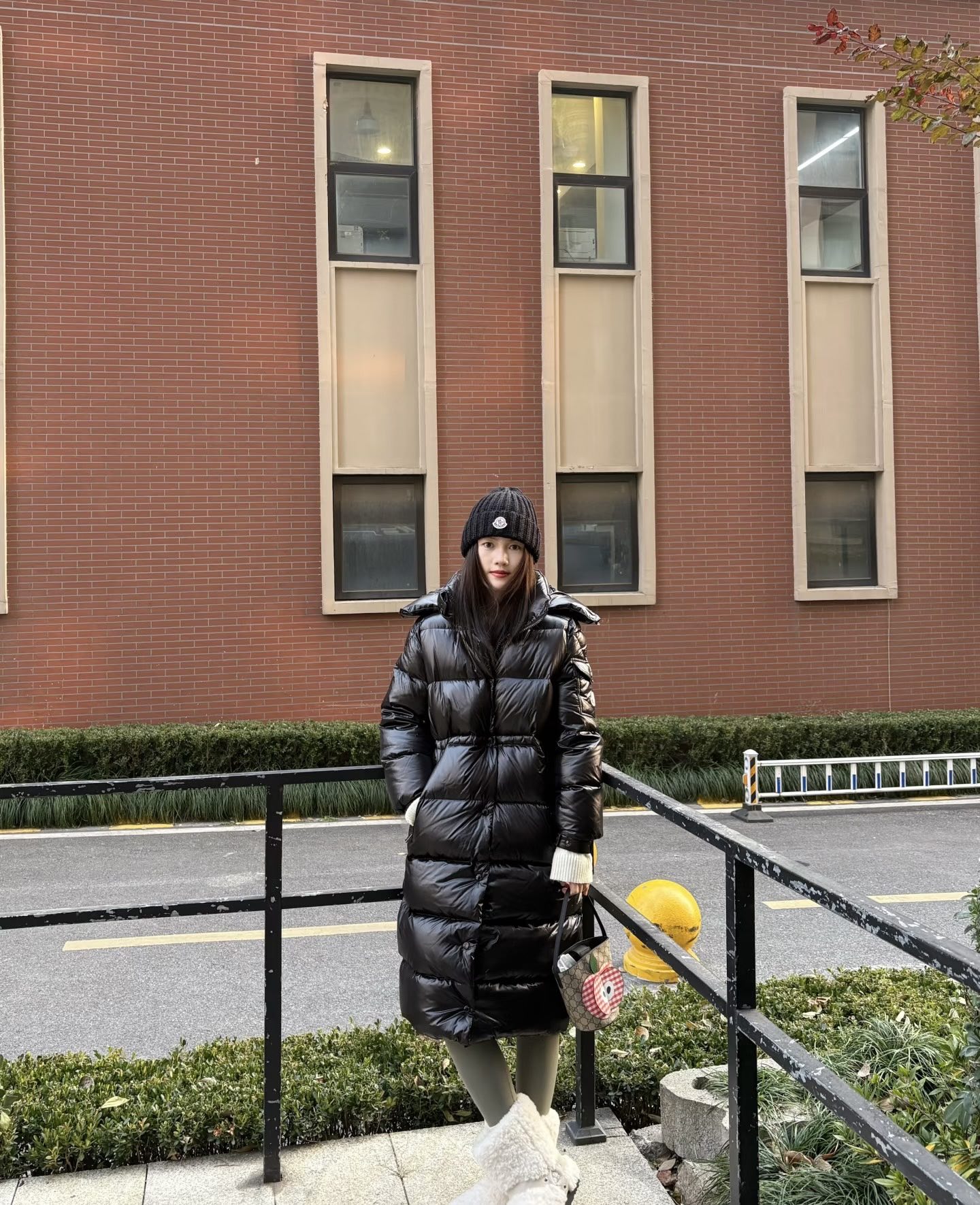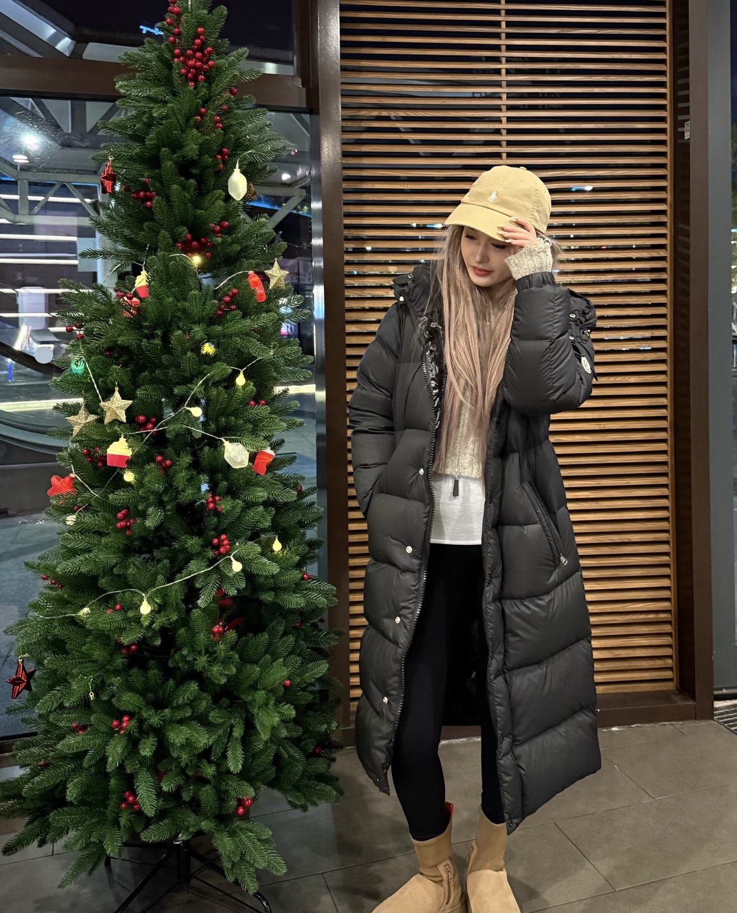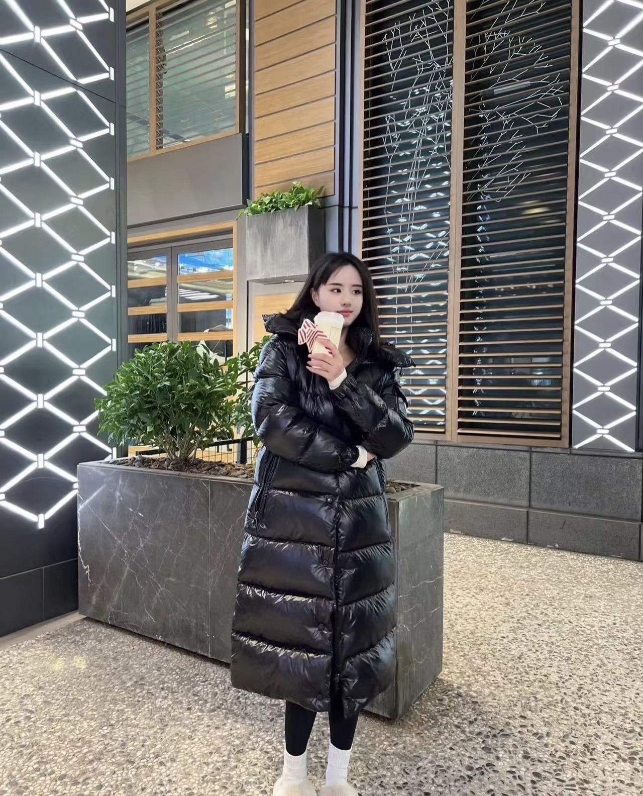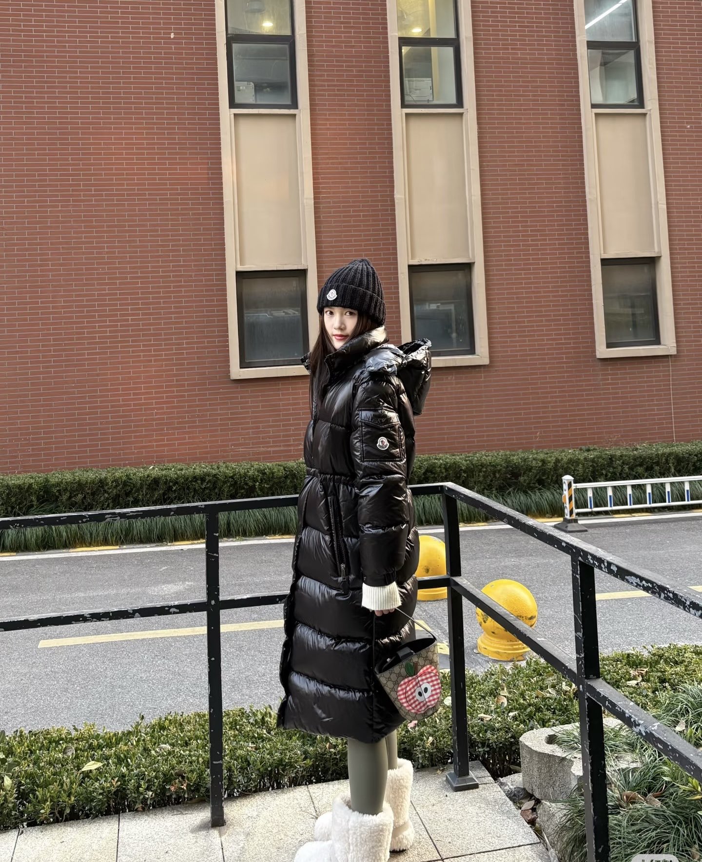 Monclerモンク レディース フェイクファー付きロングダウンコート 黒 4色入