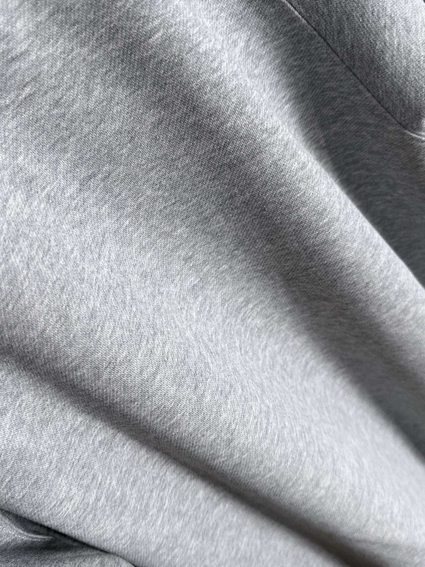 グレーの柔らかなフリース素材は、肌触りがよく、長時間着用しても快適です。