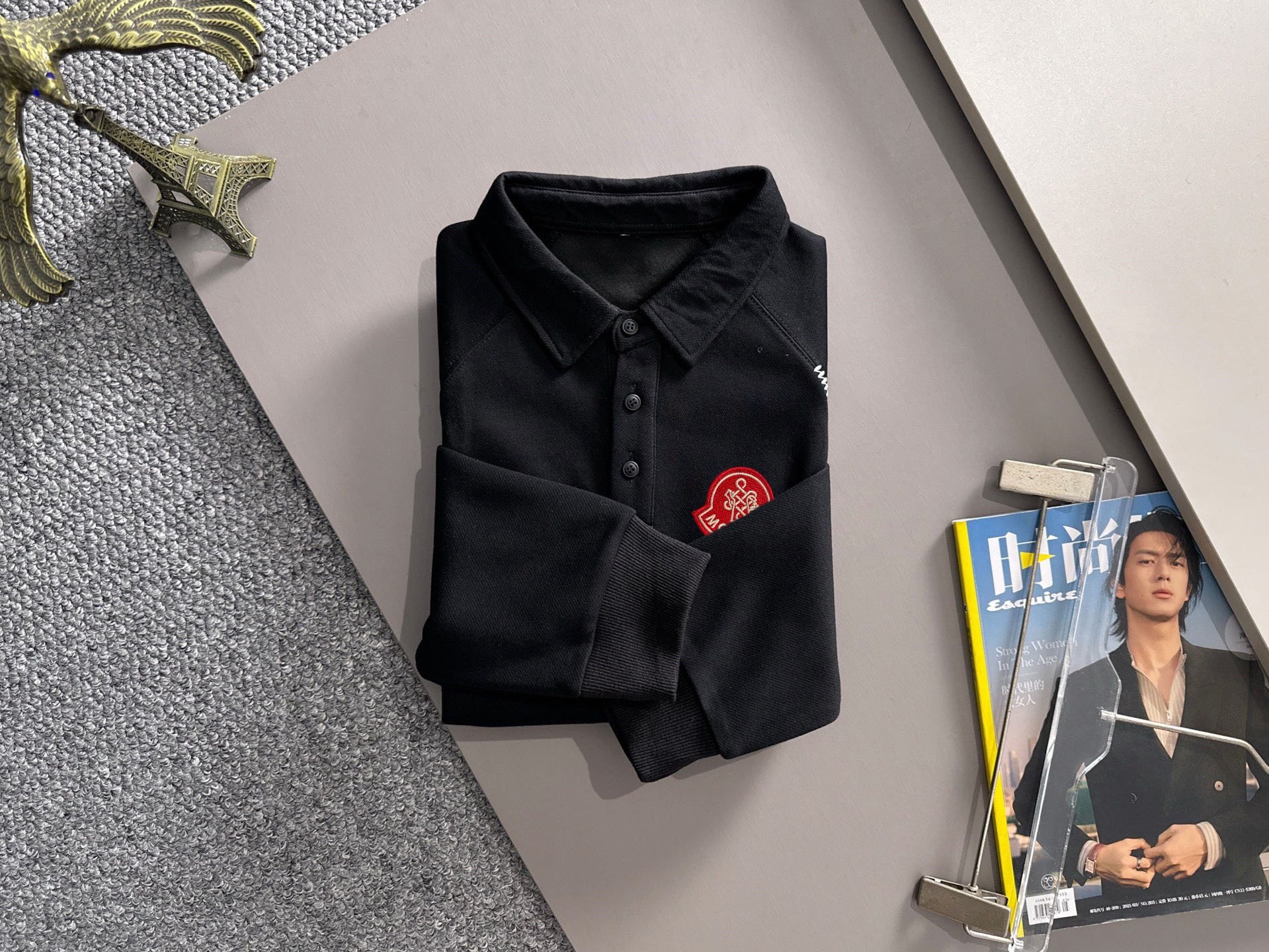 Monclerモンクレール ポロシャツ ブラック 1色入 綿100% 春秋着用 通勤 ビジネスカジュアル