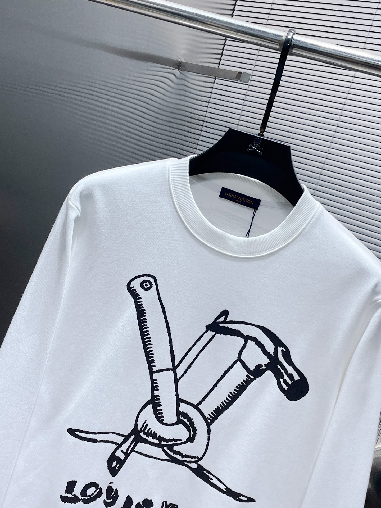 このLOUIS VUITTONのメンズスウェットシャツは、ブランドの特徴的なモノグラムを大胆にプリントした、ファッション性の高い一着です。黒と白の2色展開で、前面には「LOUIS VUITTON」というブランド名と、工具をモチーフにしたユニークなデザインが施されています。背面には、伝統的なスーツケースのイラストが描かれ、クラシックな要素とモダンなアートが絶妙に融合しています。高品質なコットン素材を使用しており、着心地の良さと耐久性を兼ね備えています。カジュアルなシーンから、ちょっとしたお出かけまで、幅広い用途に適したアイテムです。あなたも、このスタイリッシュなスウェットシャツを手に入れてみませんか?