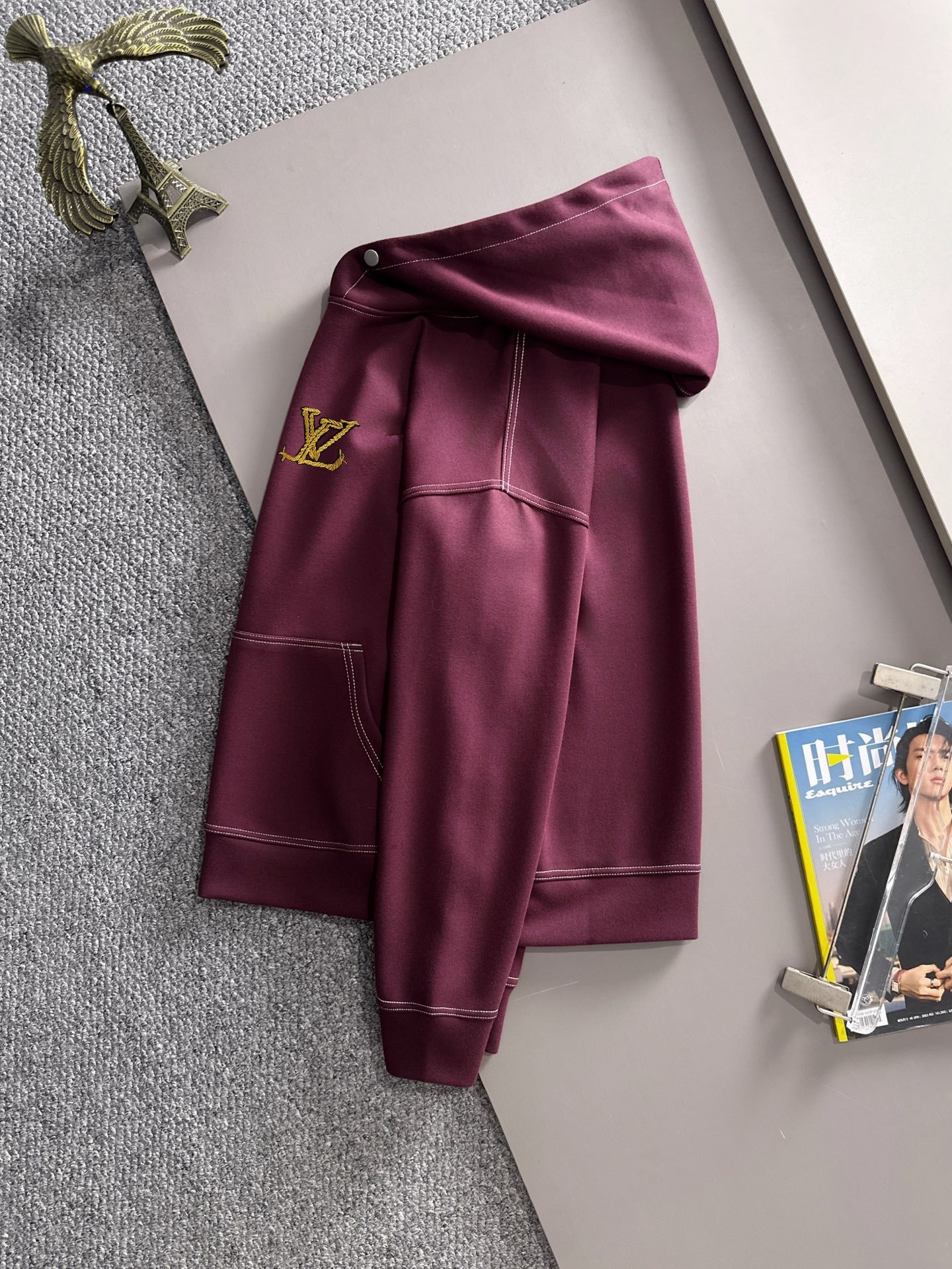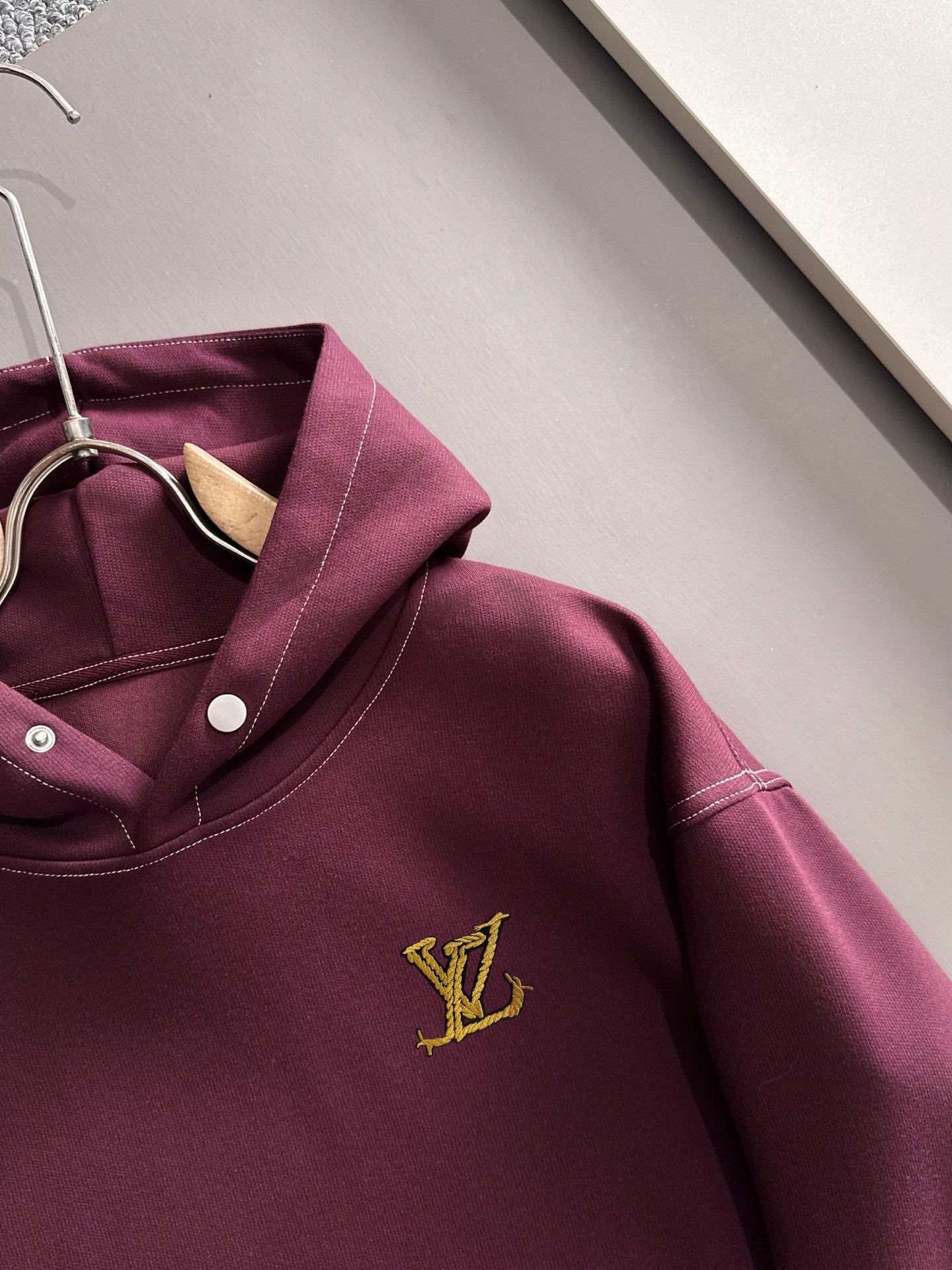 このボルドーのLOUIS VUITTONメンズパーカーは、定番デザインながらも、こだわりのディテールが光ります。