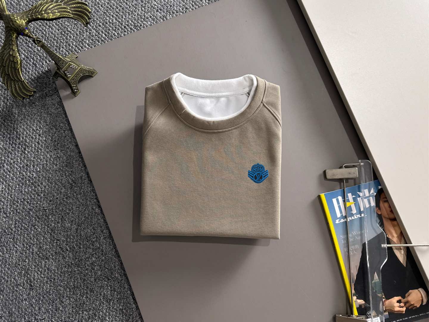 Louis Vuittonロエベ ロゴ刺繍 ブラウン 半袖 メンズスウェットシャツ 4色入