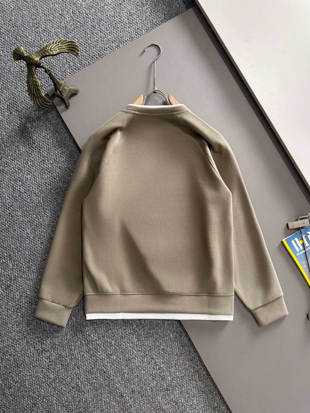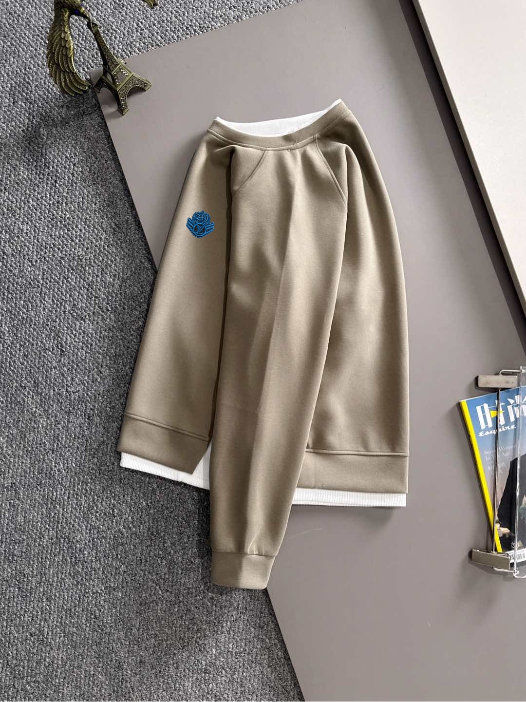 このブラウンのメンズスウェットシャツは、ロエベのロゴが胸元に鮮やかに刺繍された、シンプルながらも存在感のあるデザインです。柔らかな素材感と、裾と袖口に施された白いリブが、上品な印象をプラス。
