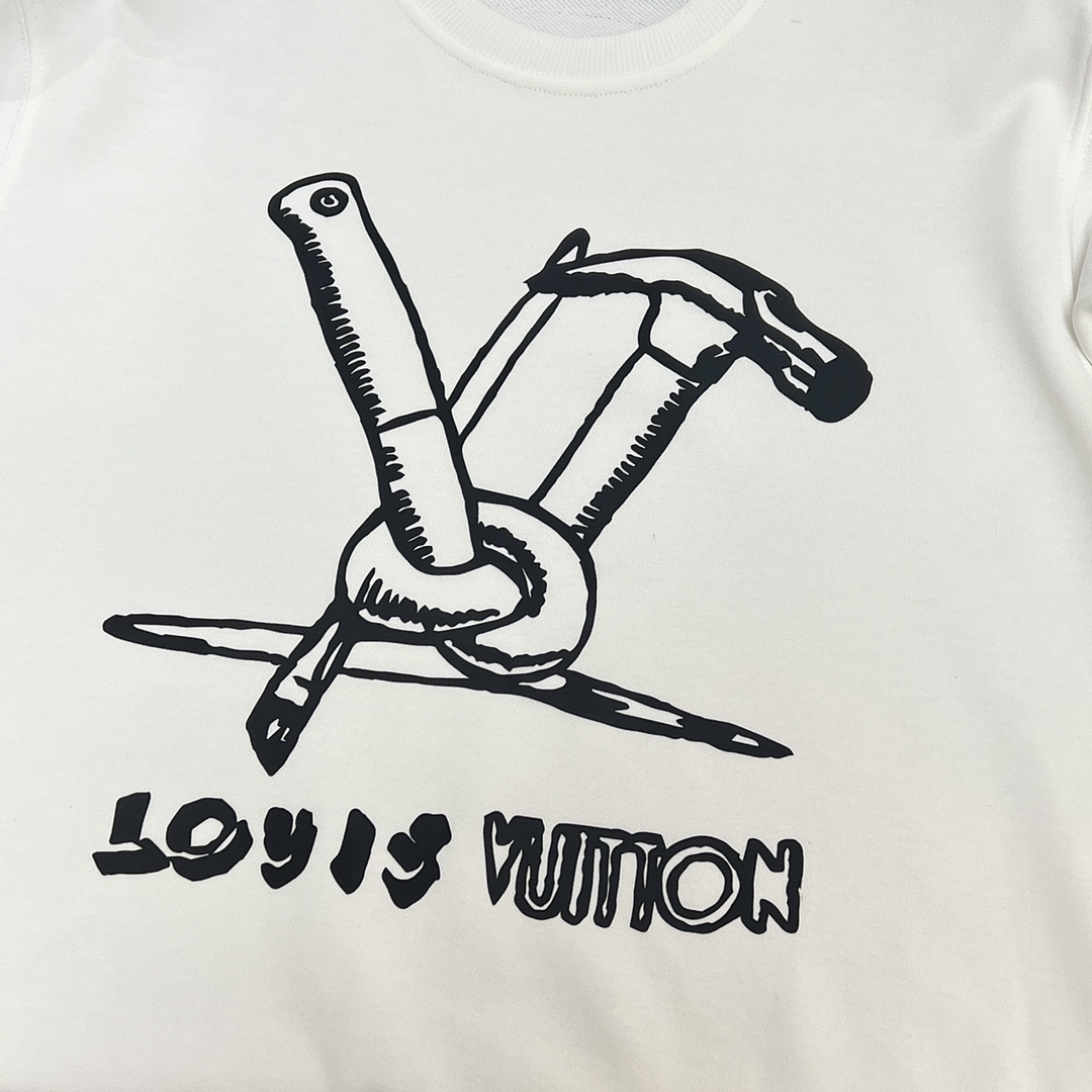 Louis Vuittonルイ・ヴィトン 半袖スウェットシャツ ホワイト 100%コットン 春夏着用可能