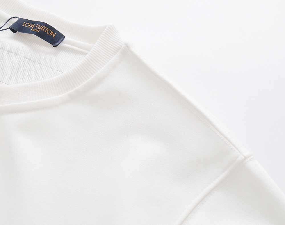このルイ・ヴィトンのホワイトスウェットシャツは、シンプルなデザインにブランドのモダンなロゴが映える一着です。