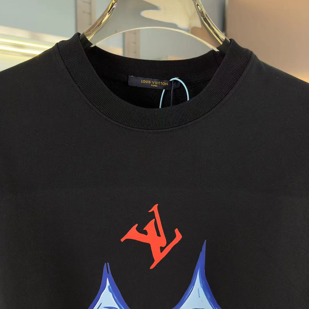 Louis Vuittonルイ・ヴィトン 黒 ニット ロゴプリント 半袖Tシャツ 1色