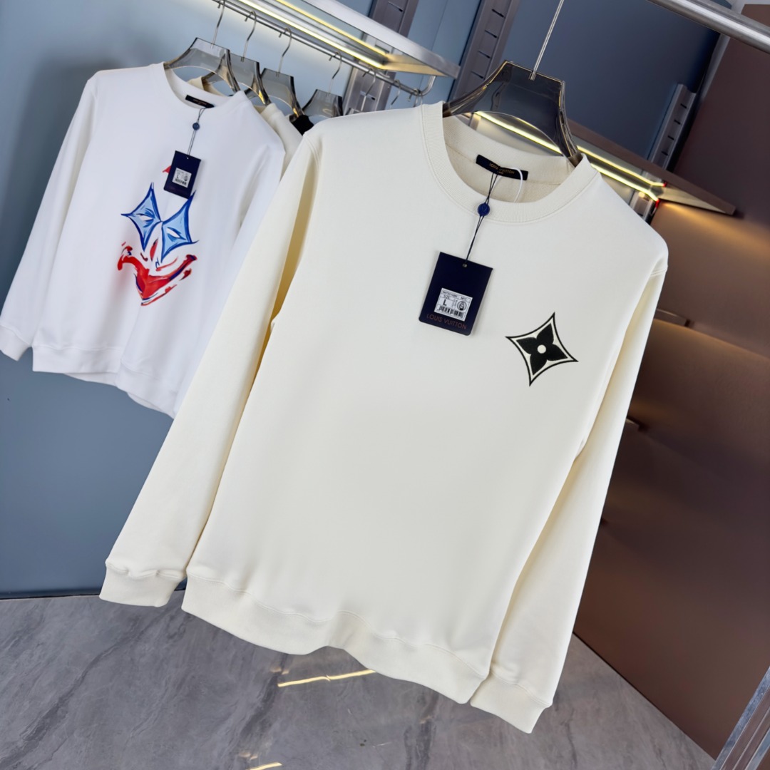 Louis Vuittonロエ Viking ロゴ フレッシュなカジュアルなオフホワイトのスウェットシャツ 2色入