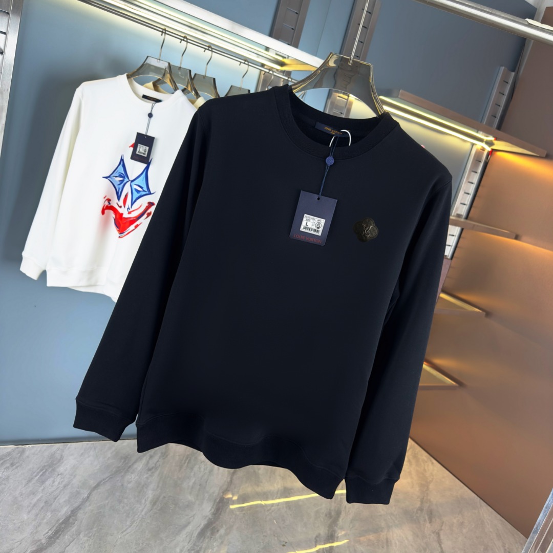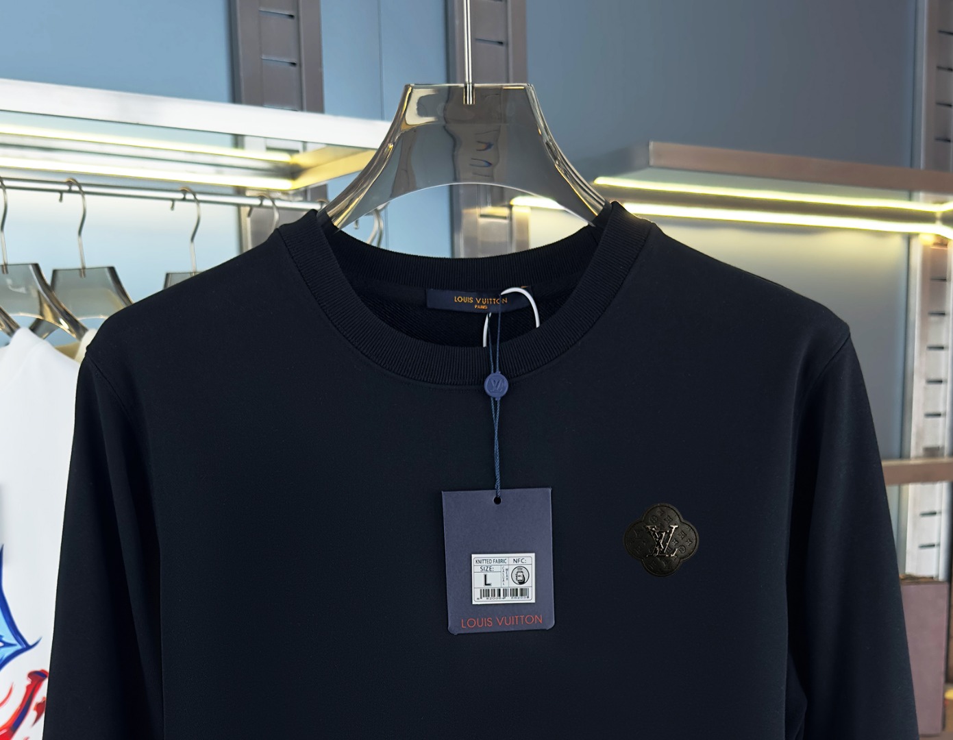 このルイ・ヴィトンのブラックスウェットシャツは、シンプルなデザインに洗練されたディテールが加わっています。胸元のロゴ刺繍がさりげなく、高級感を演出します。柔らかなニット素材で、肌触りも抜群です。