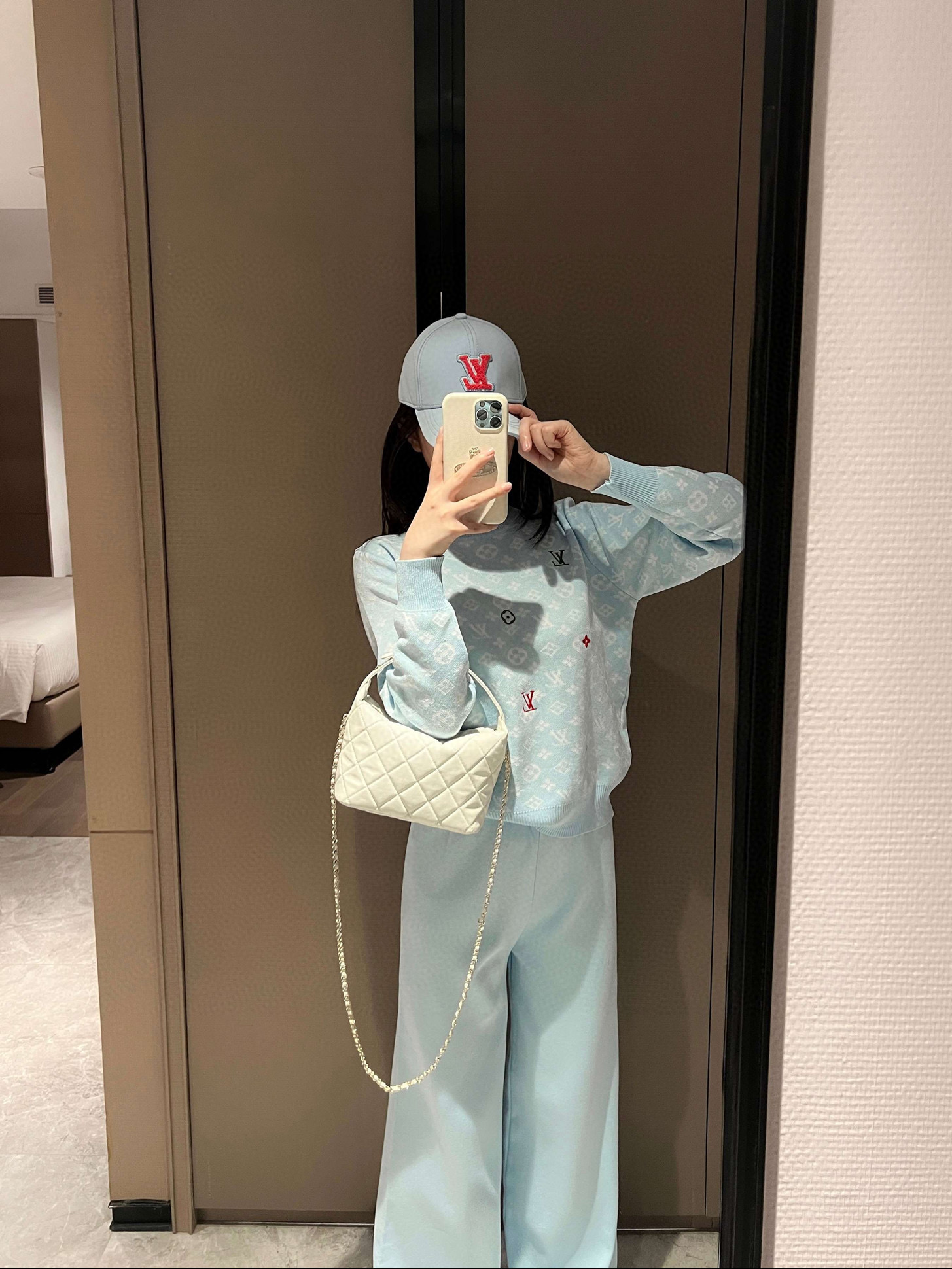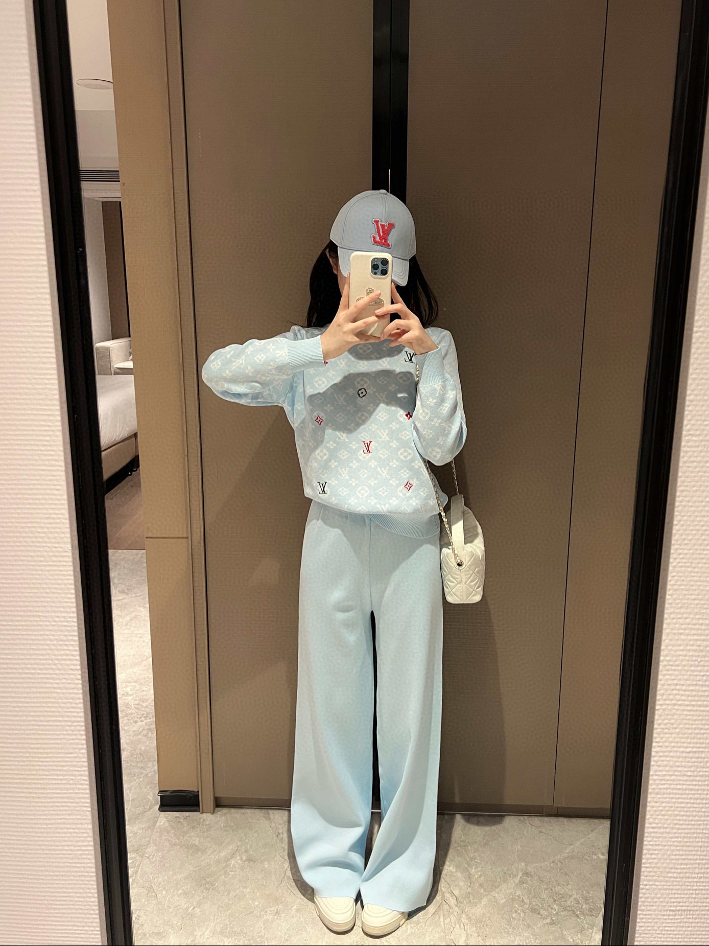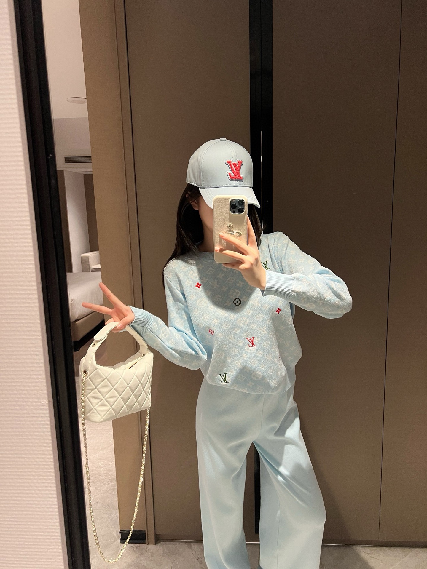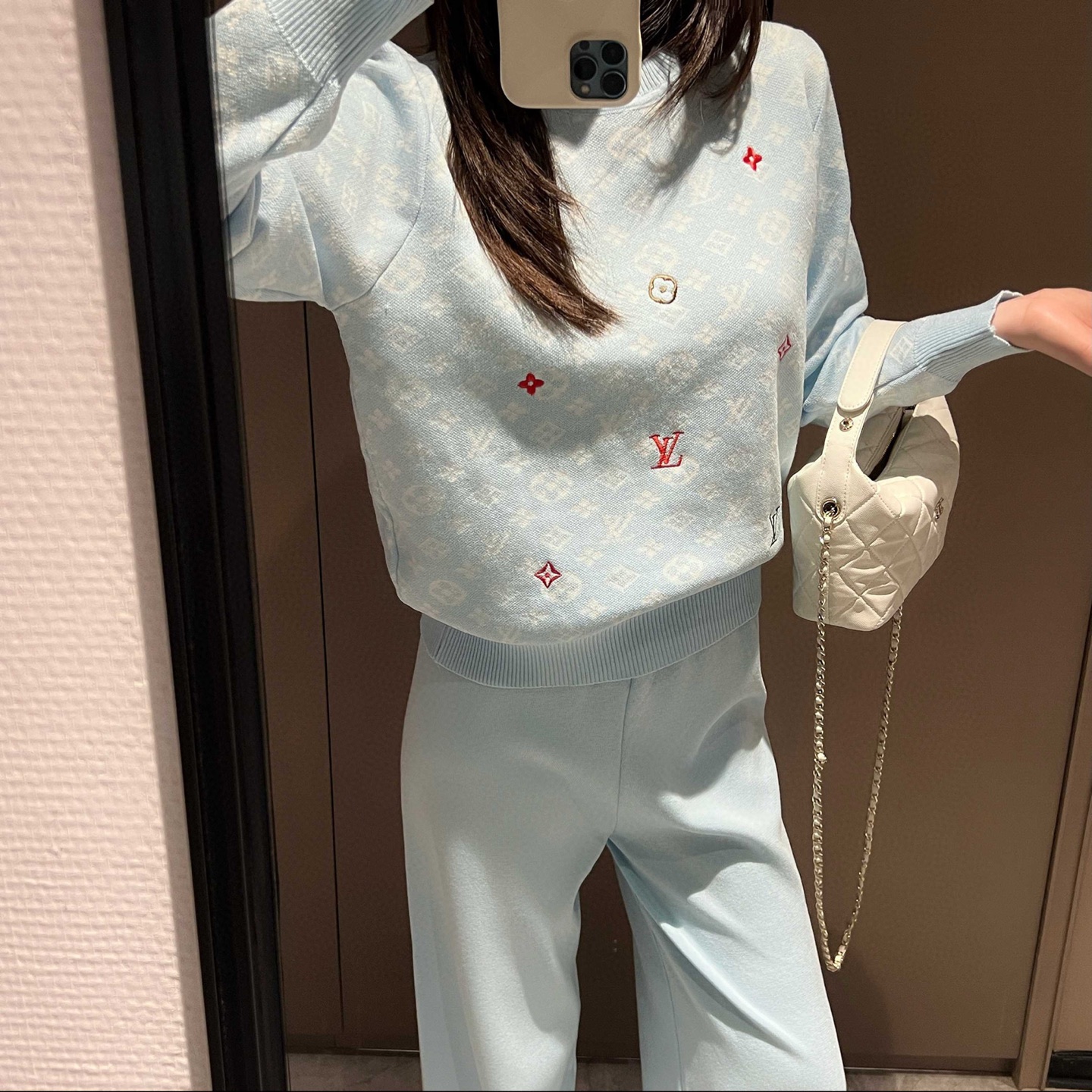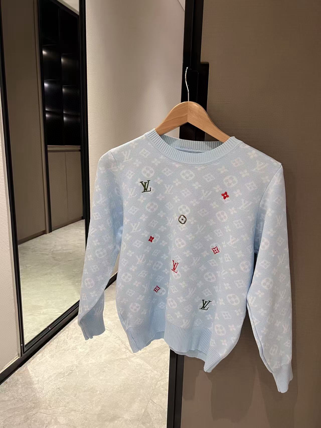 Louis Vuittonルイヴィトン レディース ニットセーター 浅藍色 モノグラム刺繍 3色入