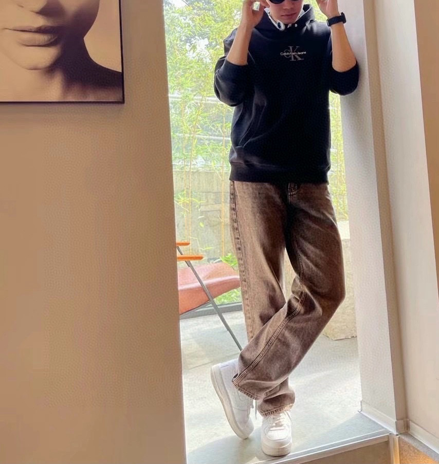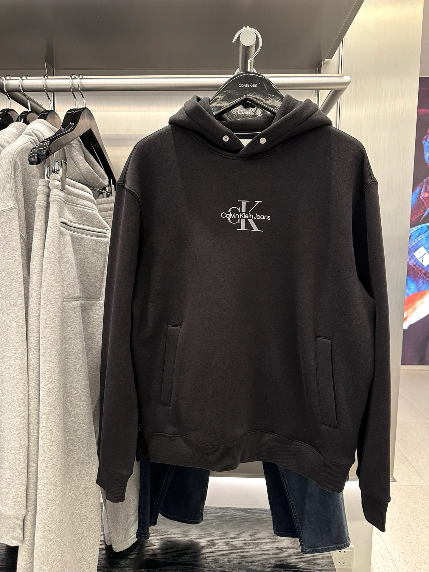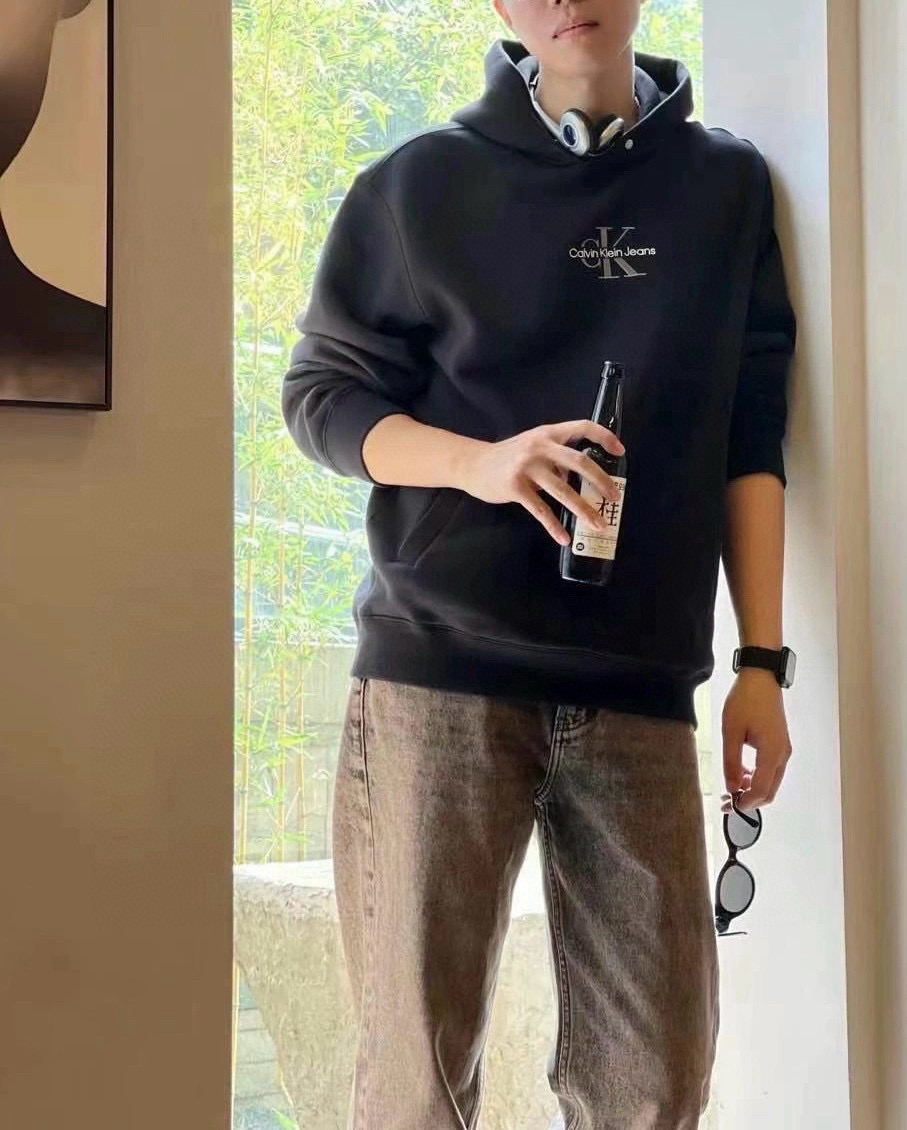 Louis Vuittonカルバンクライン オーバーサイズ マイクロロゴ フード付きスウェットシャツ 黒 1色入