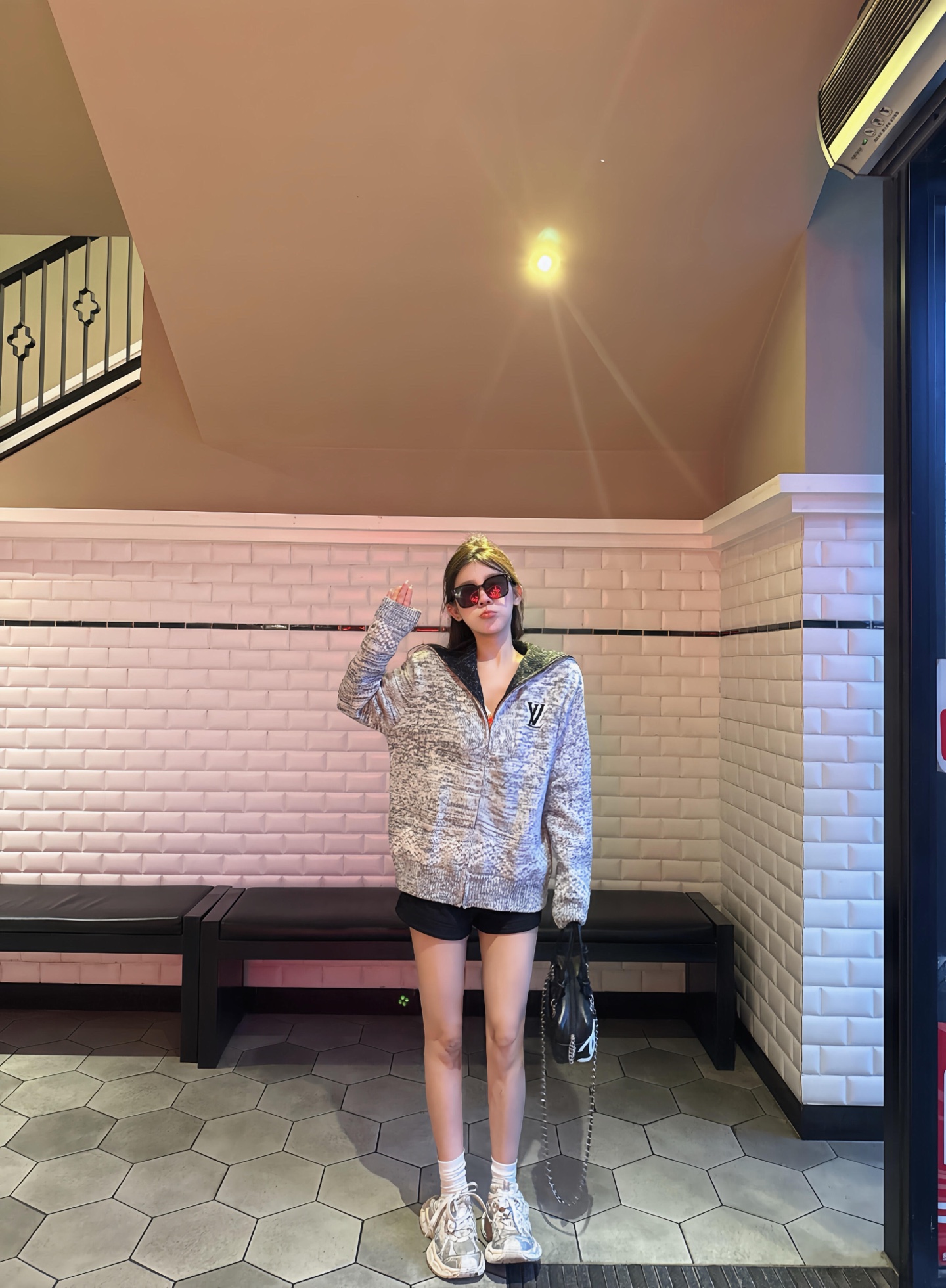 Louis Vuittonルイヴィトン フード付きニットジャケット メンズ レディース シルバー 2色展開