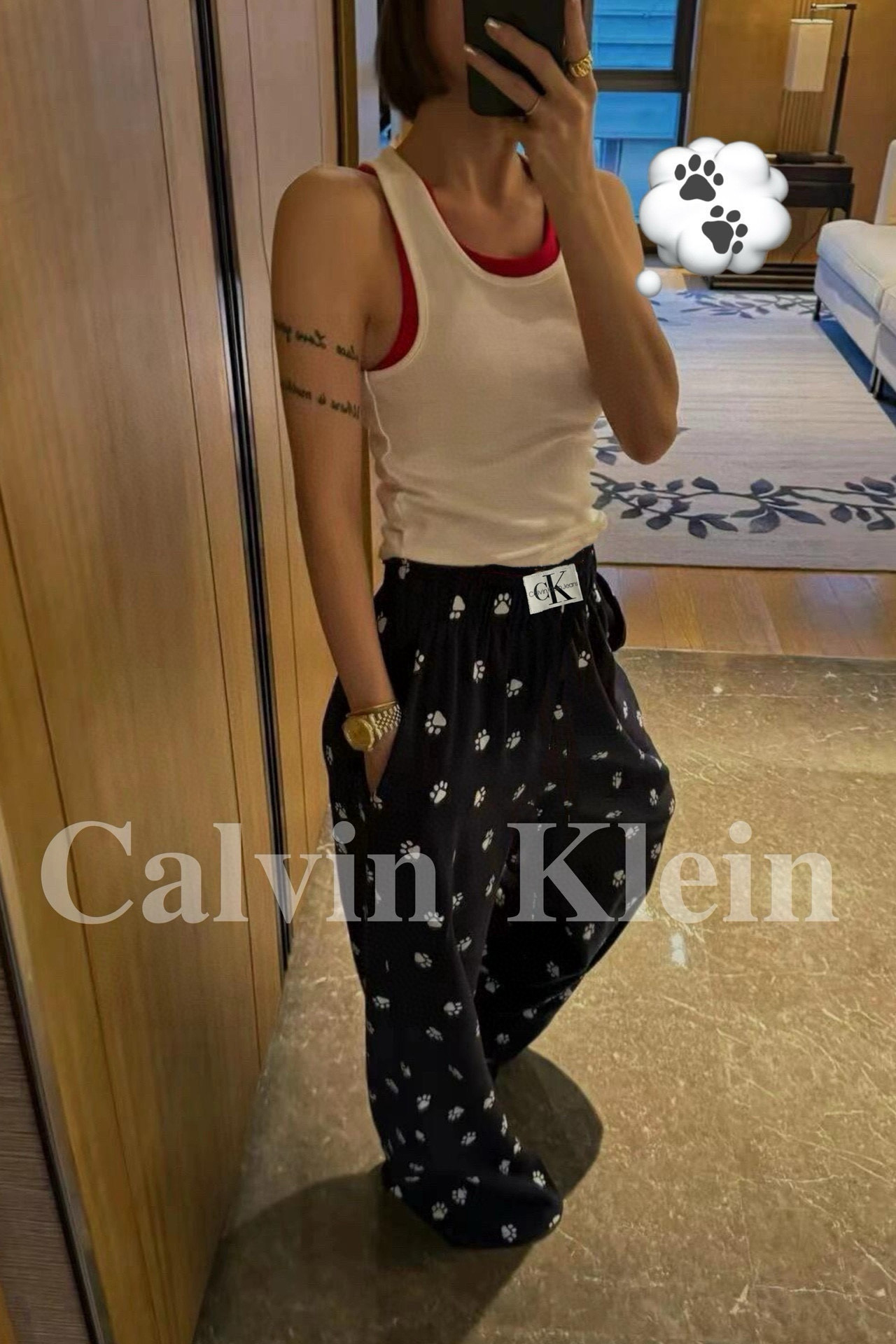 Louis Vuittonカルバンクライン レディース パンツ 黒 ペットフレンドリー柄 4色入
