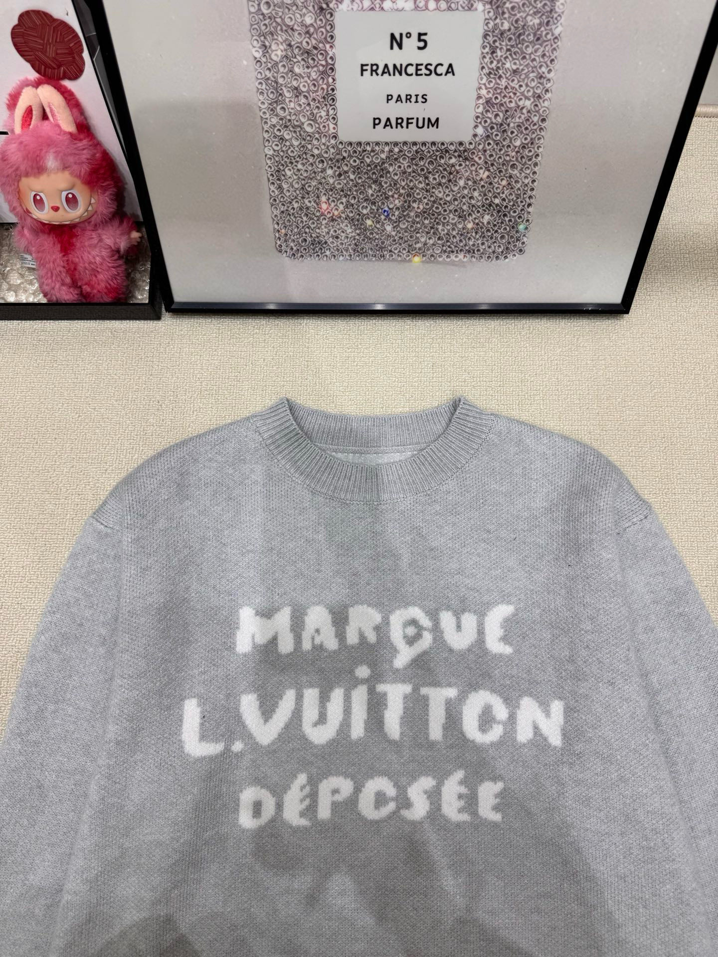 Louis Vuittonルイ・ヴィトン レディース スウェットシャツ ホワイト文字 ミディアムグレー