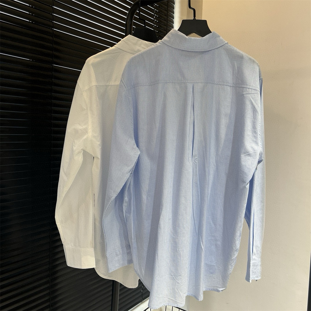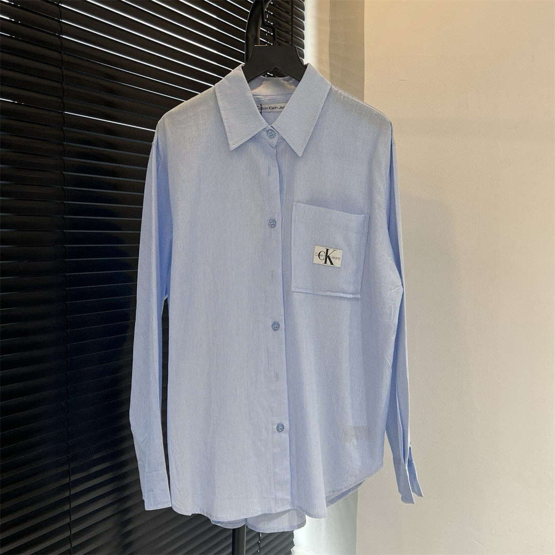 この商品は、カジュアルな着こなしに最適な、ルーズフィットのストライプシャツです。淡いブルーとホワイトの繊細なストライプが、清潔感と爽やかさを演出します。素材は柔らかく、肌触りが良く、長時間着用しても快適です。胸元の「CK」ロゴが、ブランドのアイデンティティを強調しています。オフィスやデート、週末のラフなスタイルにもマッチし、様なシーンで活躍します。ご注文いただければ、すぐにご自宅へお届けいたします。