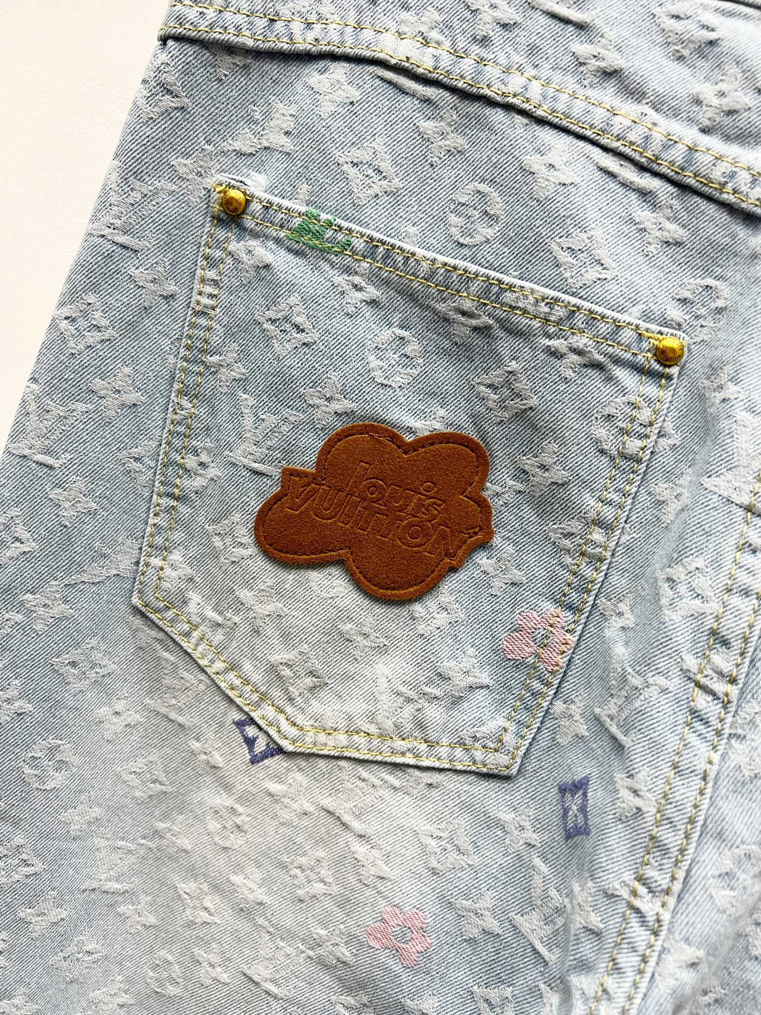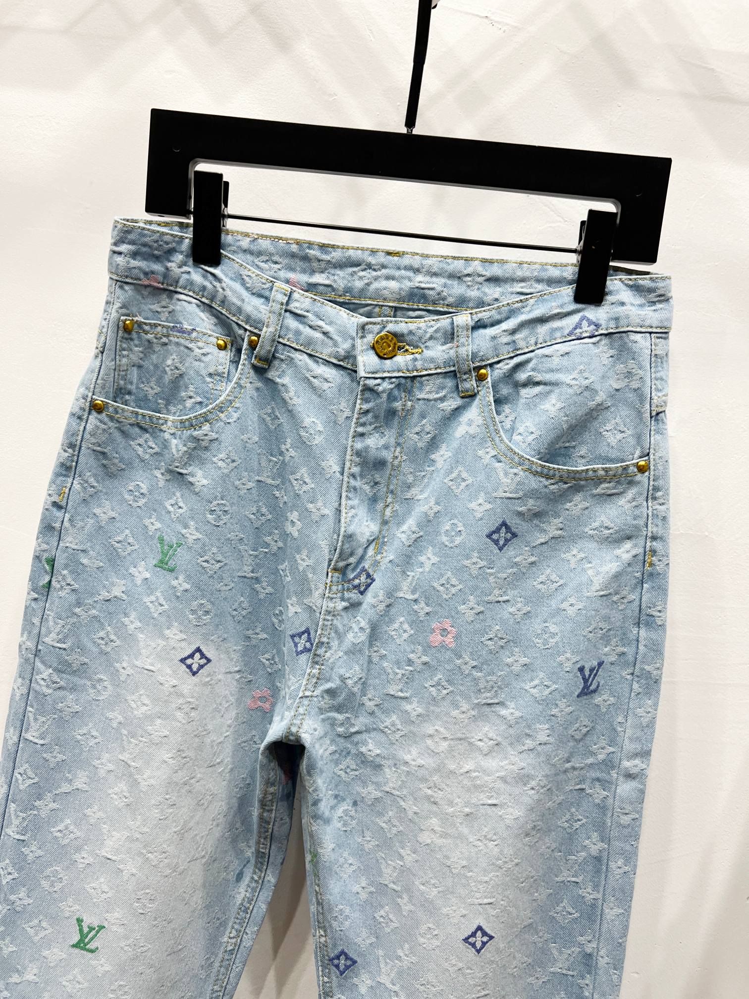 Louis VuittonLOUIS VUITTON デニムパンツ ミニロゴ刺繍 ハイウエスト 4色選べる