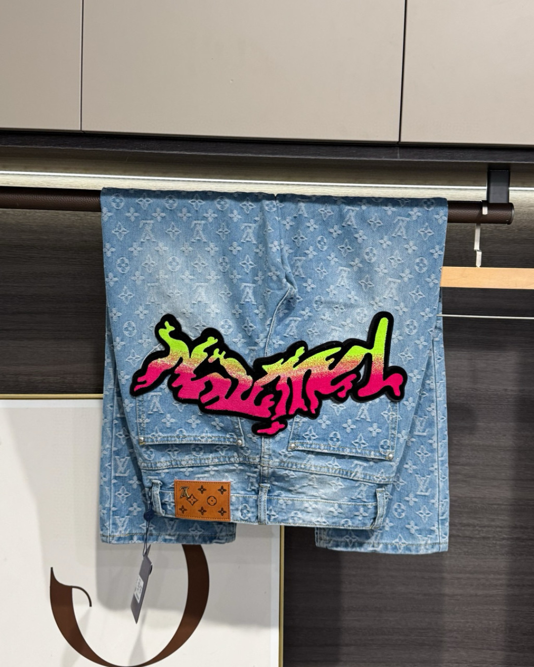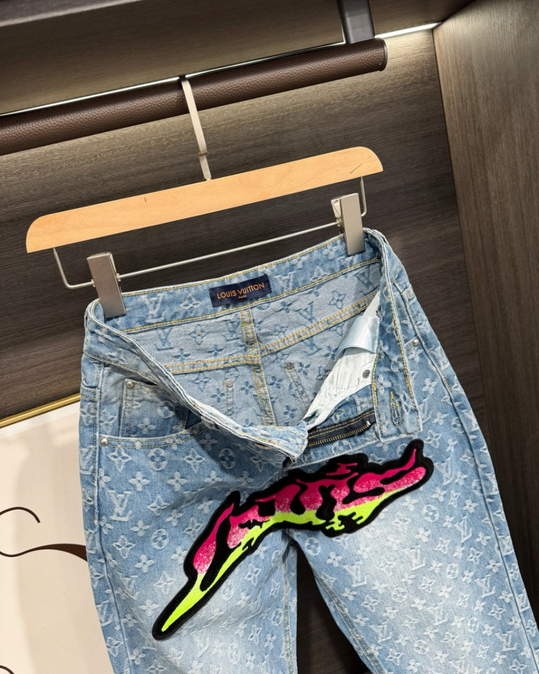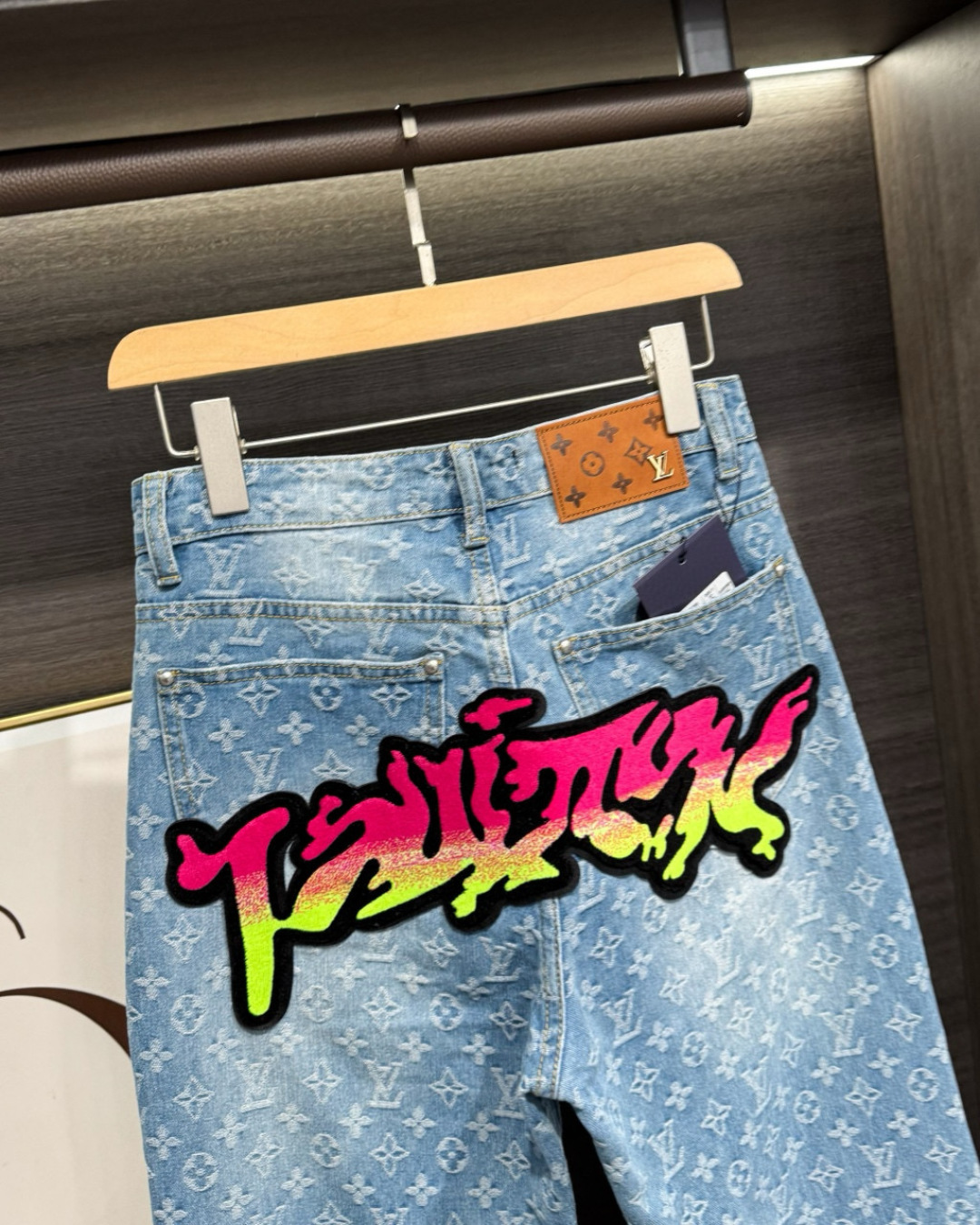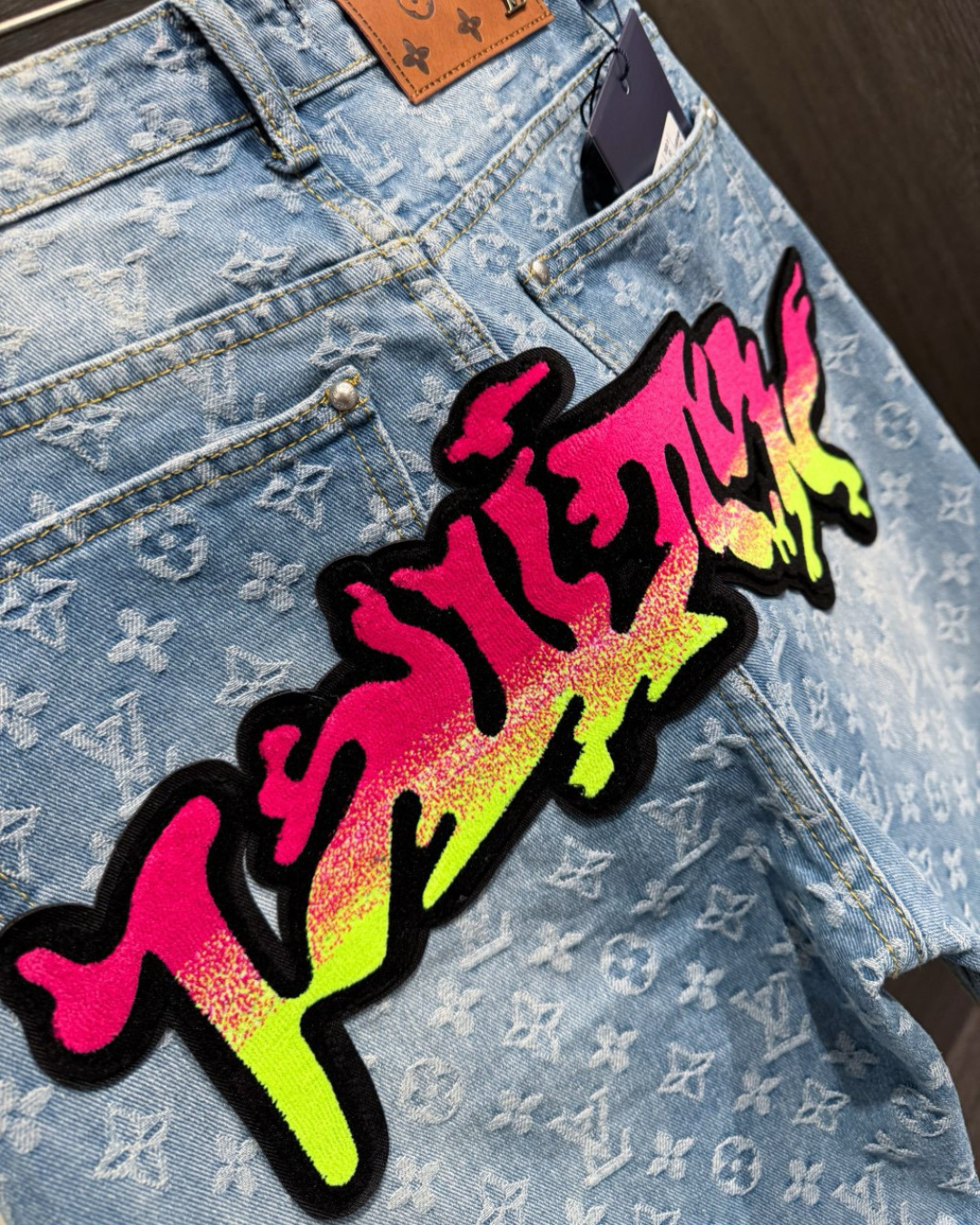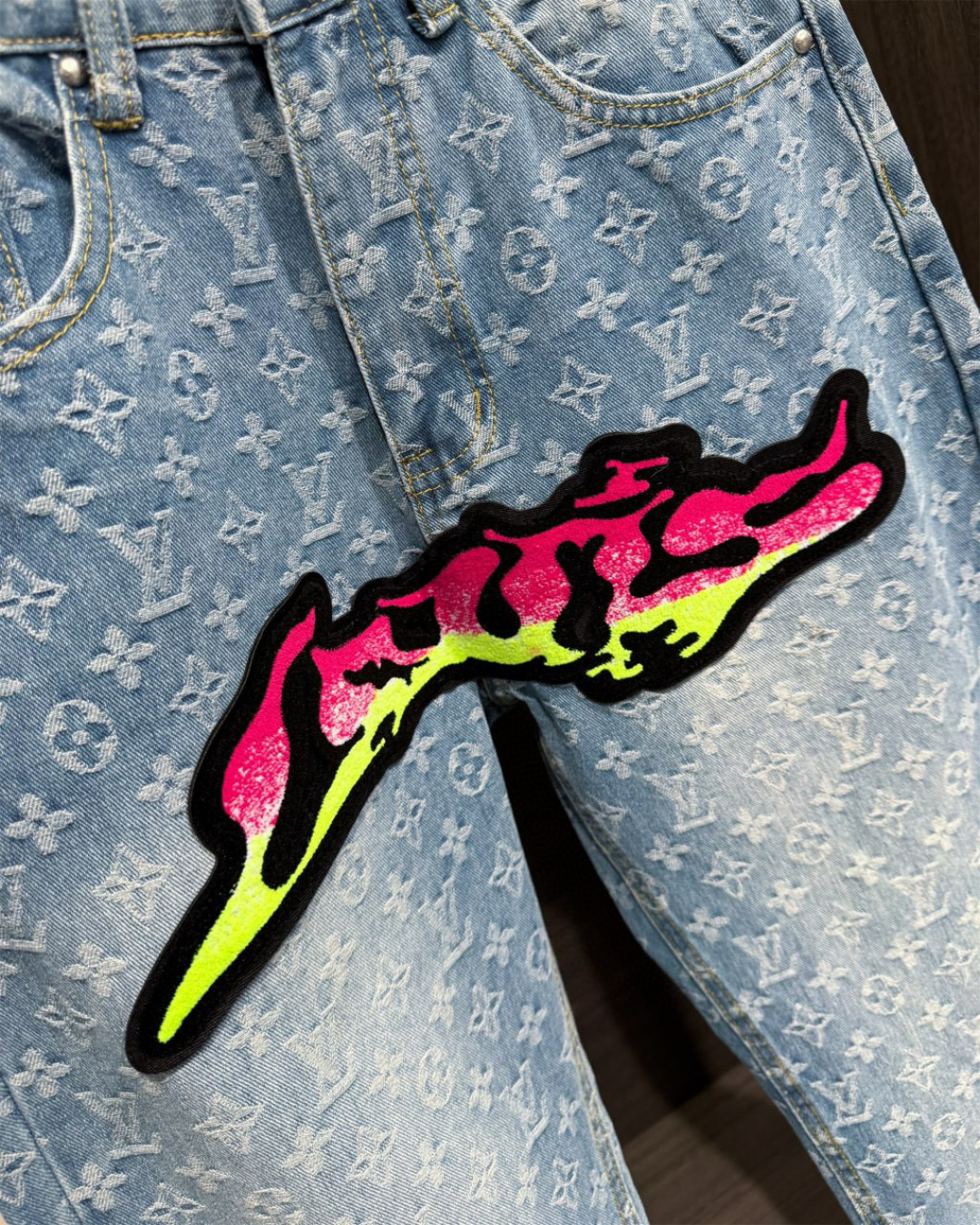 Louis Vuittonルイヴィトン デニムパンツ フラットフロア フロントとバックにグラフィック刺繍 1色
