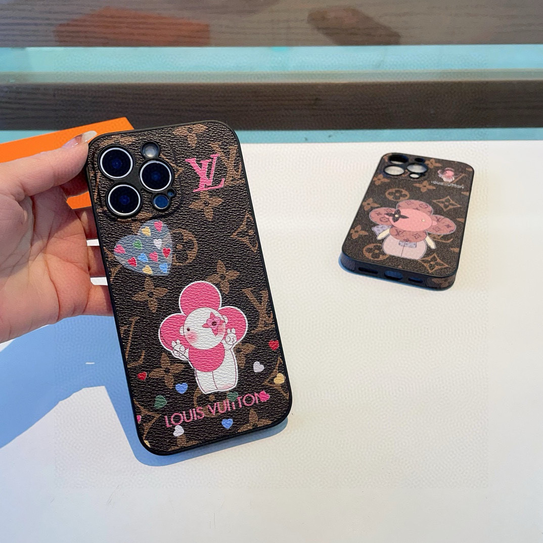 このiPhoneケースは、ルイ・ヴィトンの定番モノグラム柄をベースに、可愛らしいキャラクターとハートのデザインが施された、ファッション性と実用性を兼ね備えたアイテムです。表面は高級感のあるレザー調素材で、耐久性と滑り止め効果を実現。キャラクターとハートのデザインは、鮮やかなピンクやブルー、グリーンなど、カラフルな配色で、普段使いのスマートフォンを一気にスタイリッシュに変身させます。