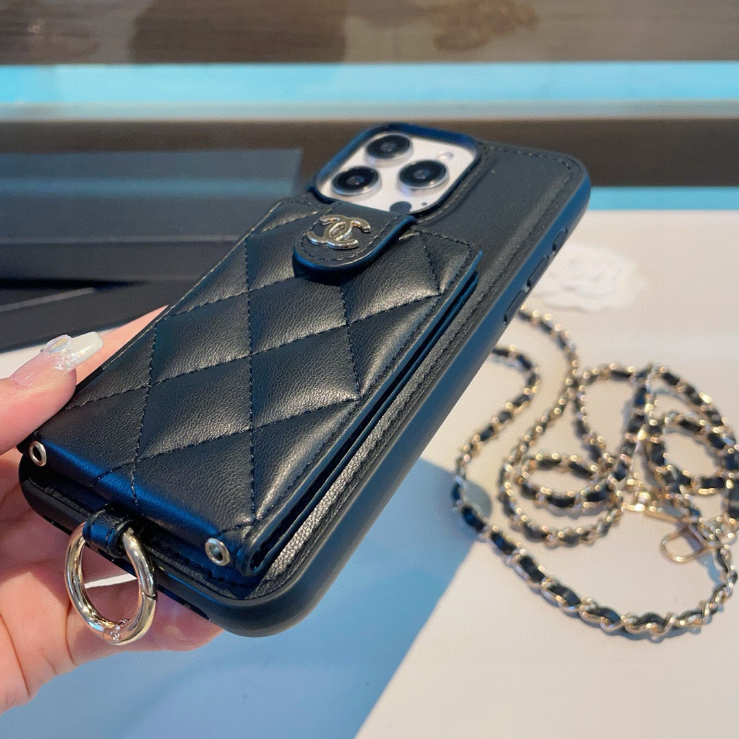 iPhoneケースシャネル風 チェーン付きスマホケース 2色入 🖤✨