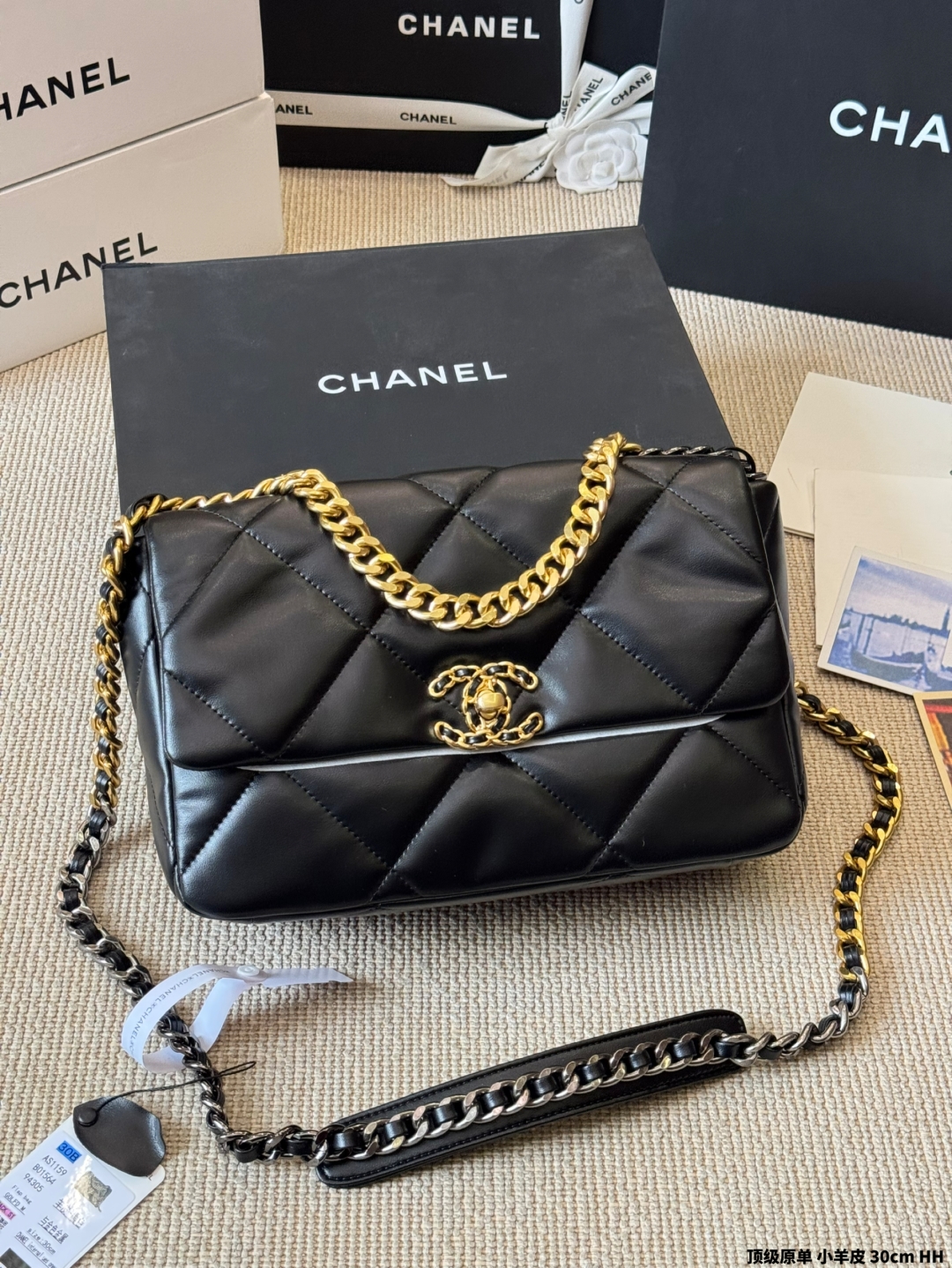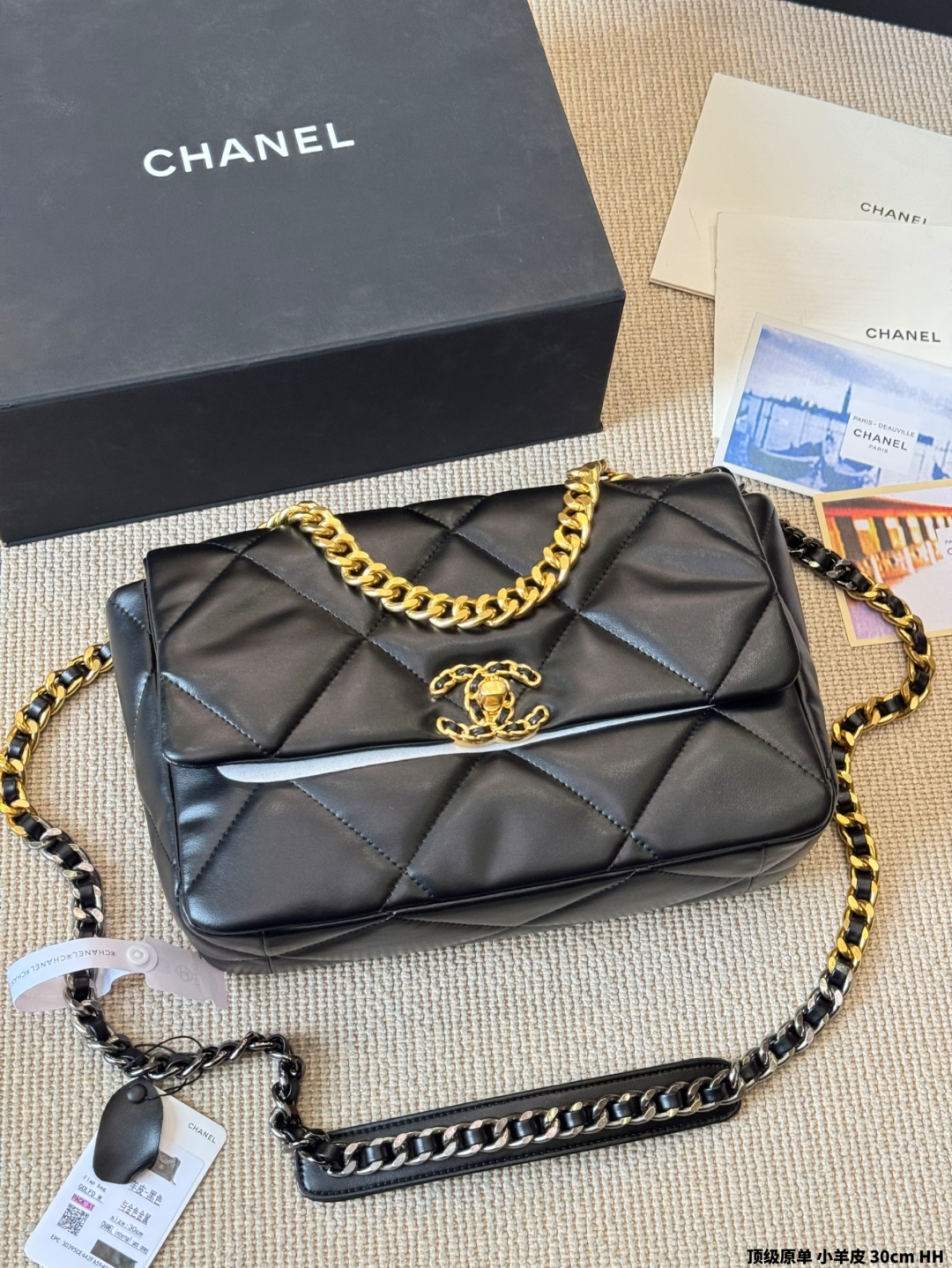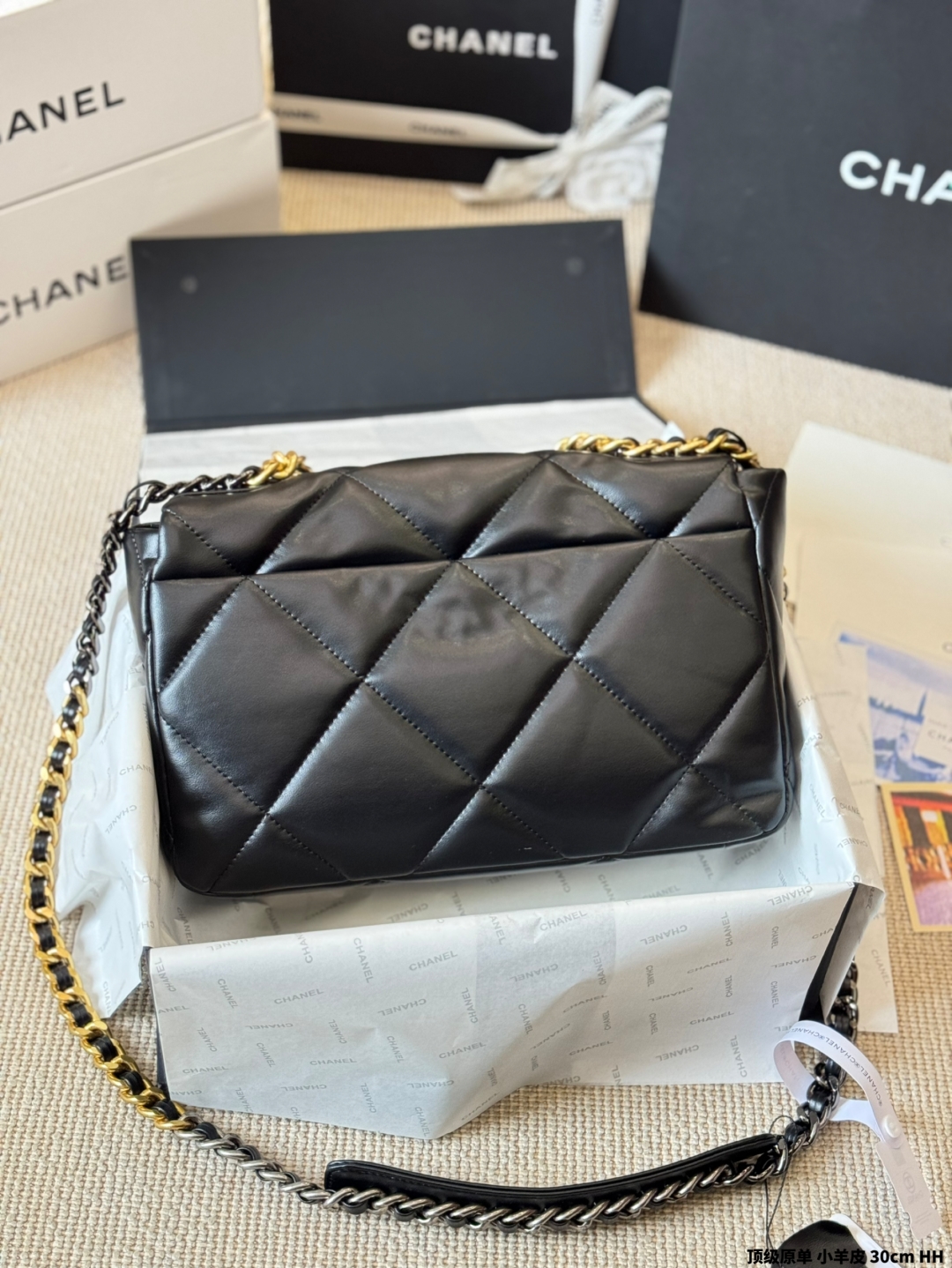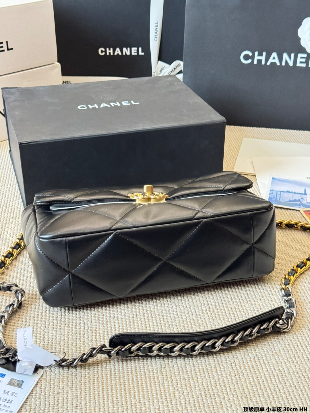 シャネル 19bag レディース ブラック 30cm シルバーファスナー 1色