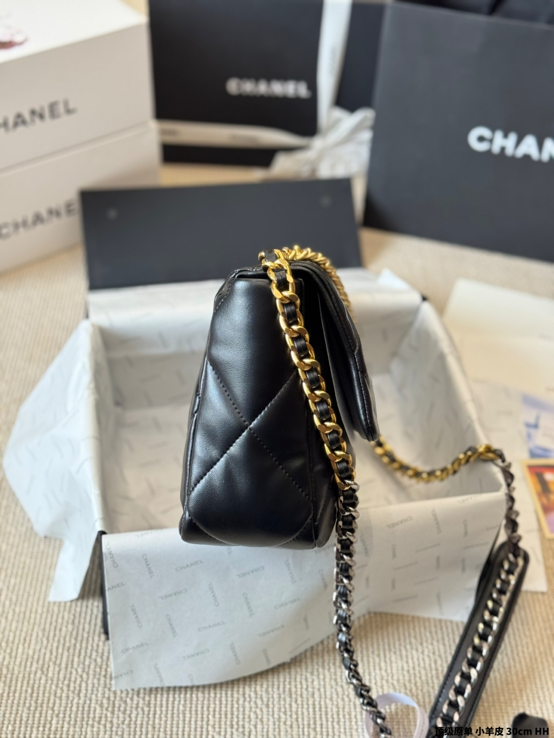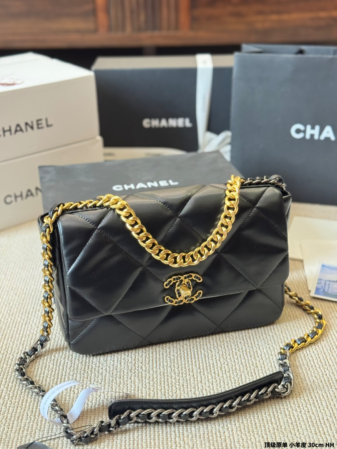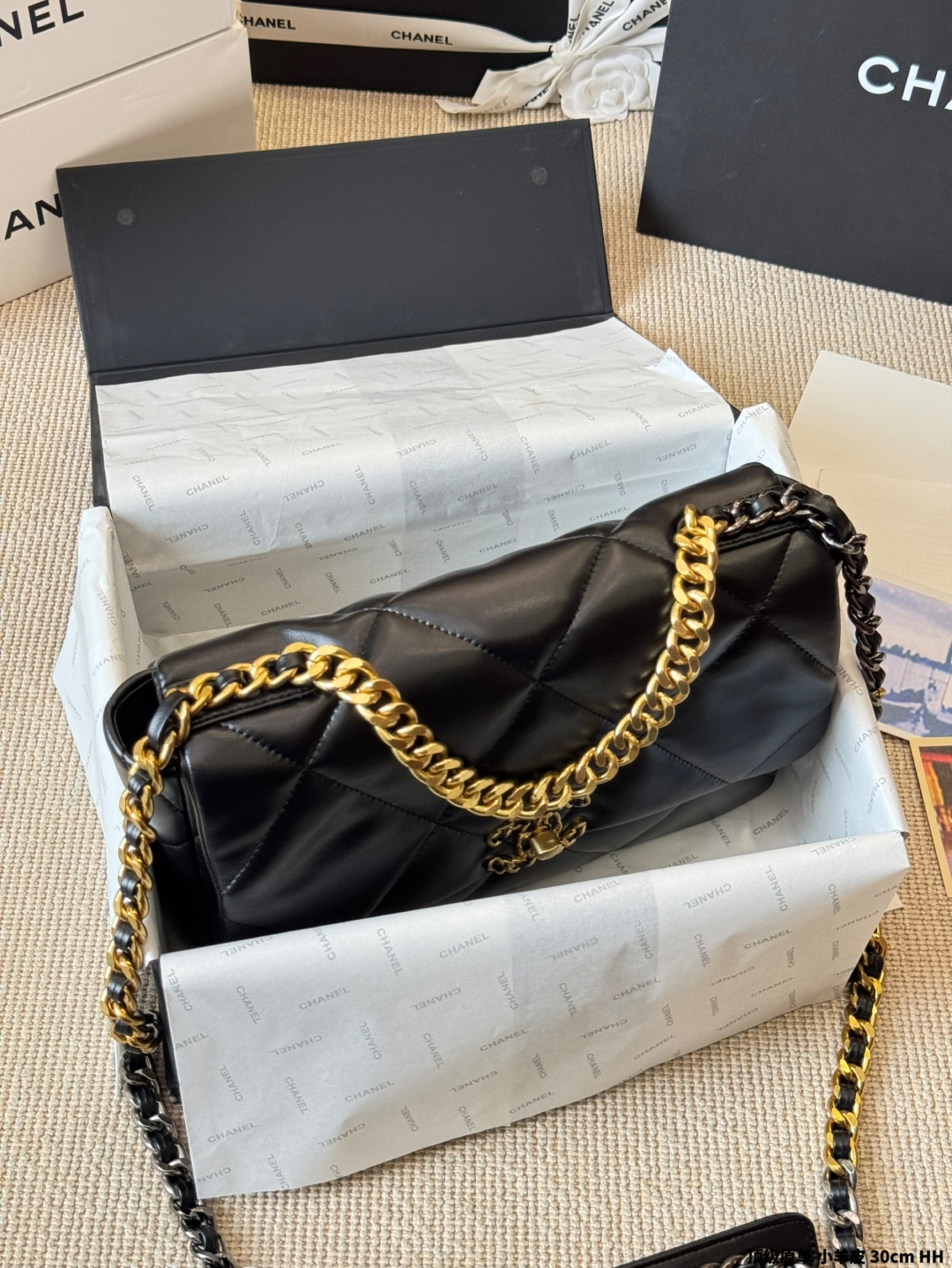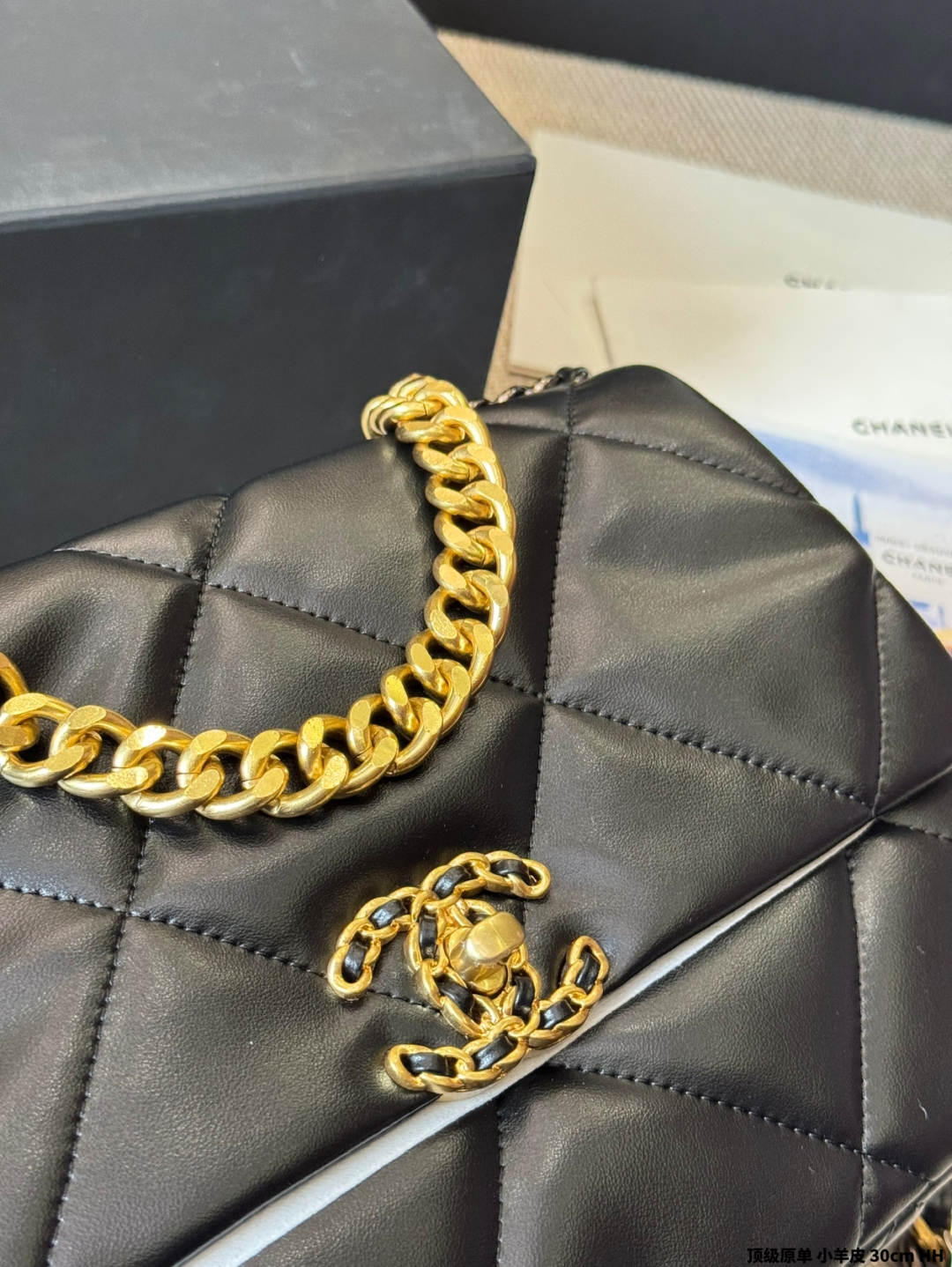 シャネル 19bag レディース ブラック 30cm シルバーファスナー 1色
