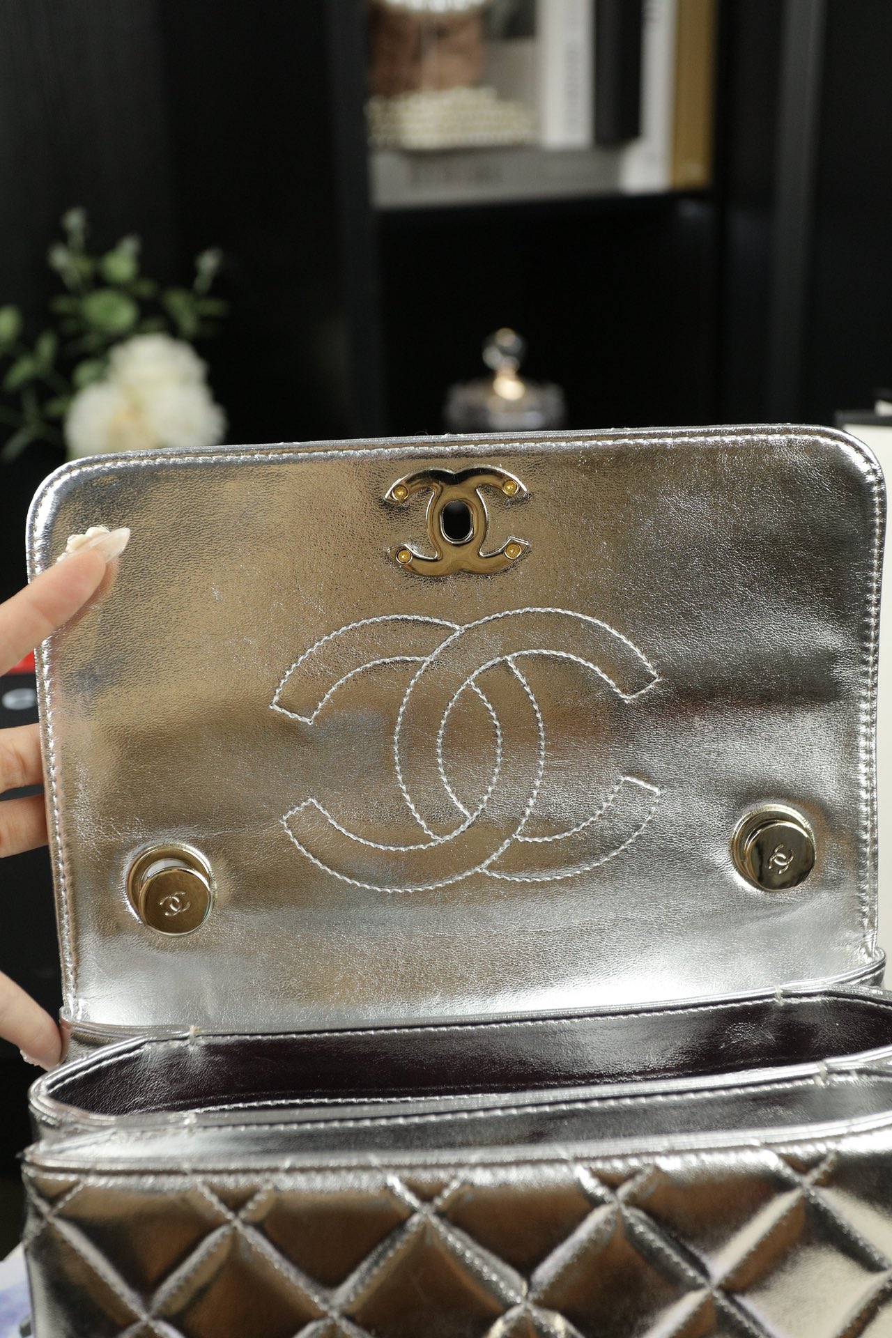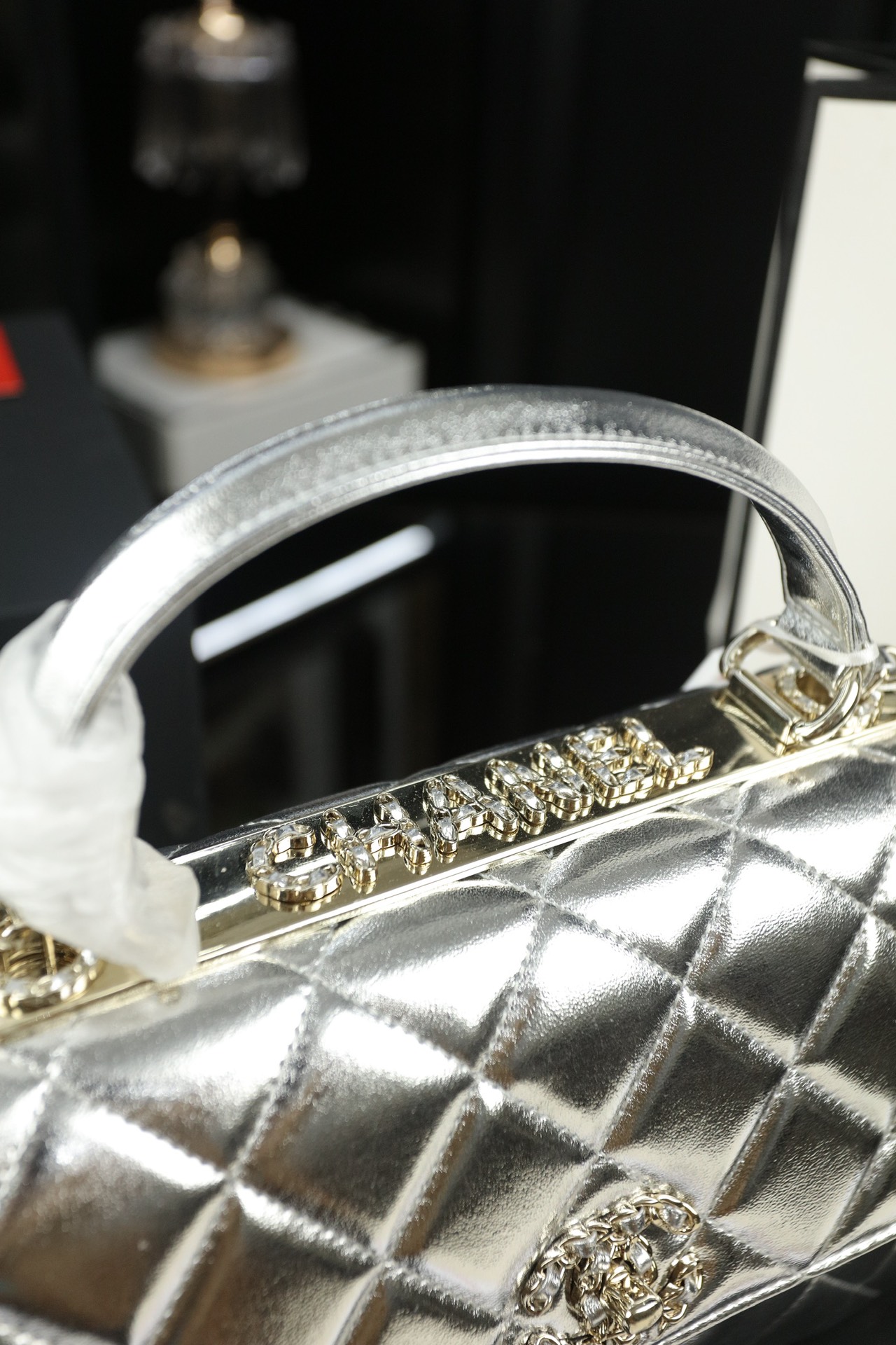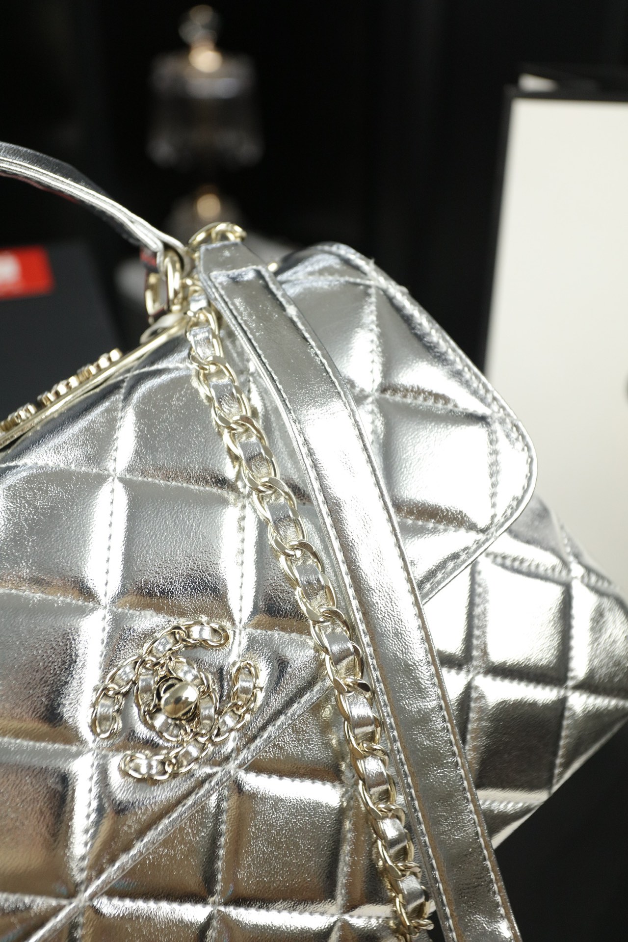 CHANEL デミ キャンバス ミニハンドバッグ ✨シルバー 25×19cm