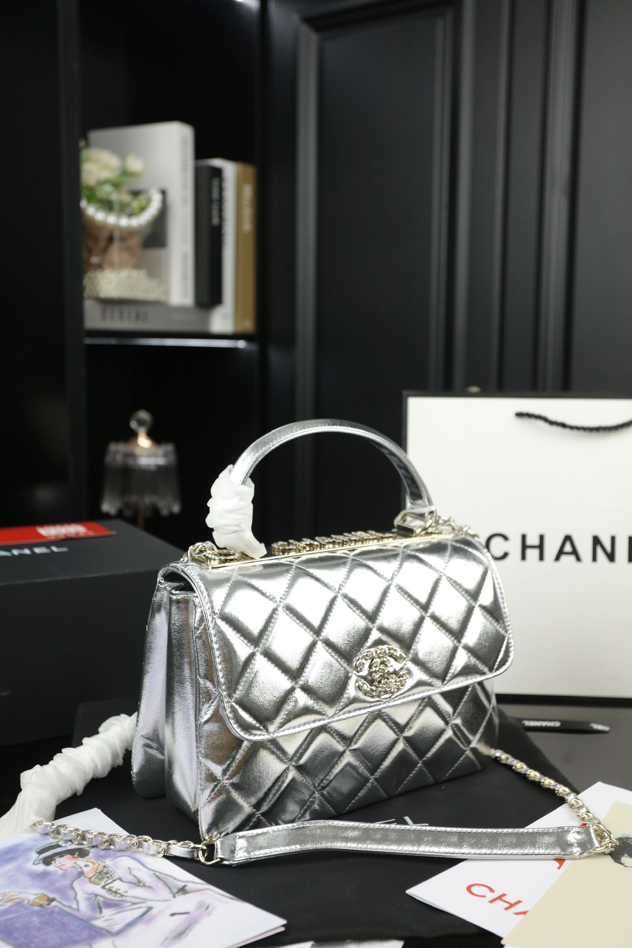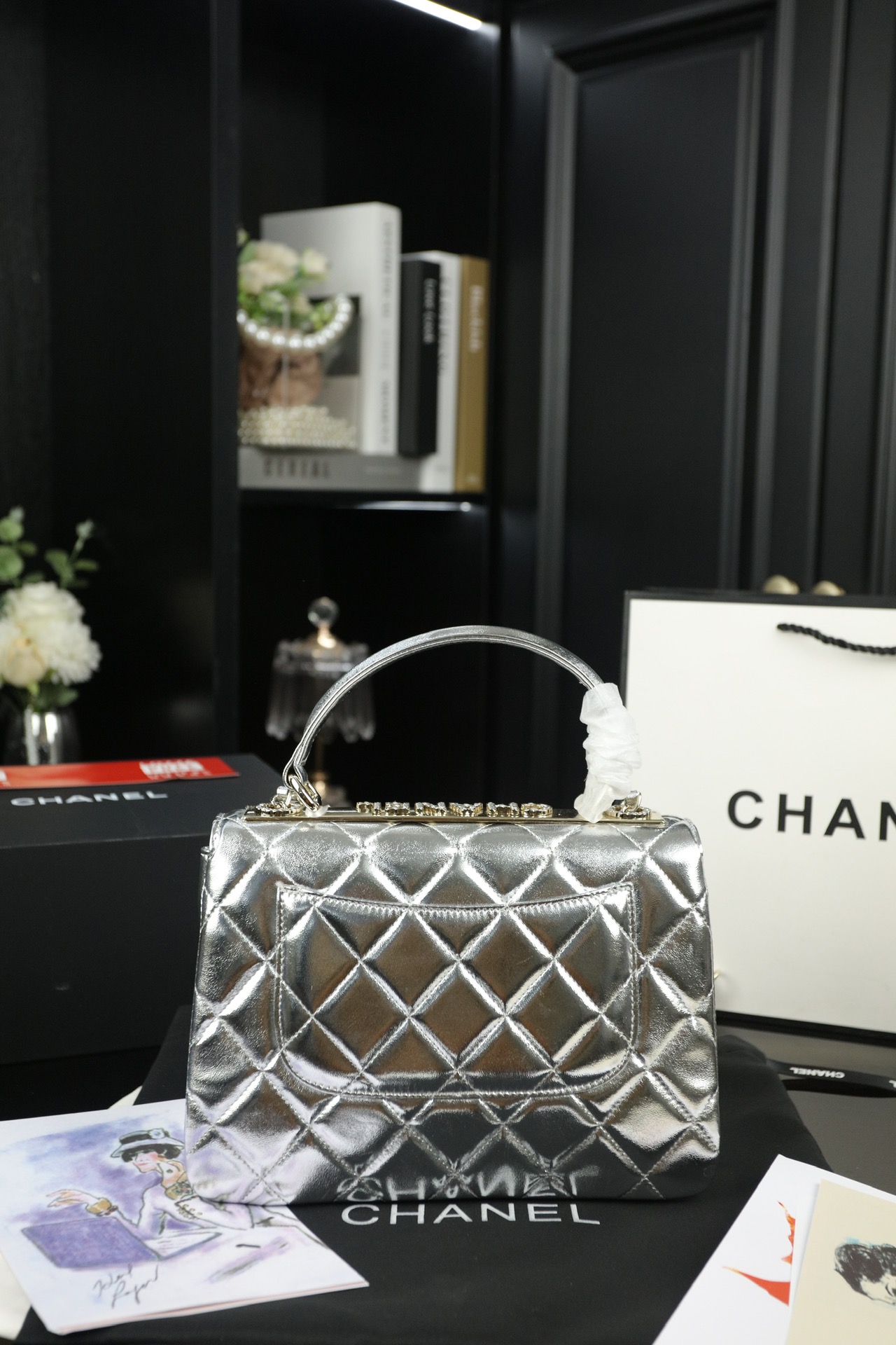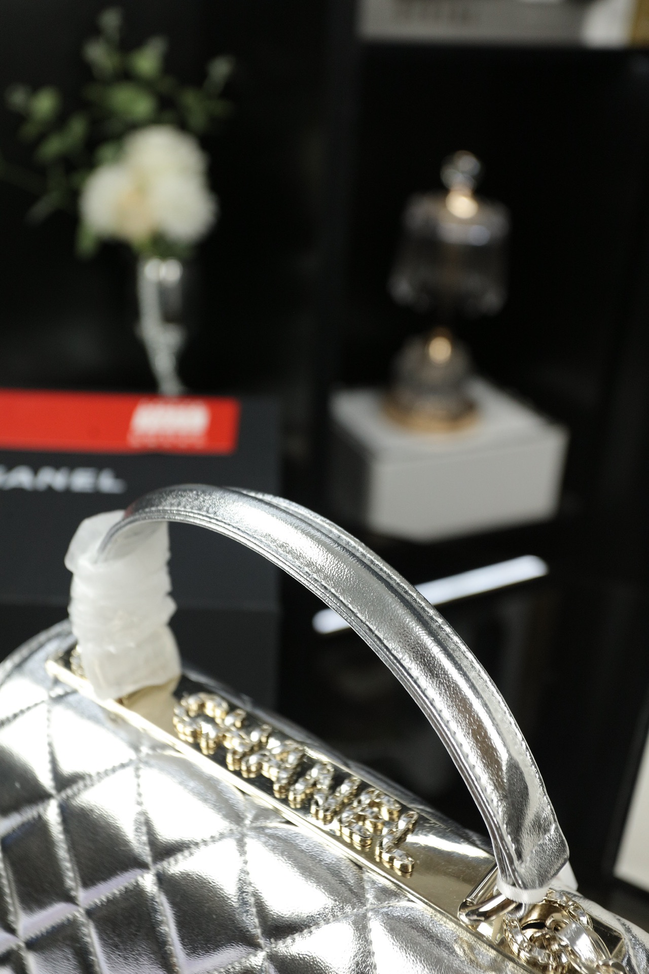 CHANEL デミ キャンバス ミニハンドバッグ ✨シルバー 25×19cm