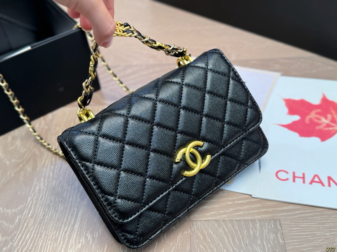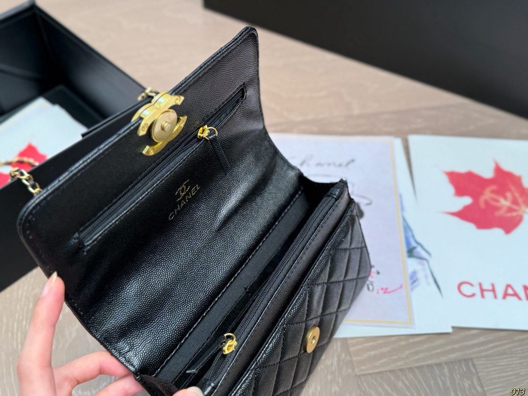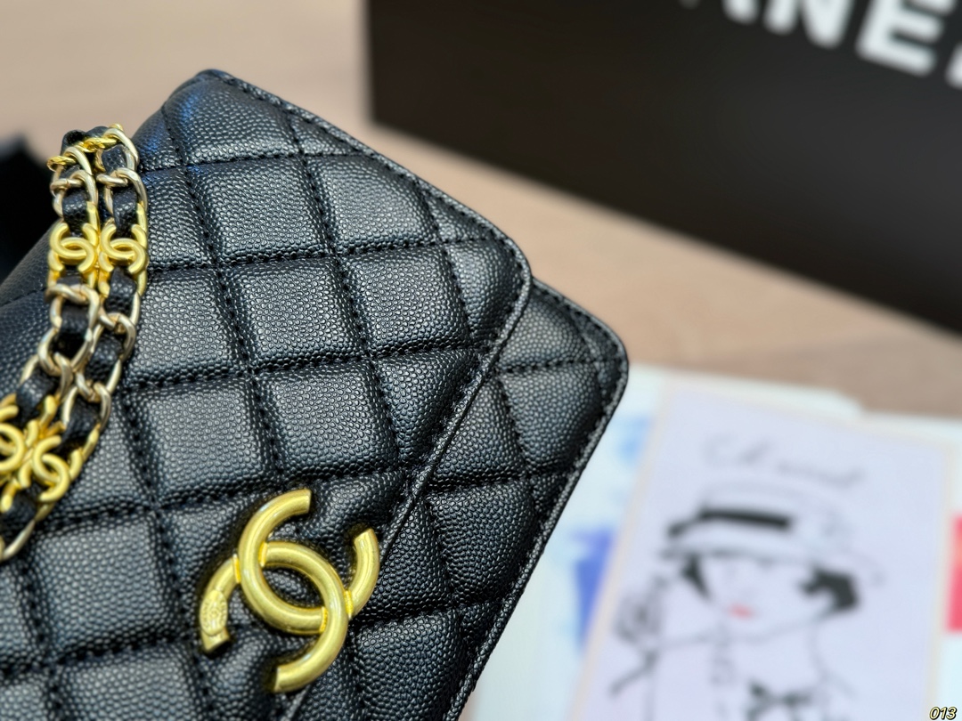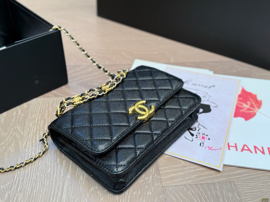 ゴールドのCCロゴとチェーンが、エレガントさを引き立てます。
