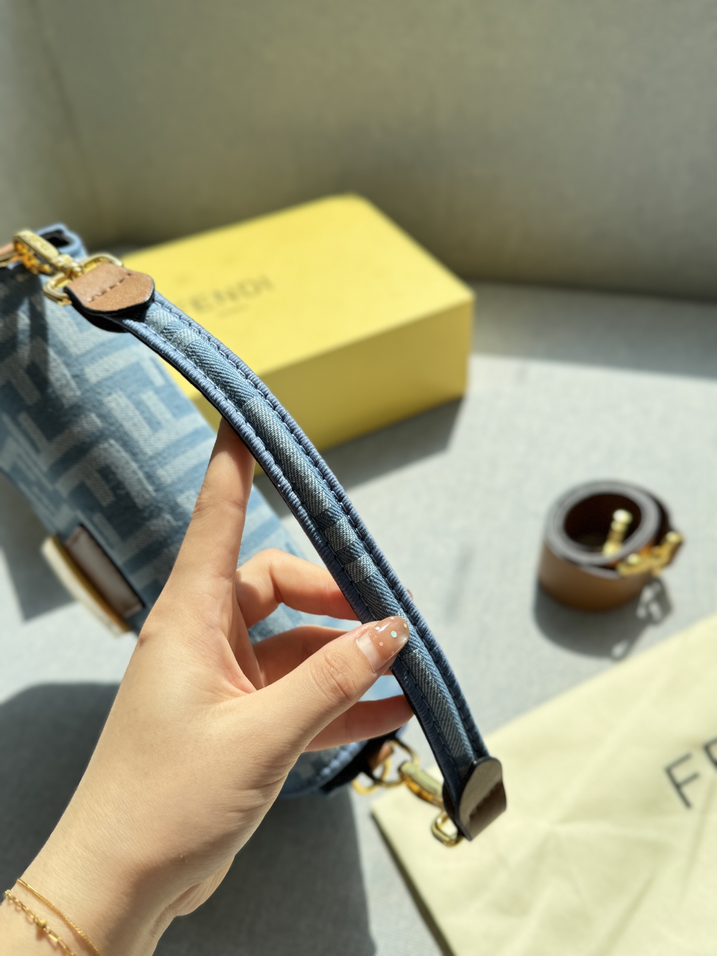 このバッグは、FENDIのクラシックなデザインと現代的なブルーの組み合わせが特徴で、一目でわかる高級感が魅力。