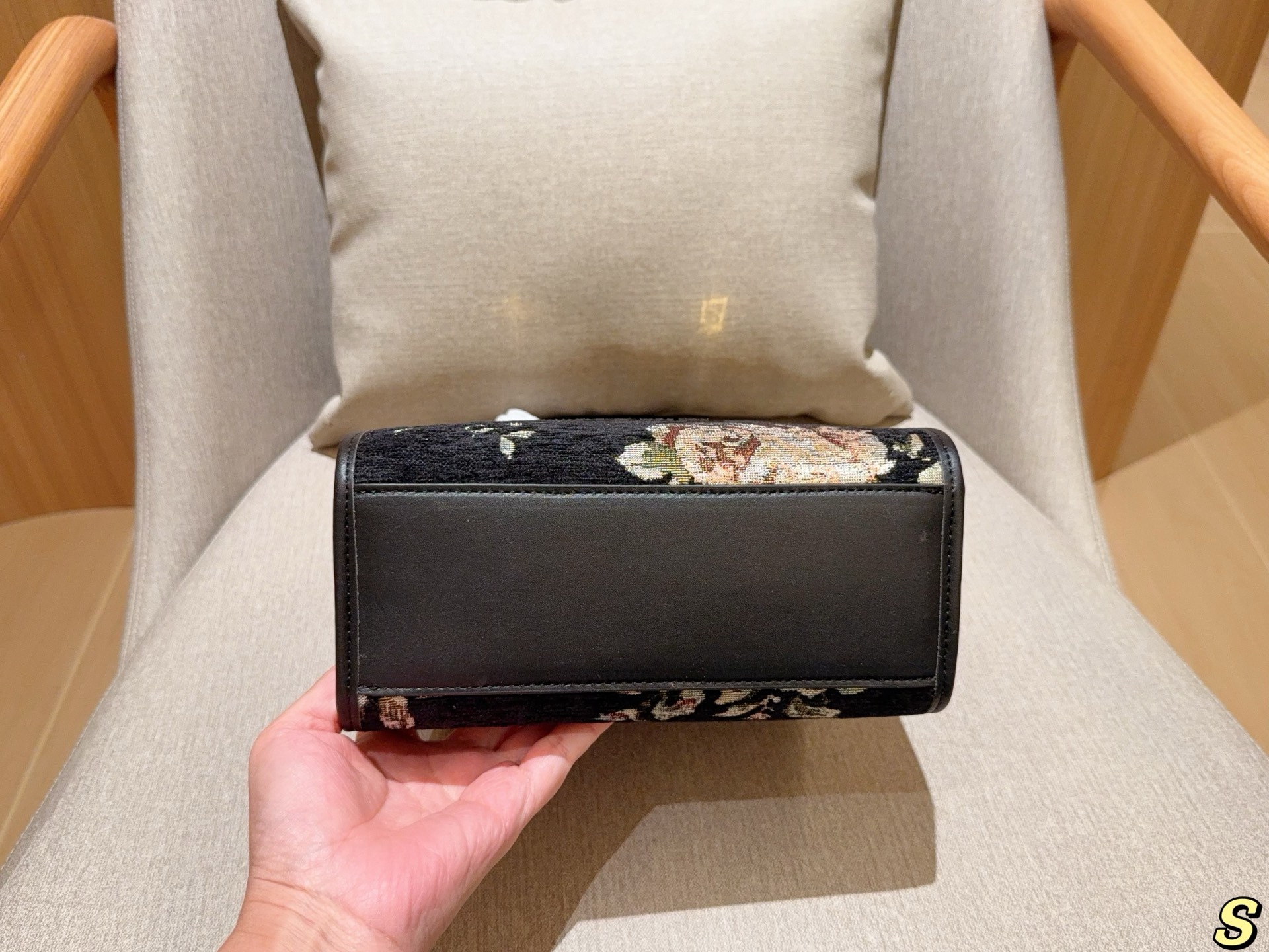 このフェンディのポシェットは、ブラックのタペストリー素材に華やかなフラワープリントが施された、洗練された一品です。 高級感のあるレザーのハンドルと、ゴールドのFENDIロゴプレートが、エレガントさを引き立てます。内側は黒のレザー仕上げで、マグネット式の開閉が便利。取り外し可能なショルダーストラップ付きなので、ハンドバッグとしてもショルダーバッグとしても活躍します。