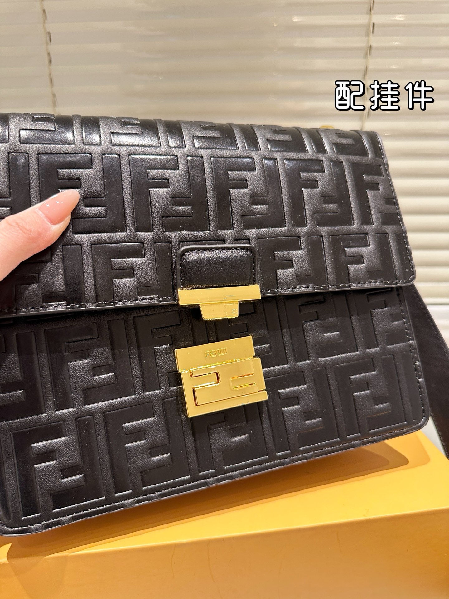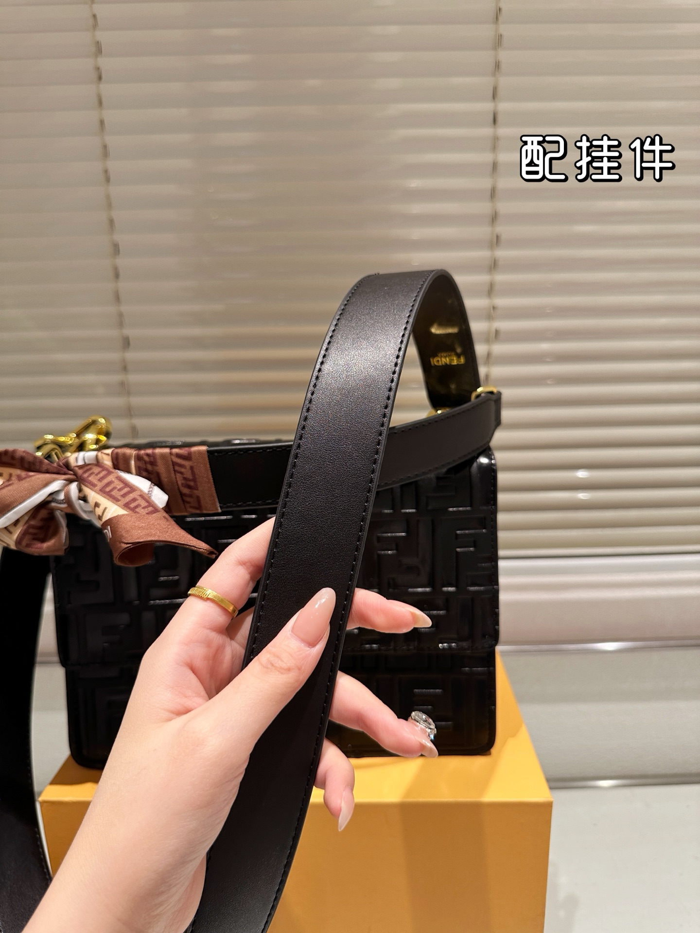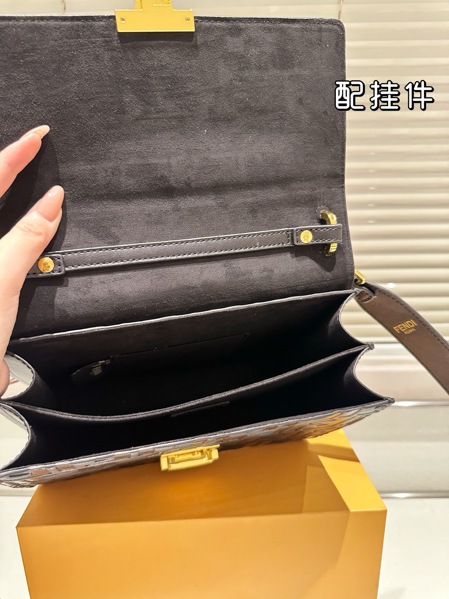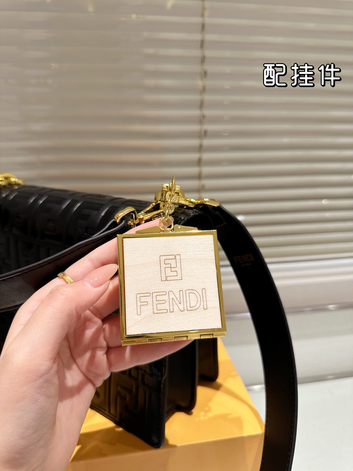 「FENDI」のロゴが入ったプレートが付属しており、本物の証ともなります。