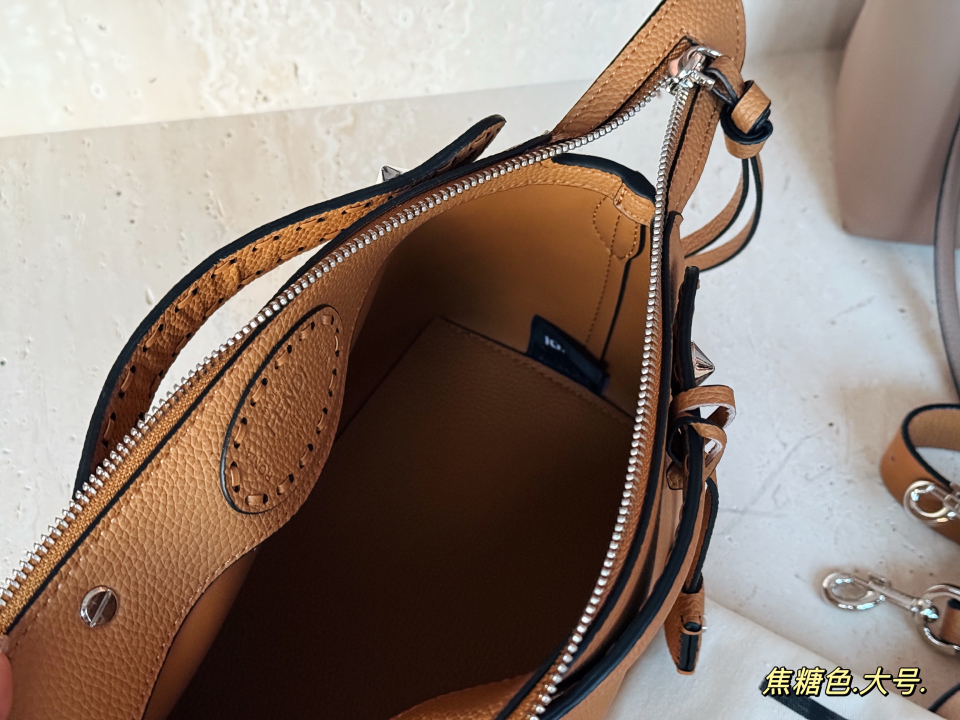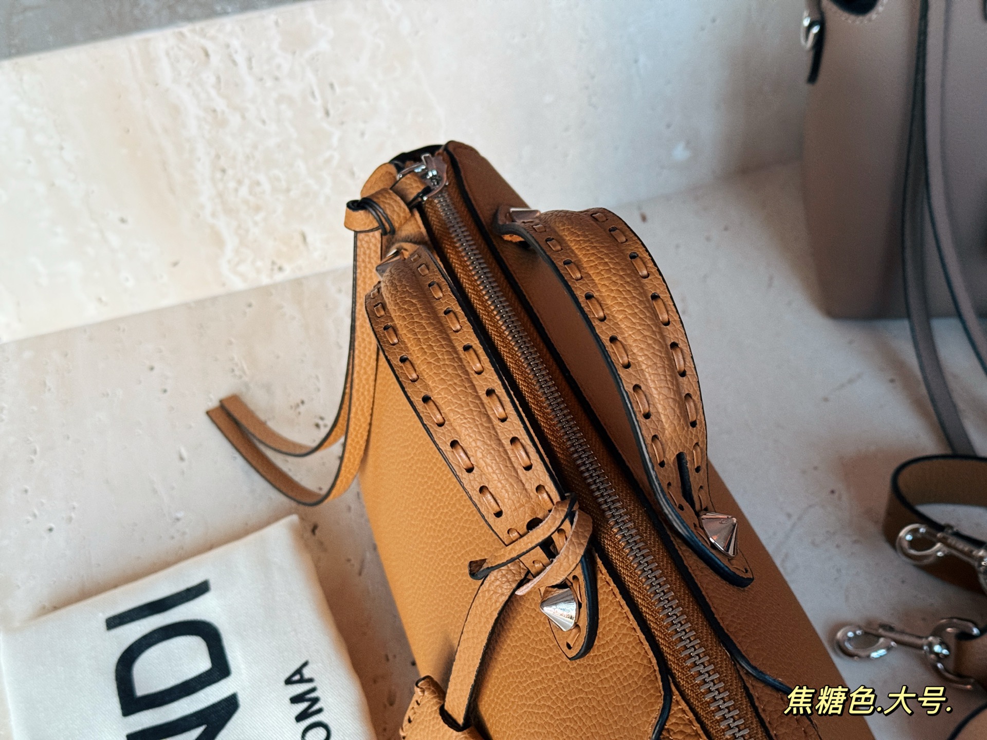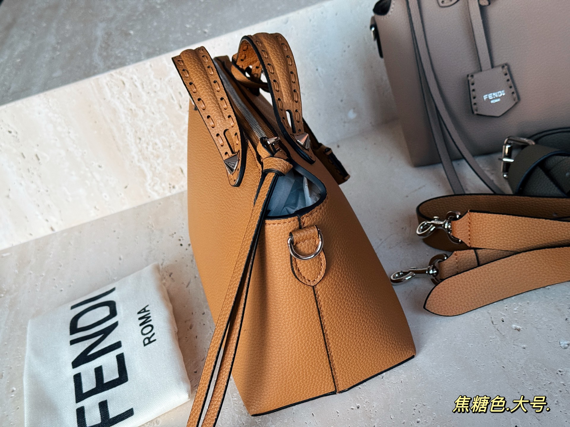 この高級 FENDI ミニショルダーバッグは、焦糖色とグレーの2色展開です。
